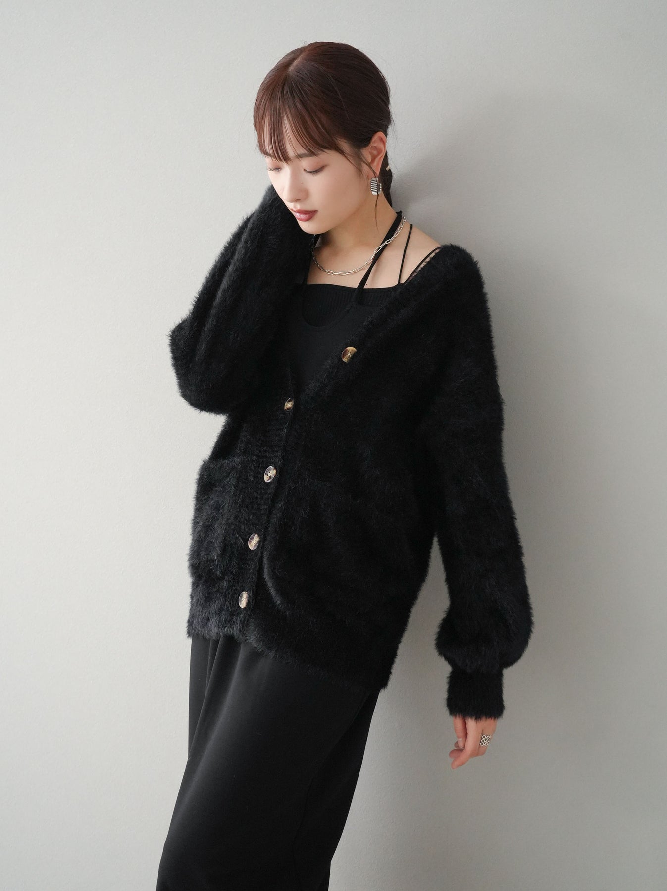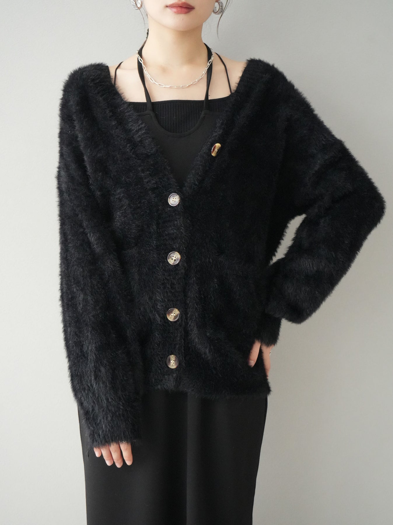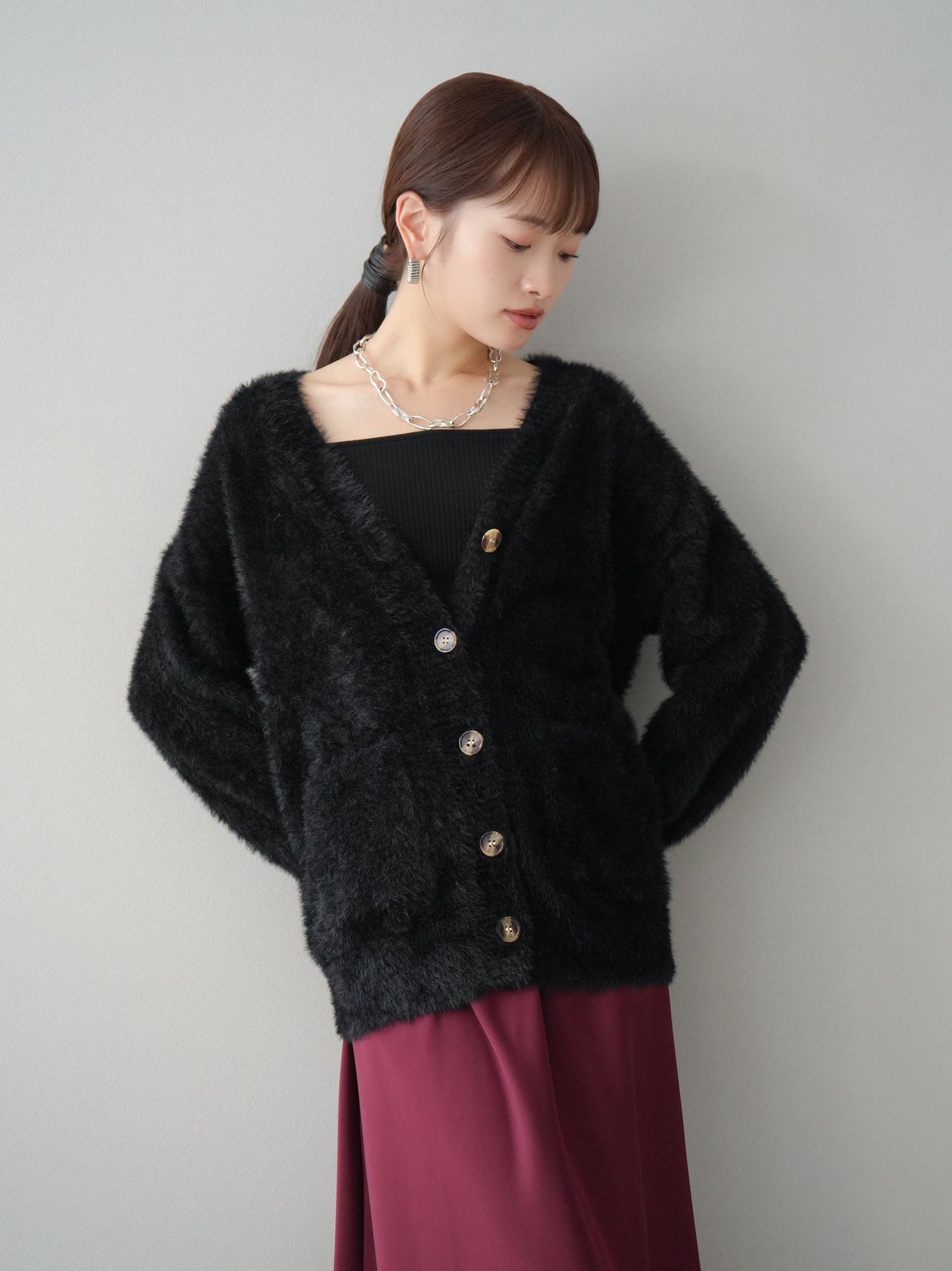 [予約]マーブルボタンシャギーニットカーディガン/ブラック