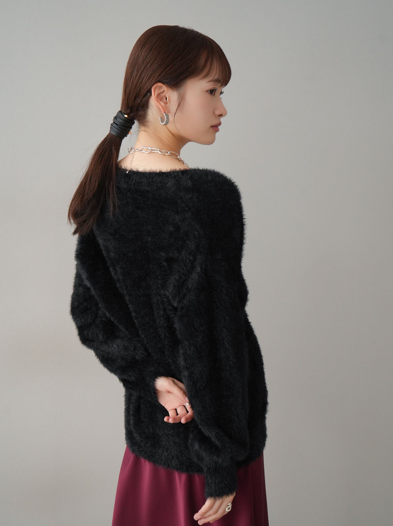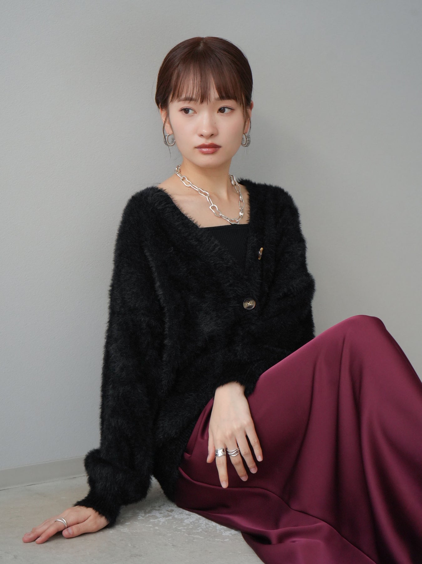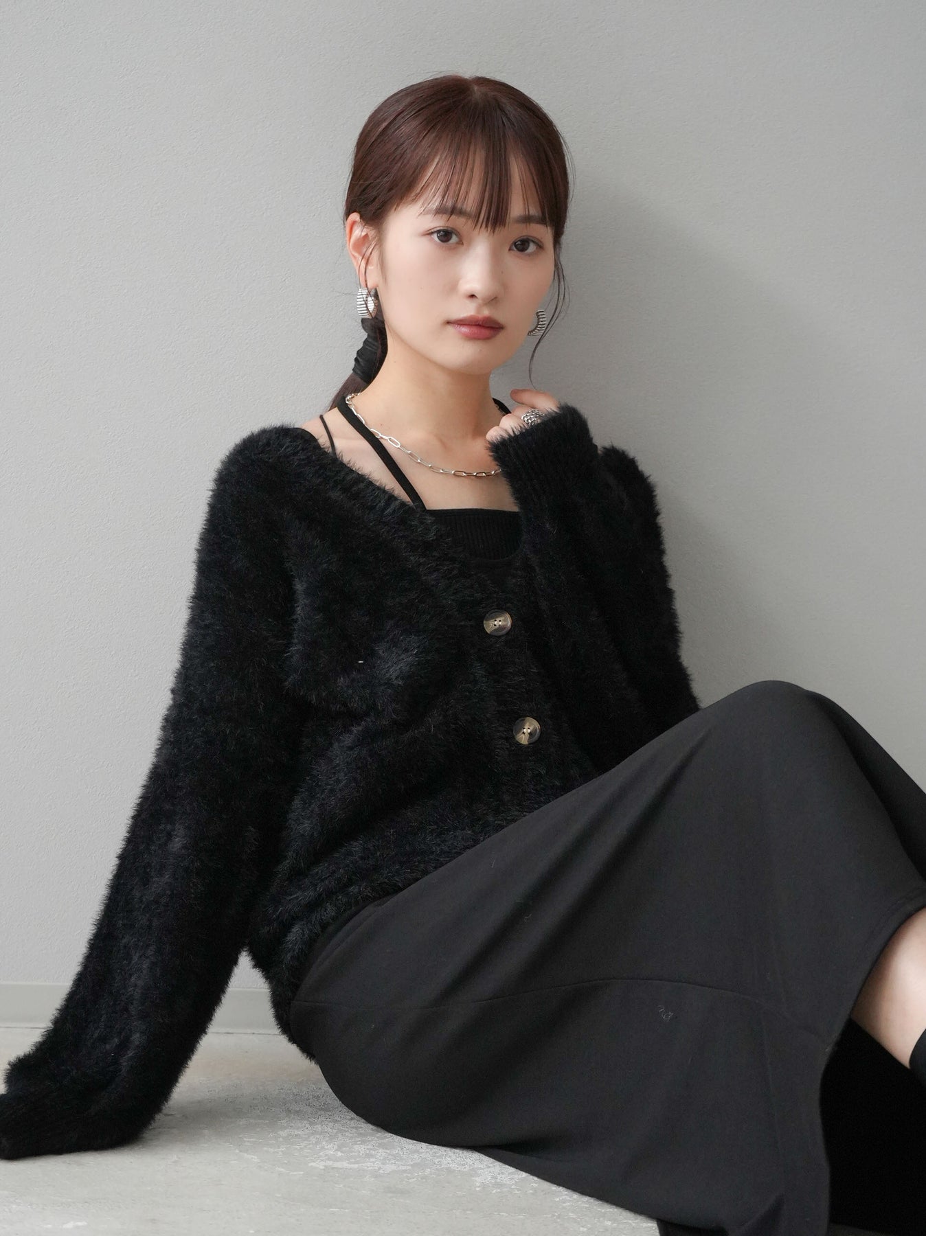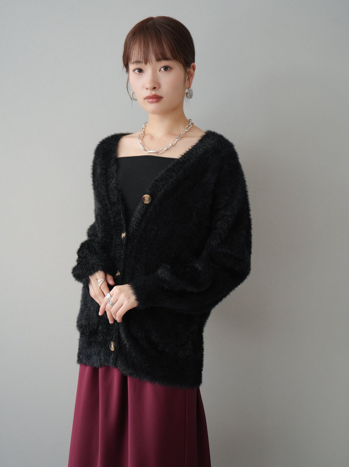 [予約]マーブルボタンシャギーニットカーディガン/ブラック