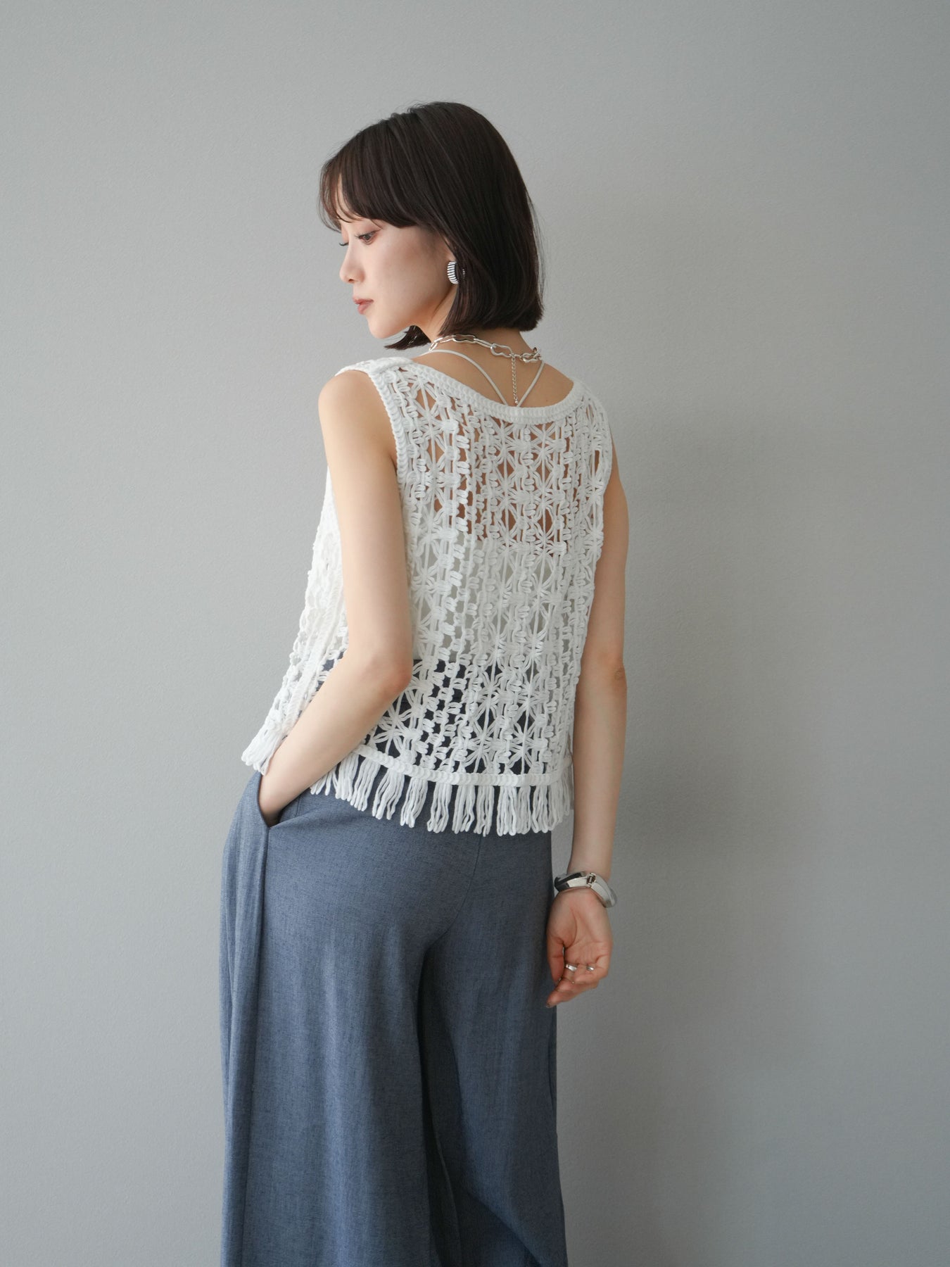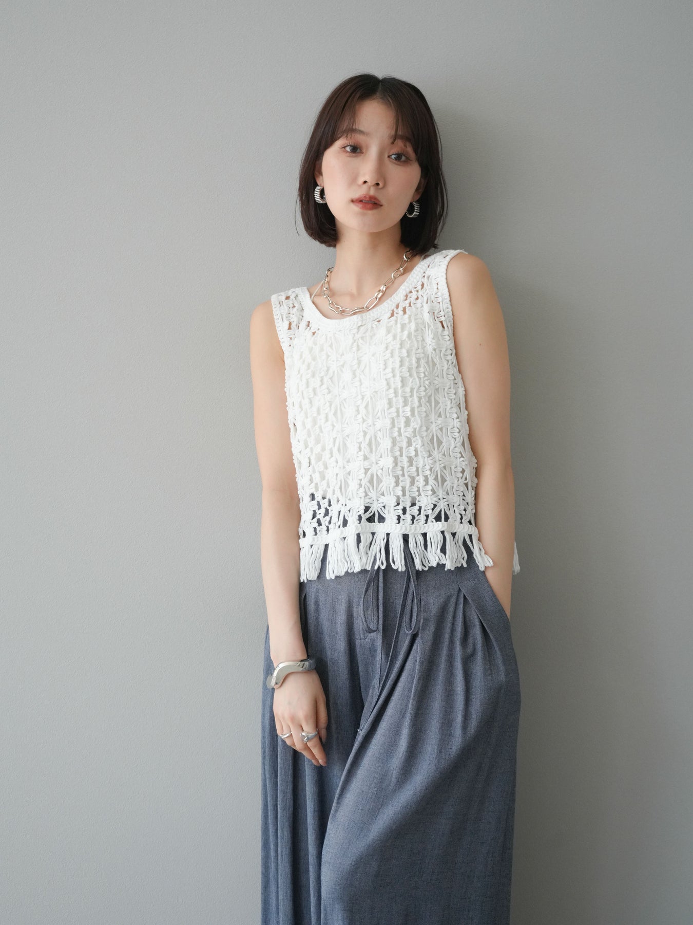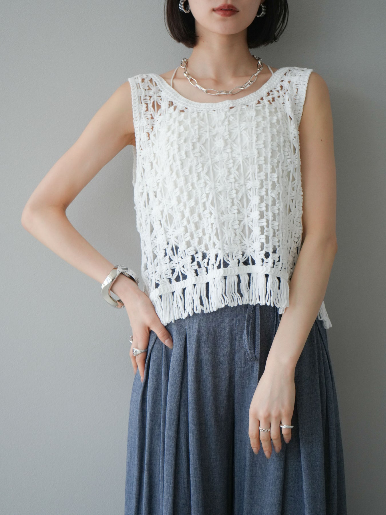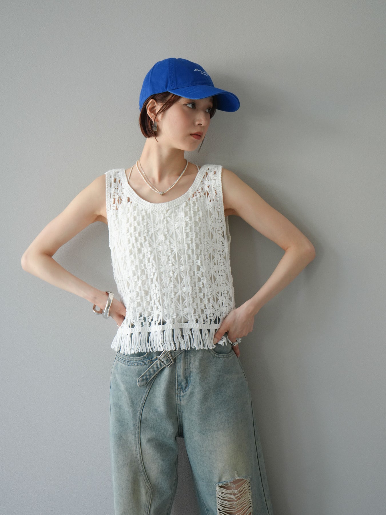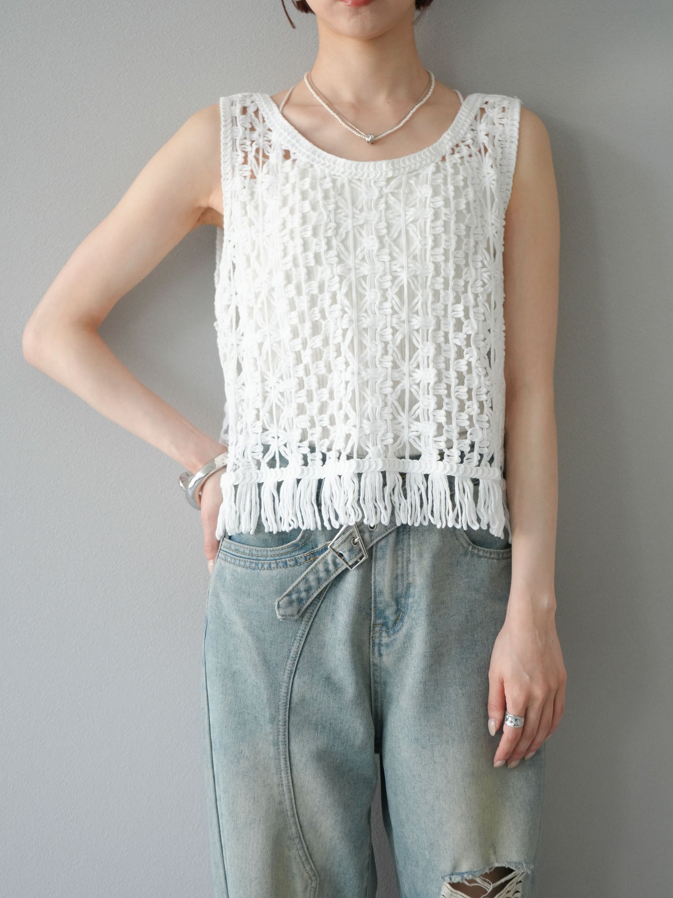 [予約]クロシェ編みフリンジタンクトップ/オフホワイト