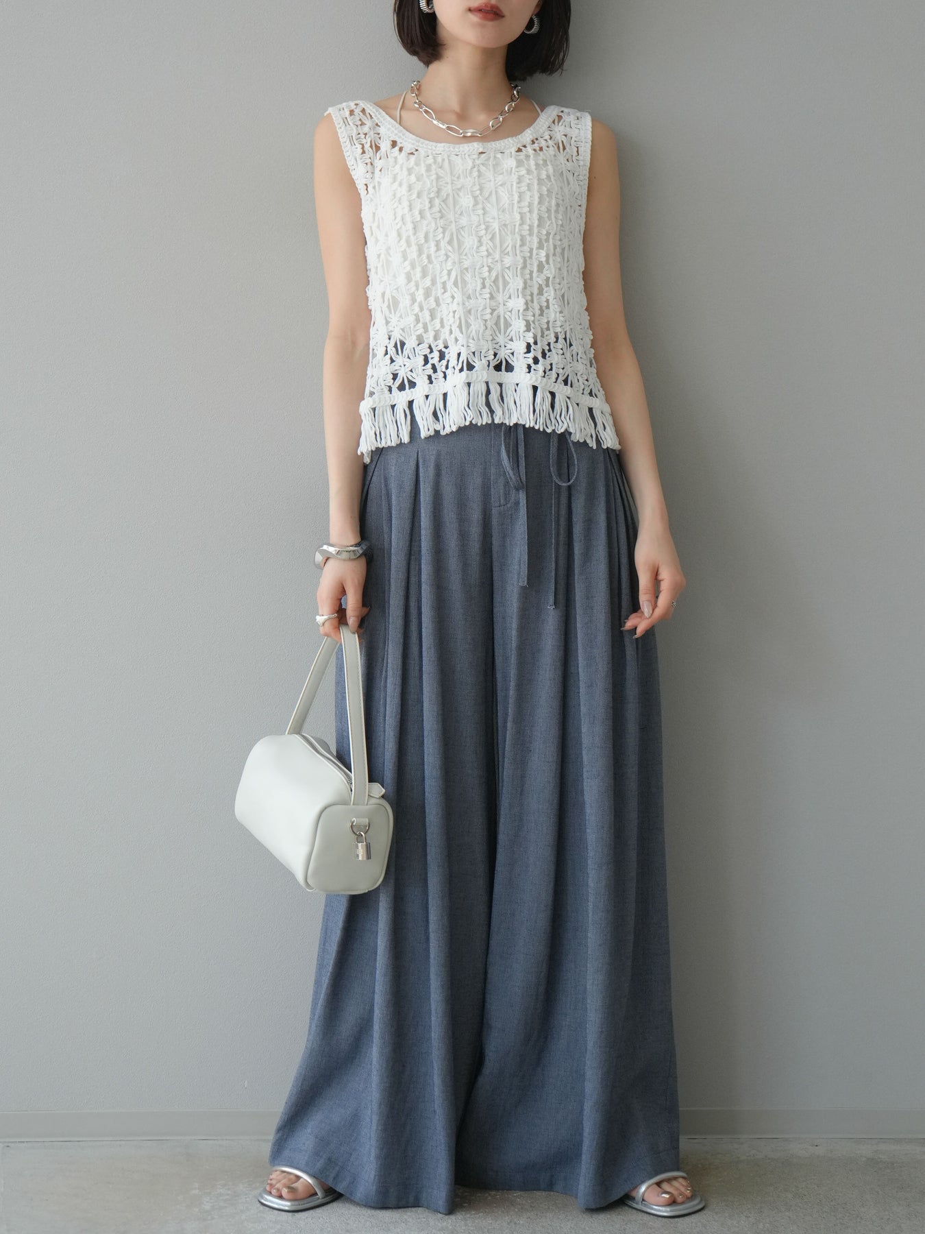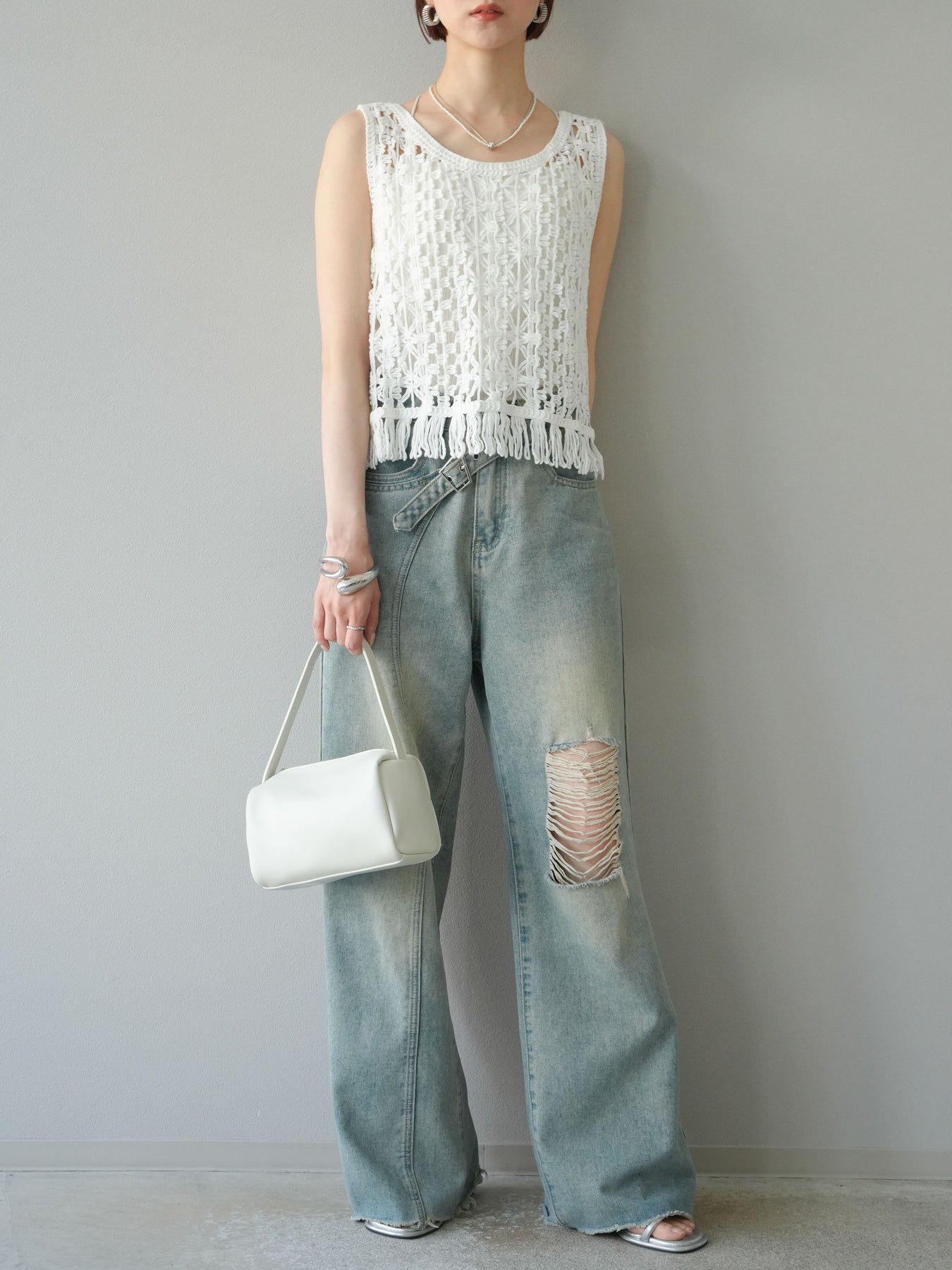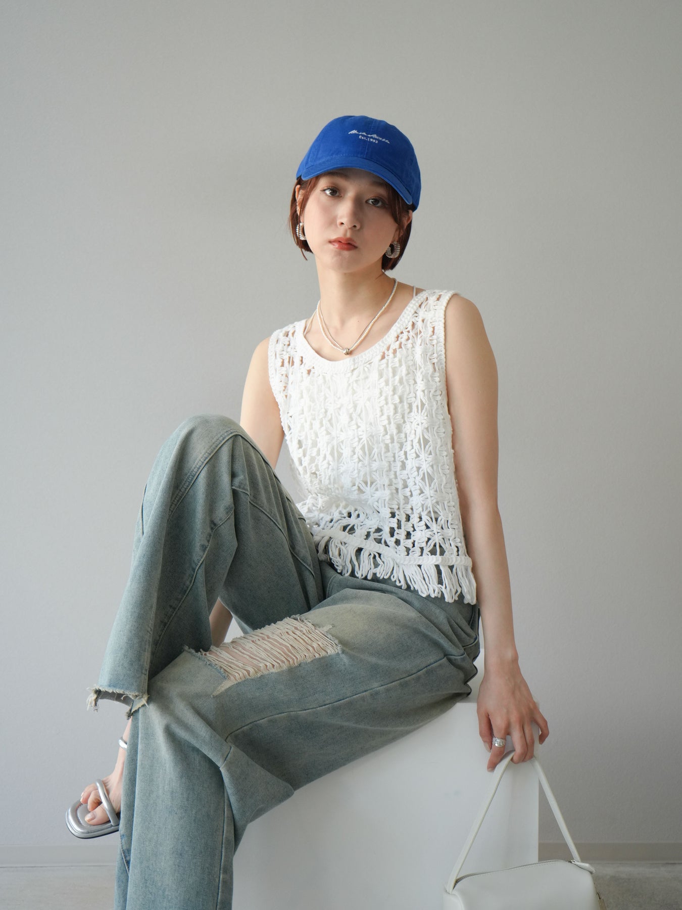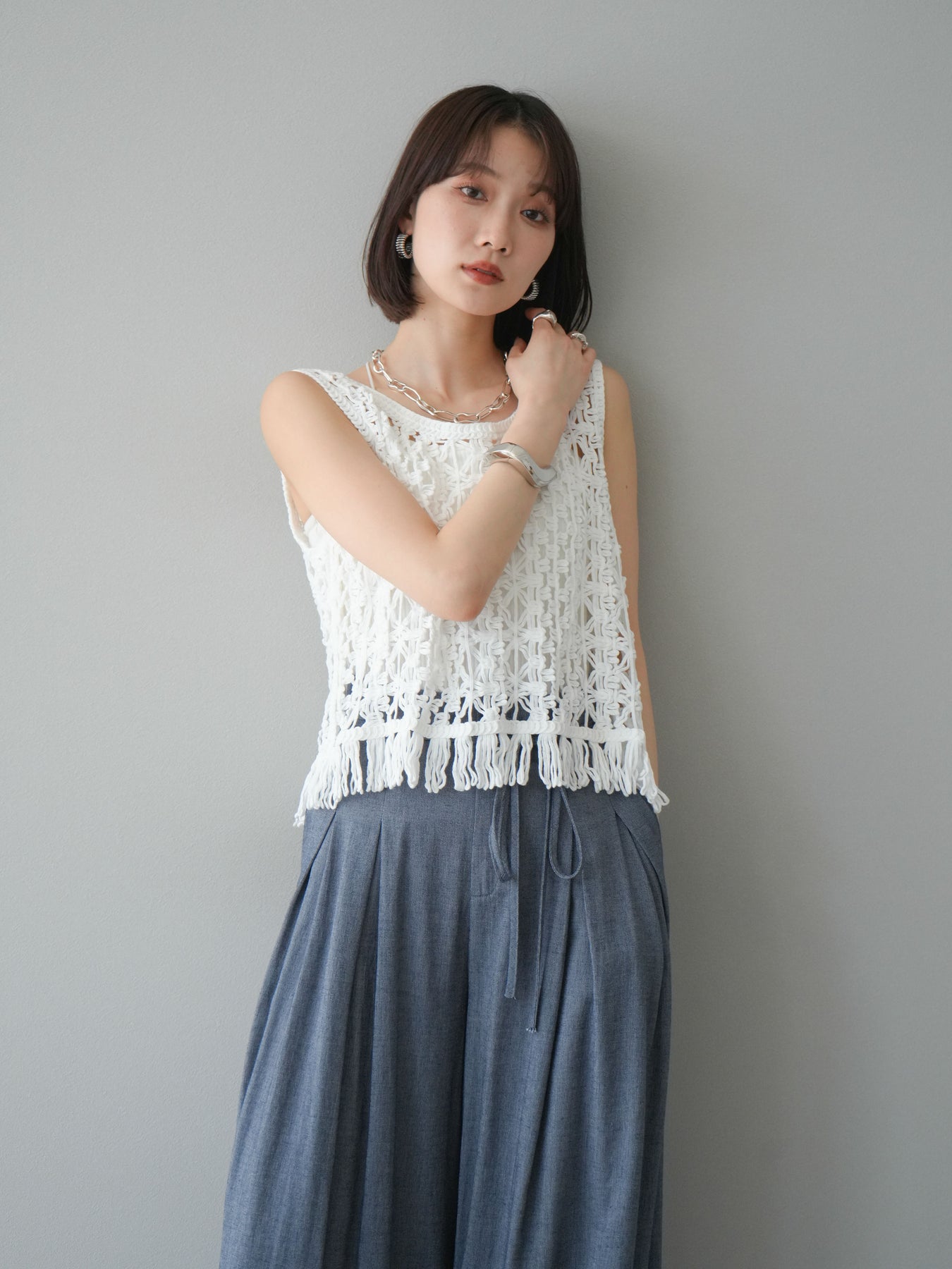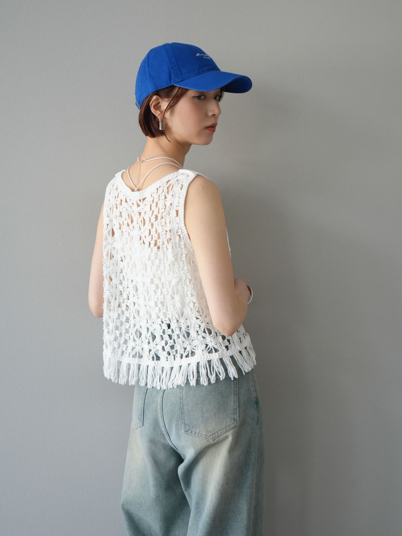 [予約]クロシェ編みフリンジタンクトップ/オフホワイト
