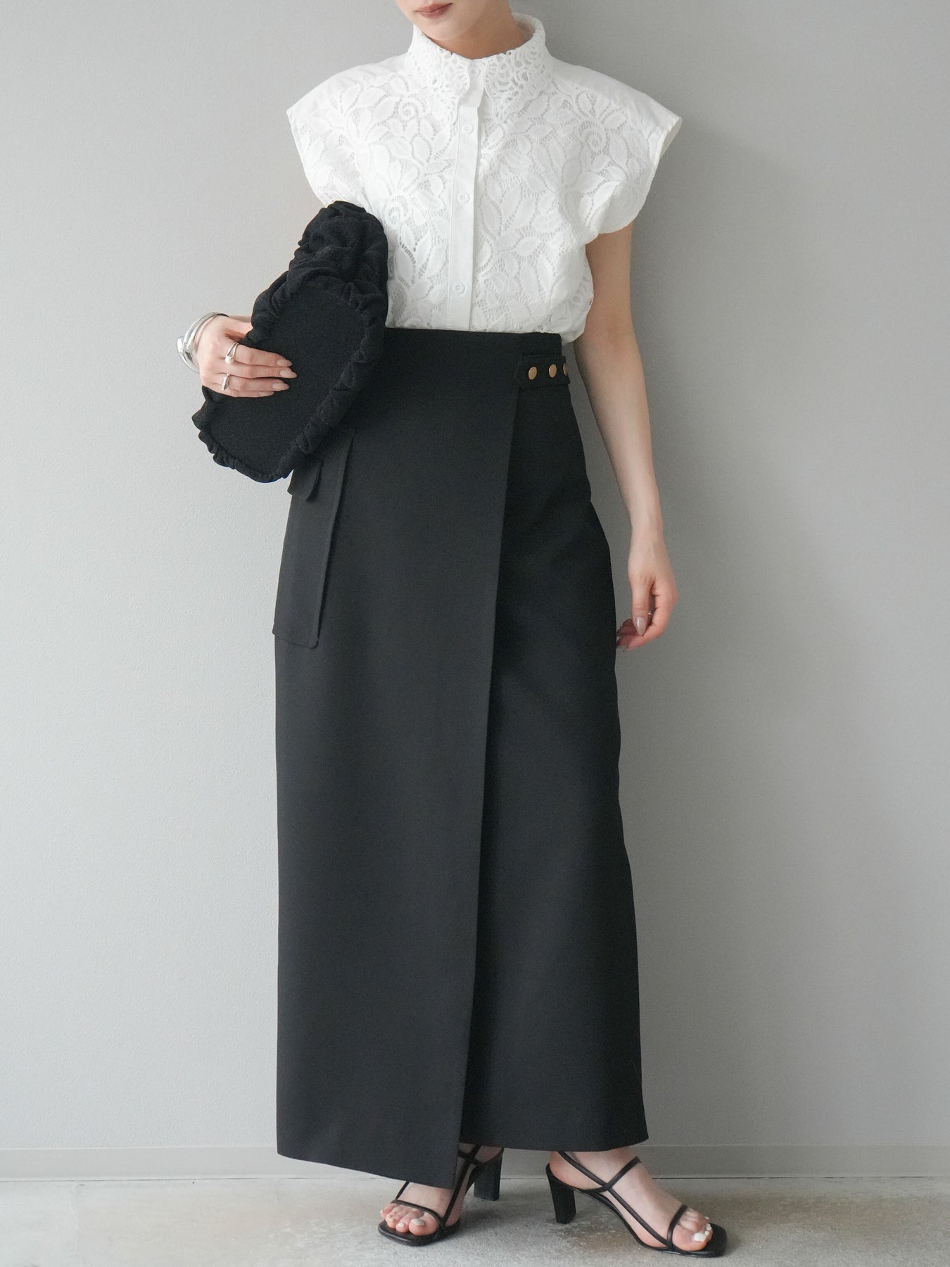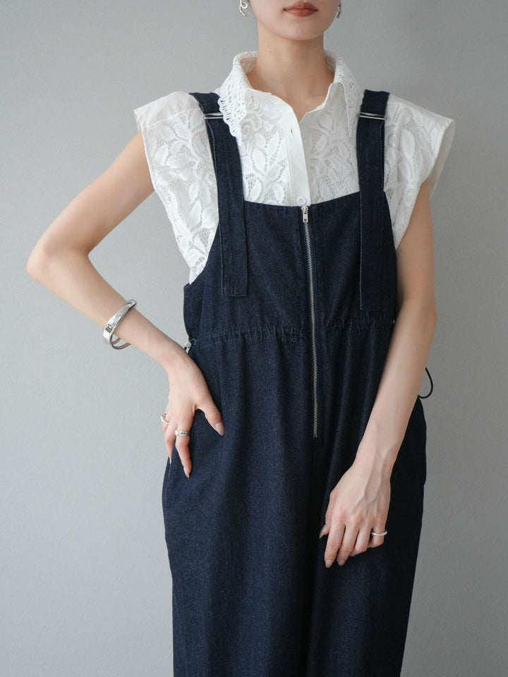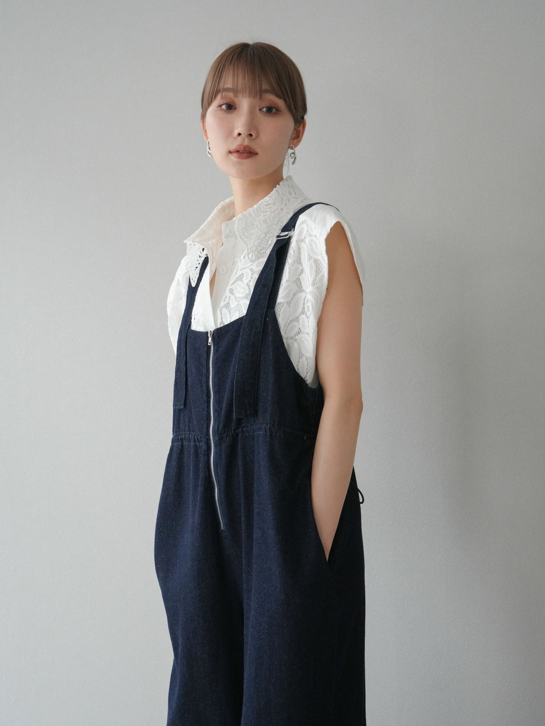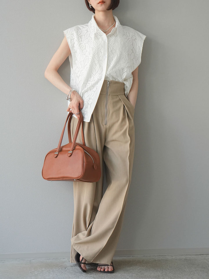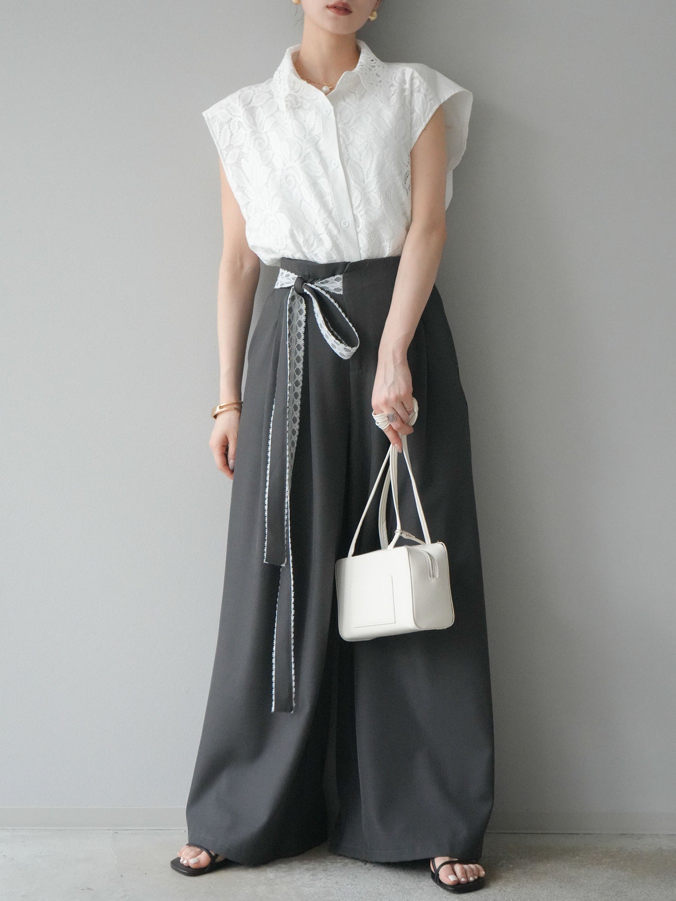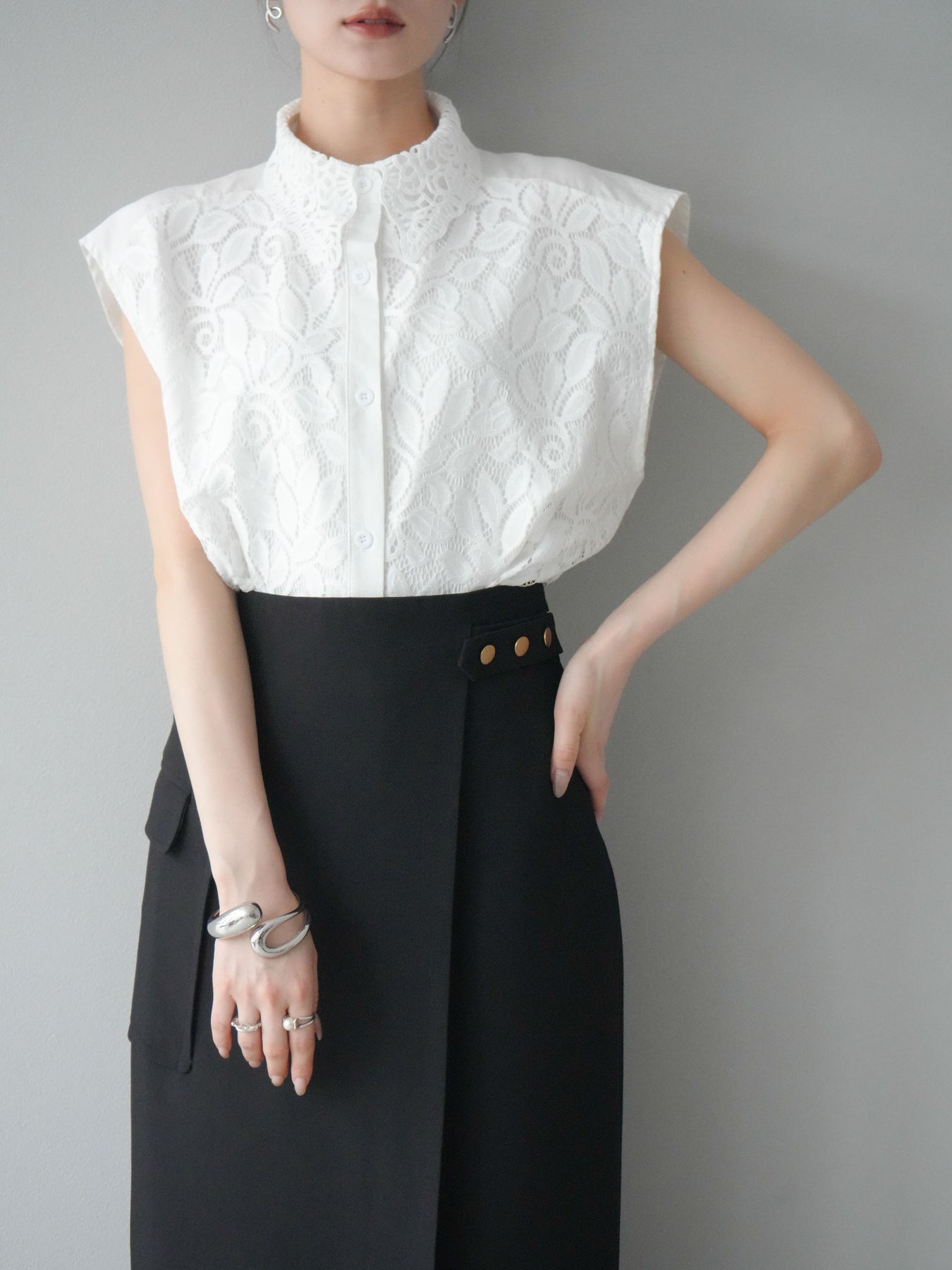 繊細なレースの襟が目を惹く、クラシカルなムード漂うノースリーブブラウス。身頃にも同系色のレースを贅沢にあしらい、涼しげながらも上品な印象に仕上げました。程よくゆとりのあるシルエットで、タンクトップやキャミとのレイヤードも楽しめるアイテム。トレンドのレーススタイルを大人っぽく着こなせます。 ※ボトムス、キャミソール(インナー)以外の商品は一律でインナーは付属していません