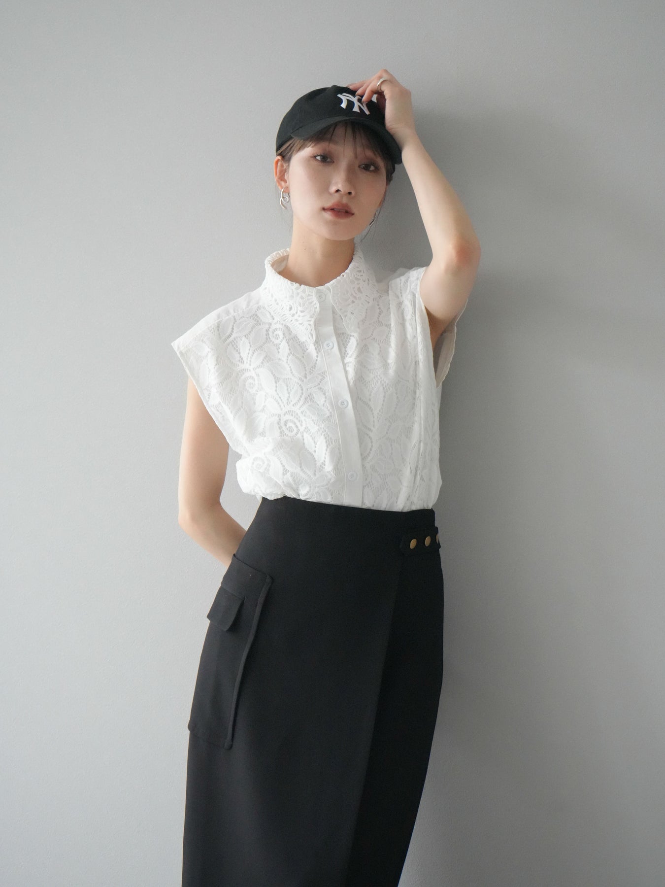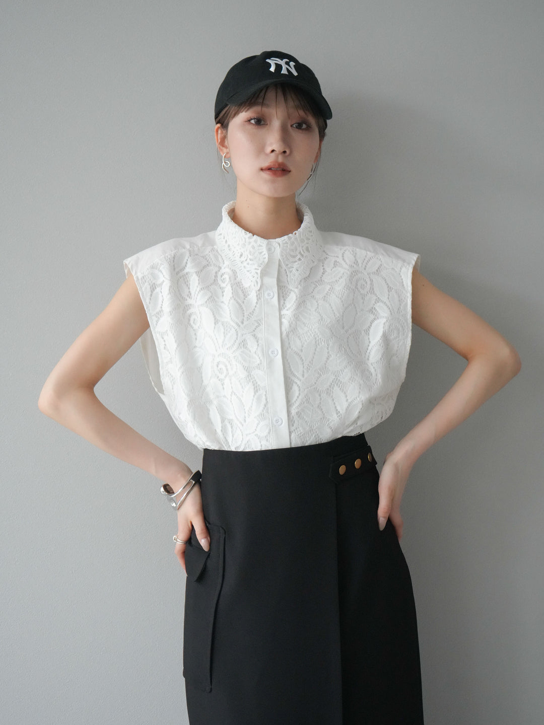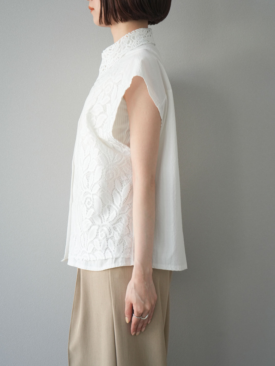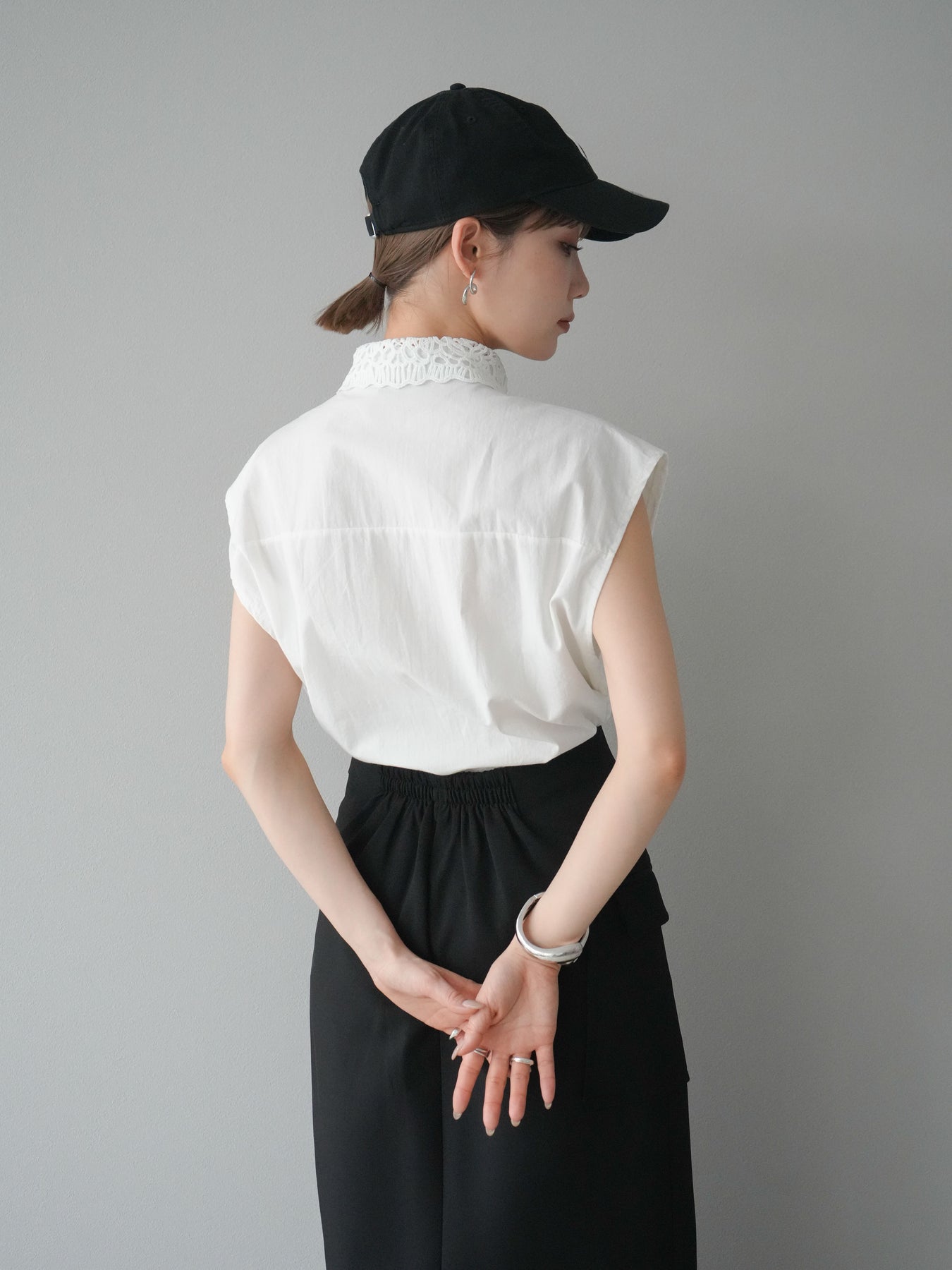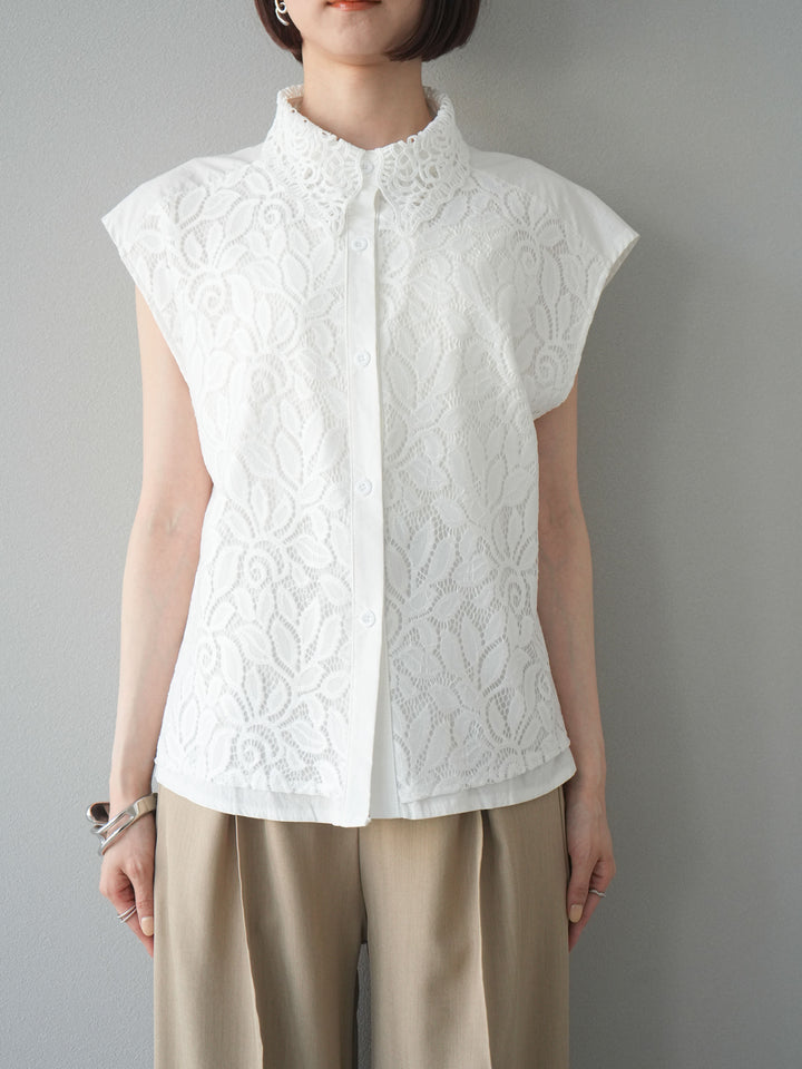 [予約]レース襟ノースリーブブラウス/オフホワイト