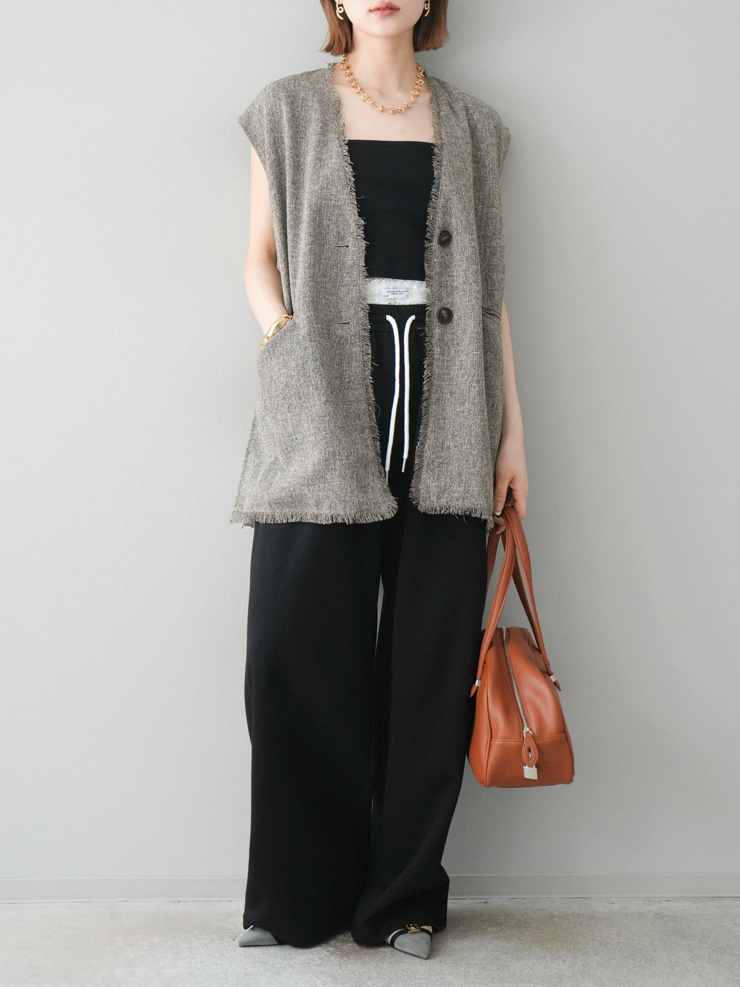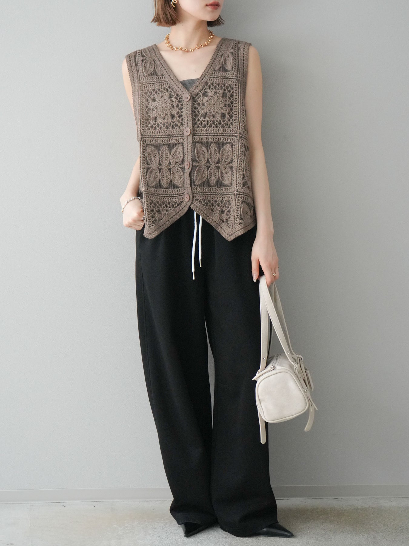 トレンド感のあるレースレイヤードデザインが魅力のスウェットパンツ。ウエスト部分に施された繊細なレースが、カジュアルなスウェットに女性らしさをプラス。リラックス感のあるシルエットながら、ウエストのドローストリングで調整可能。ラフに着こなしても、トップス次第で上品なスタイルにも仕上がる万能アイテムです。 ※ボトムス、キャミソール(インナー)以外の商品は一律でインナーは付属していません