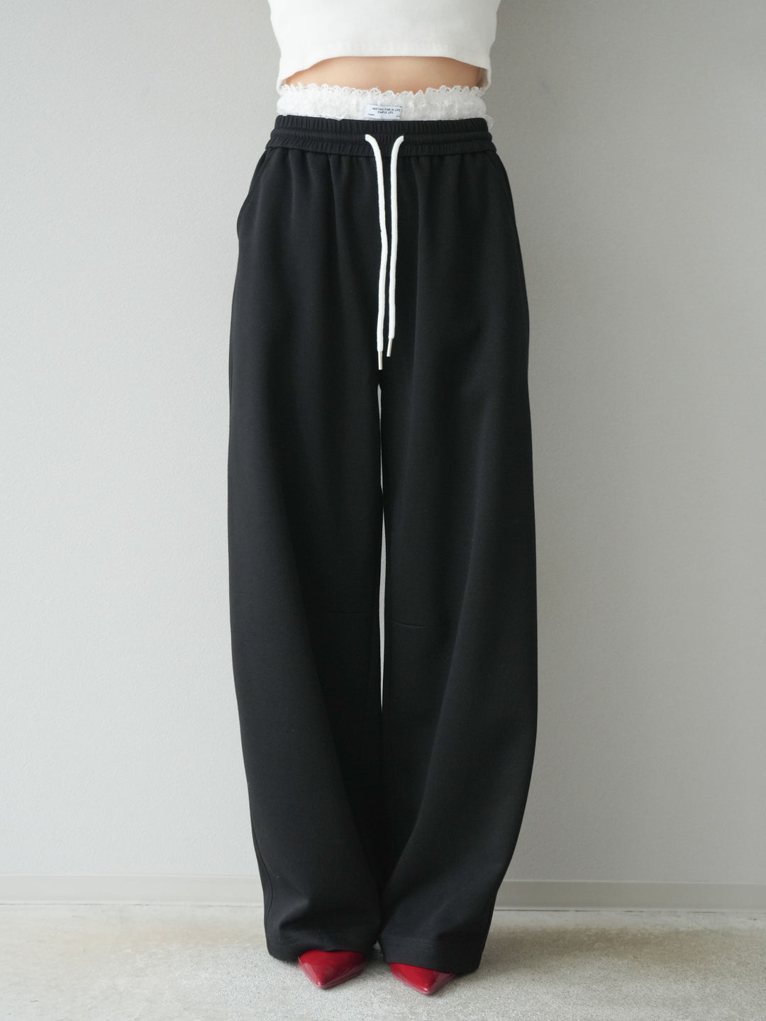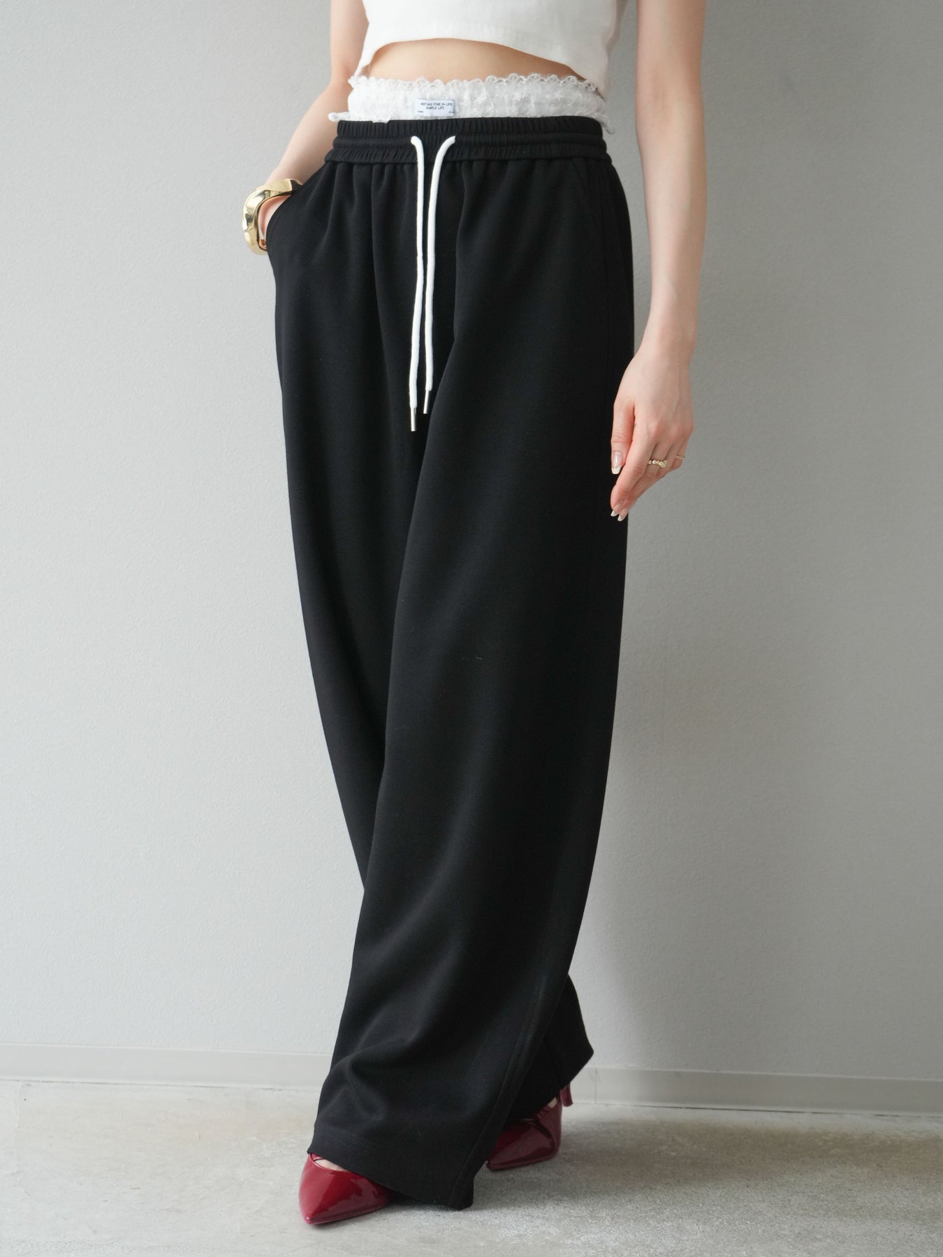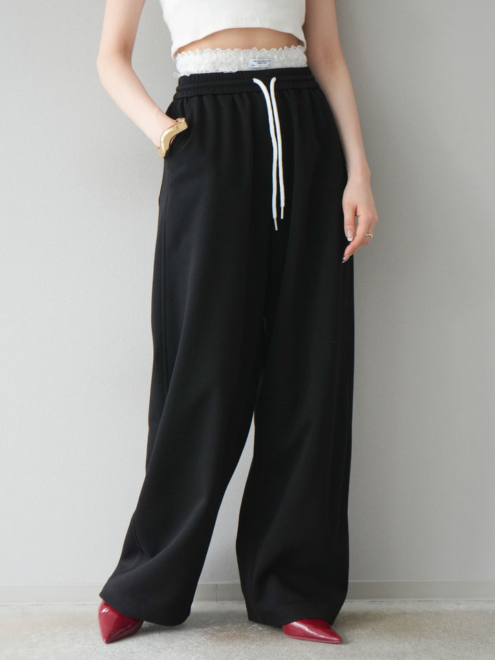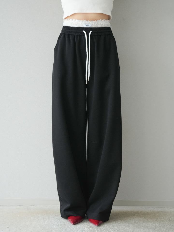 [予約]レースレイヤードスウェットパンツ/ブラック
