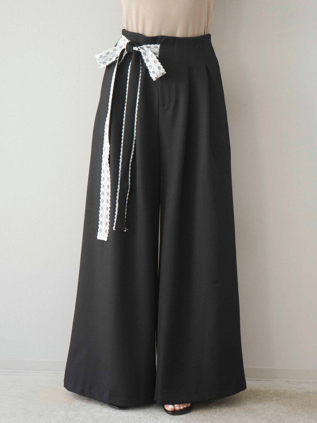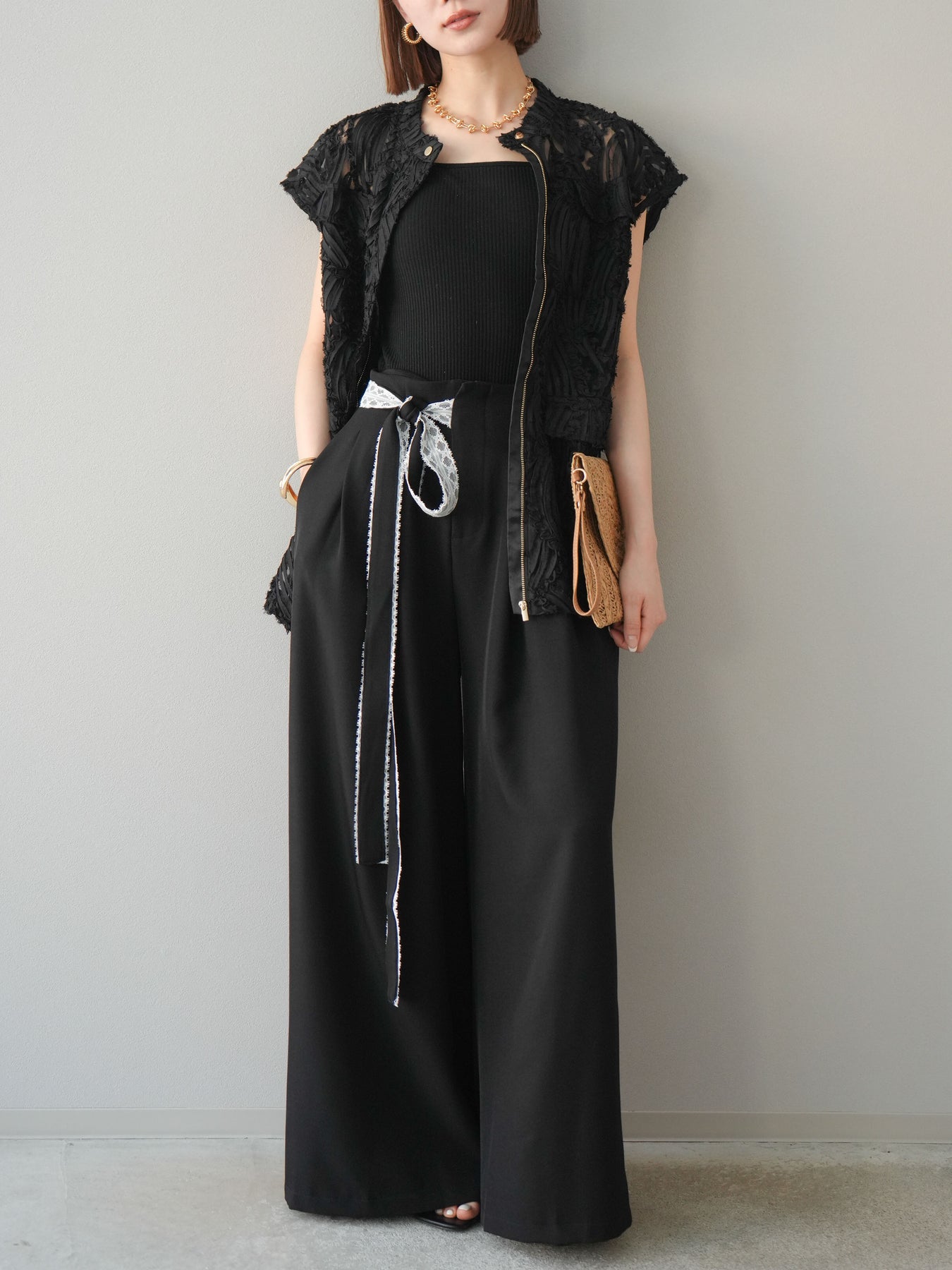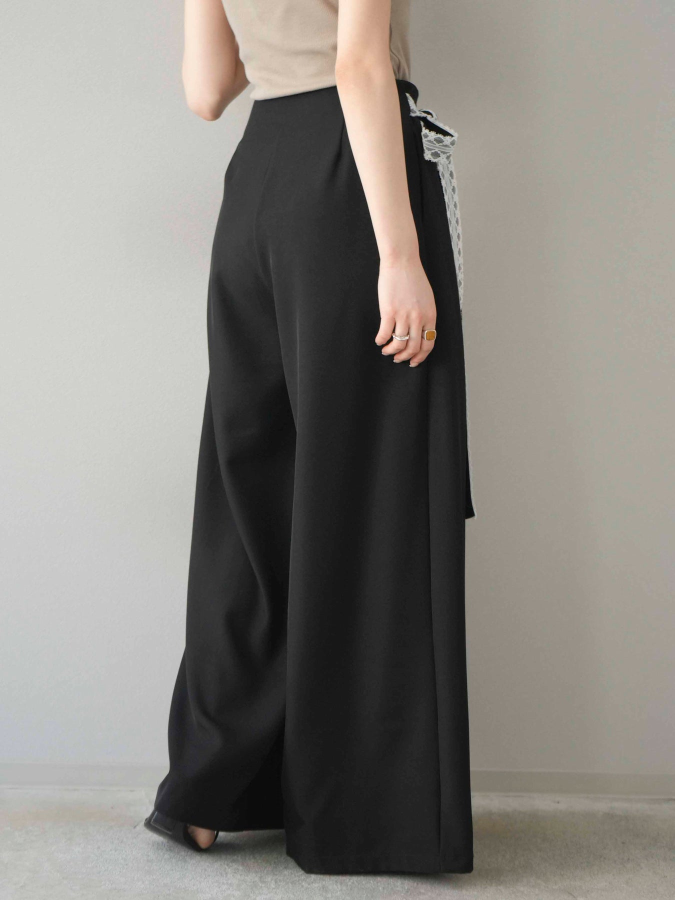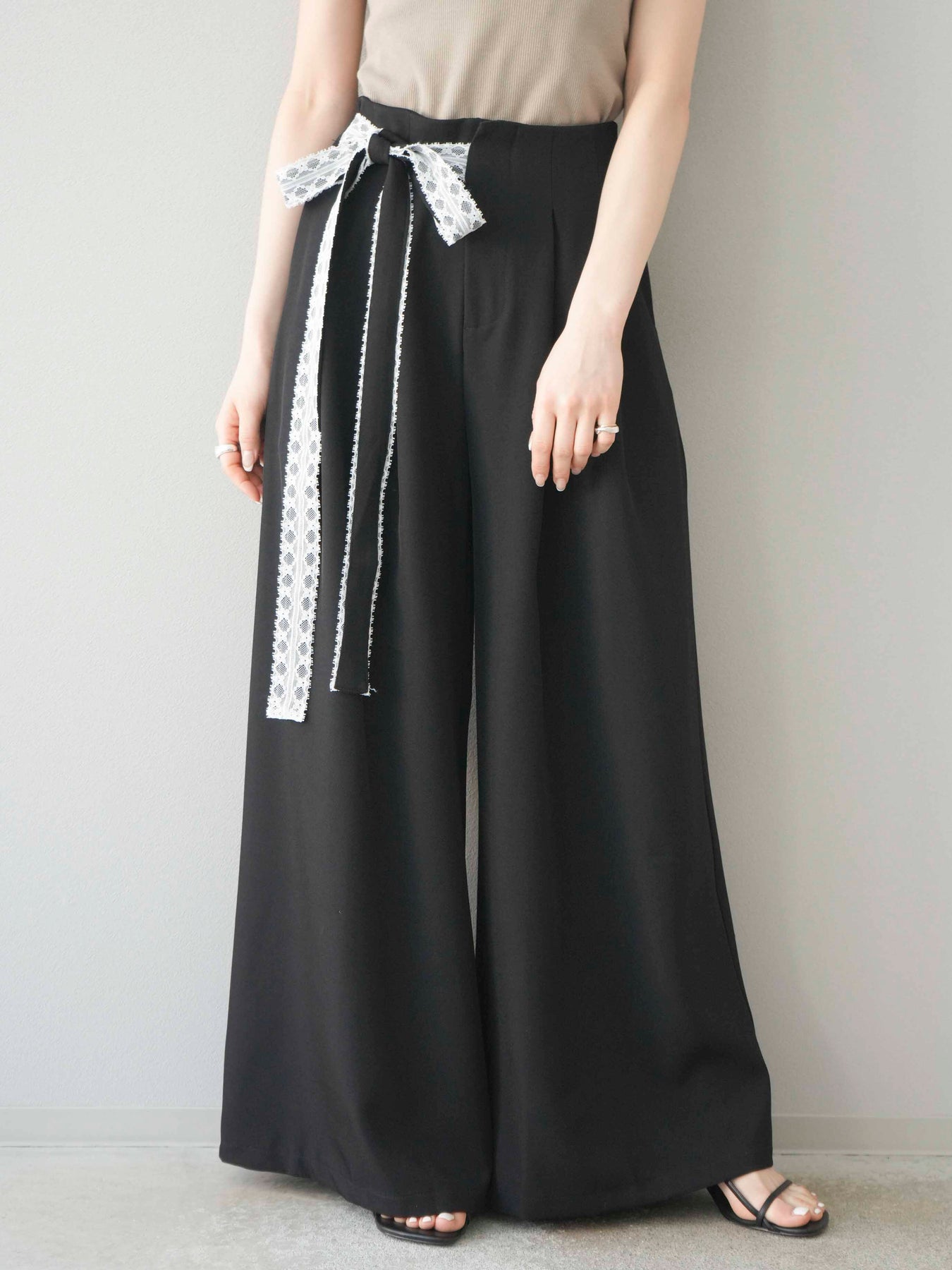 [予約]レースベルトデザインワイドパンツ/ブラック
