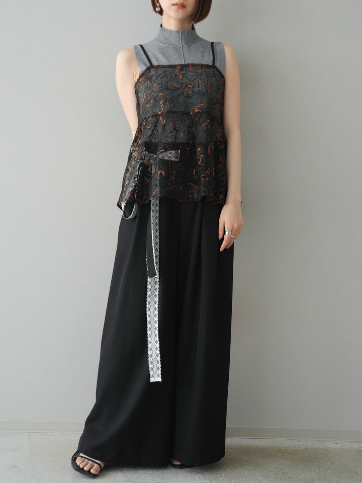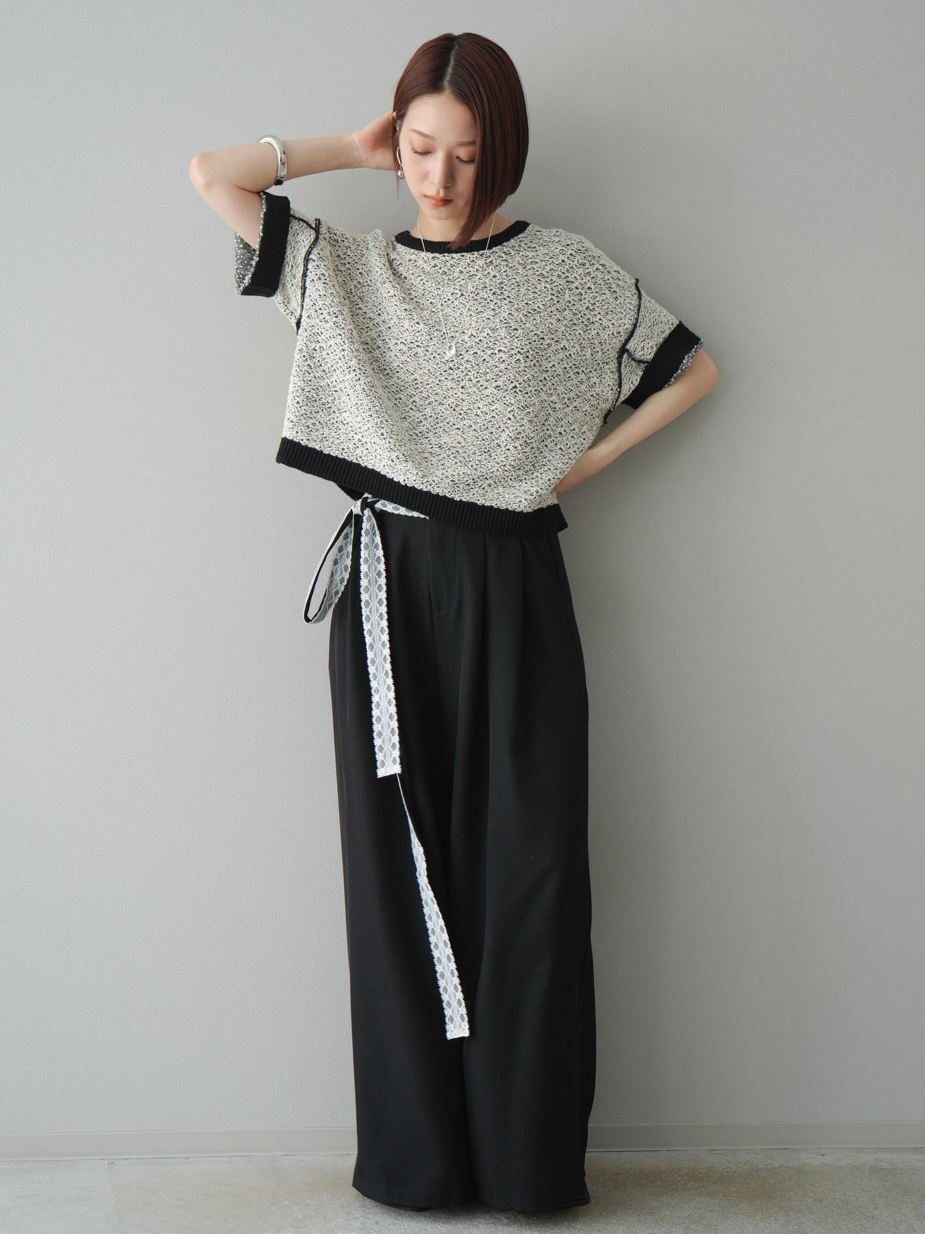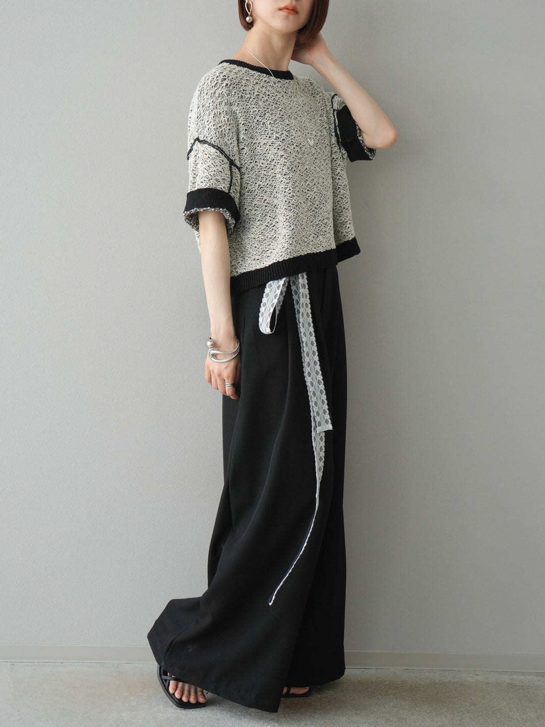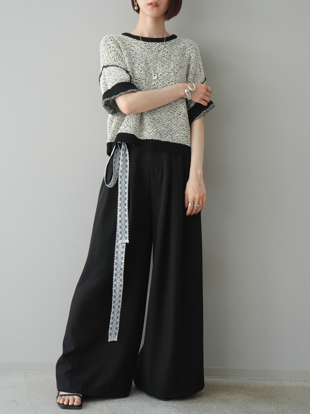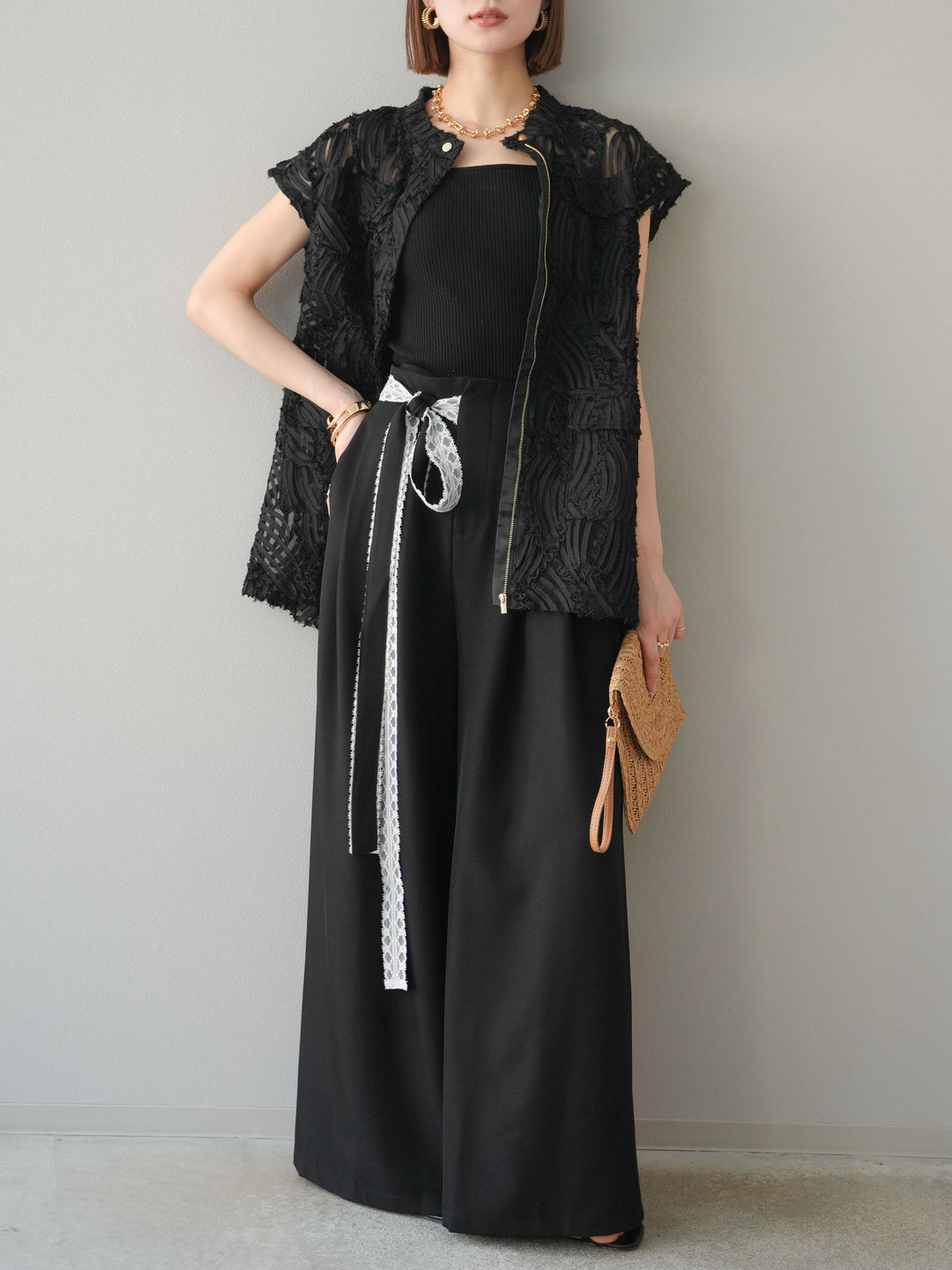 [予約]レースベルトデザインワイドパンツ/ブラック