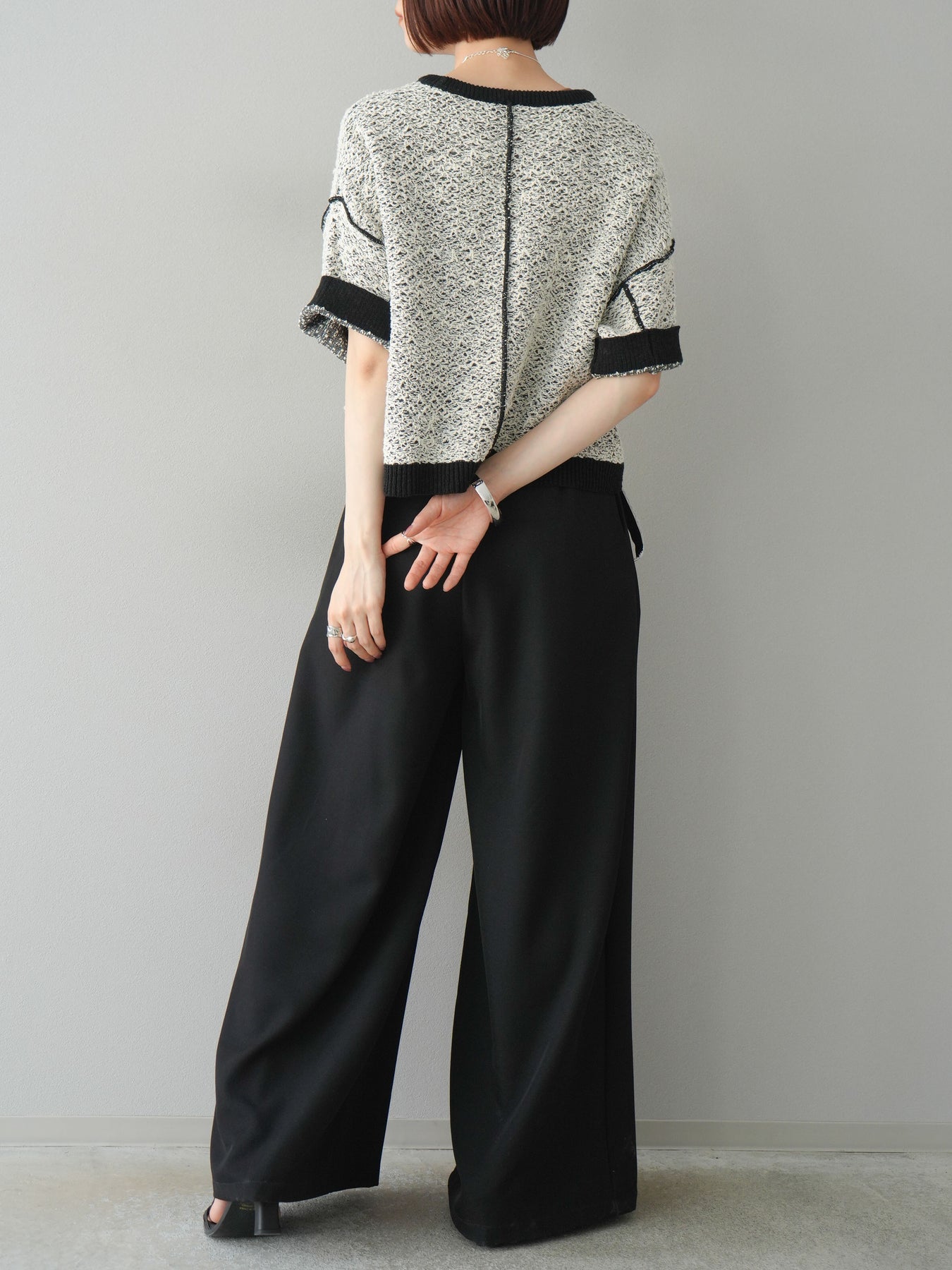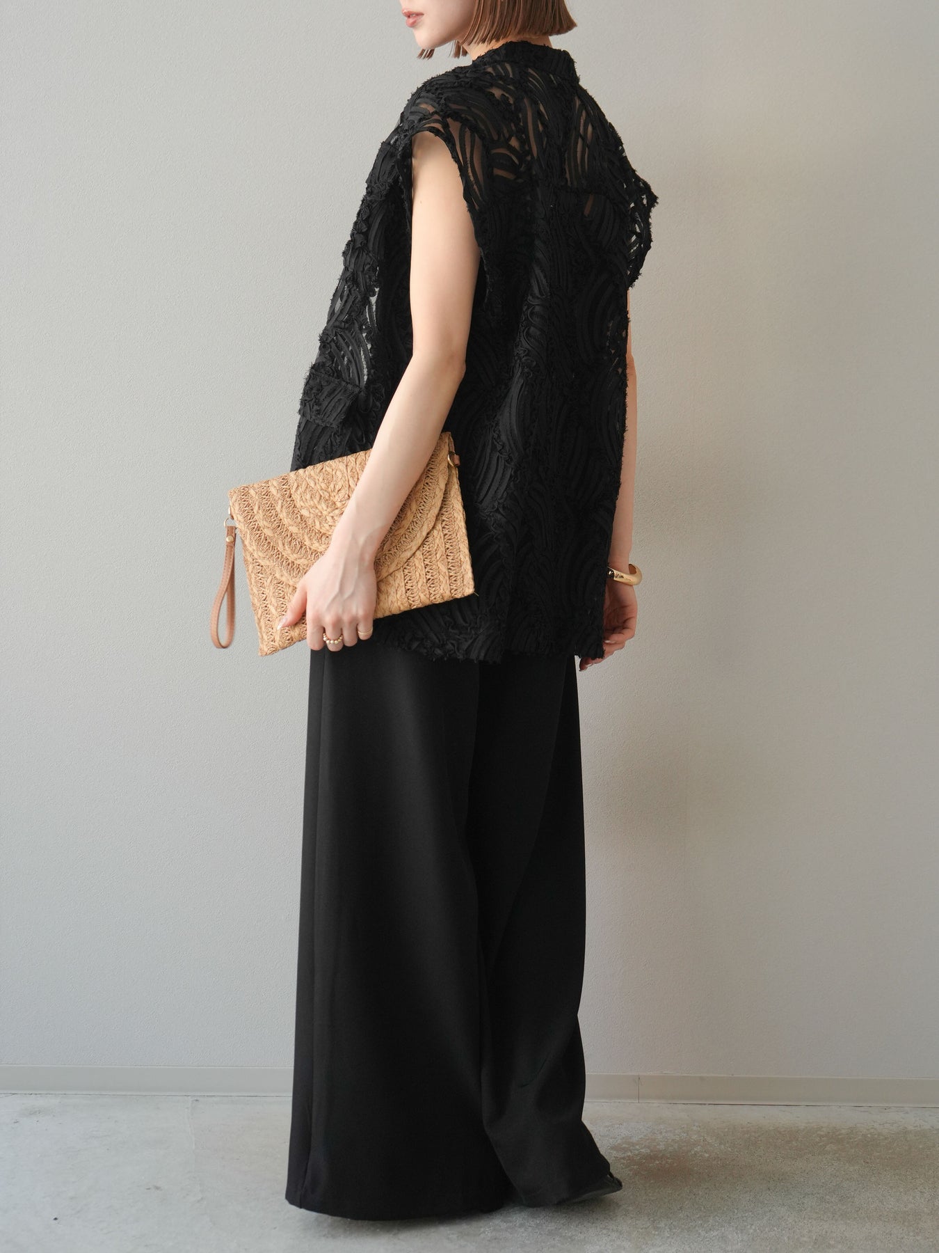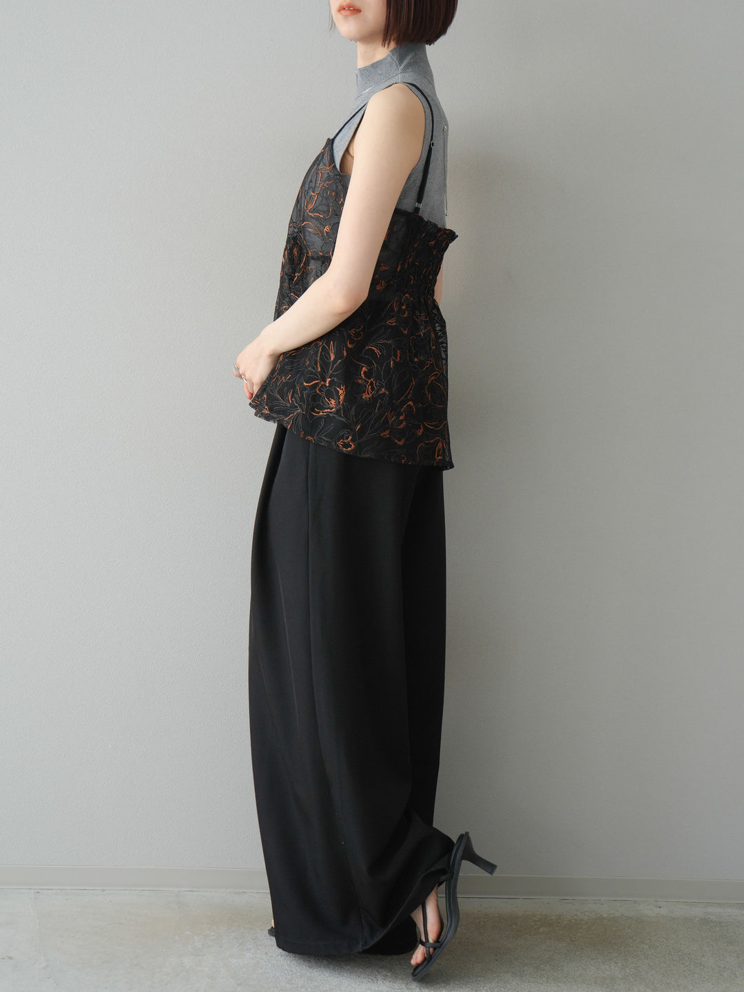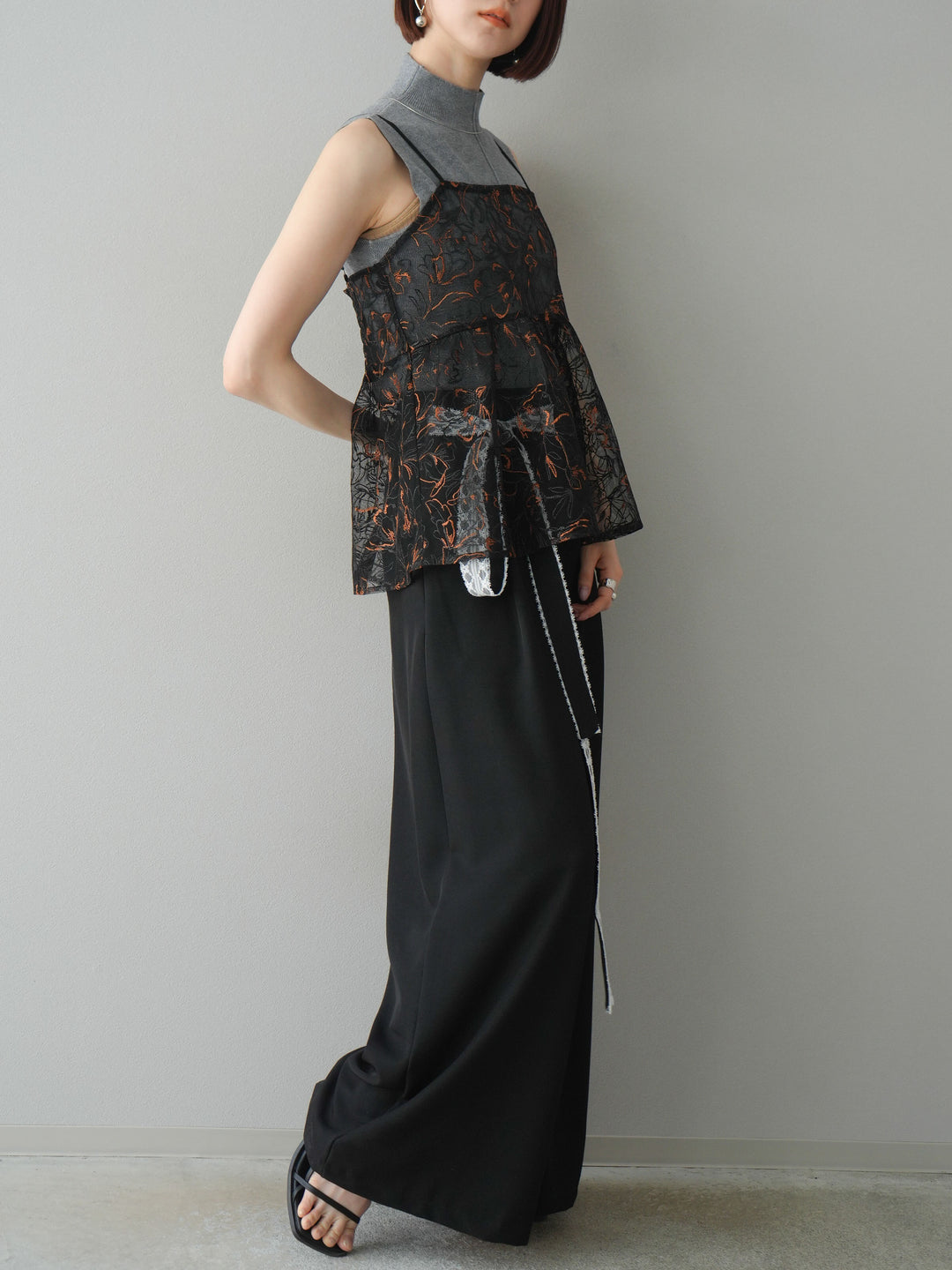 [予約]レースベルトデザインワイドパンツ/ブラック