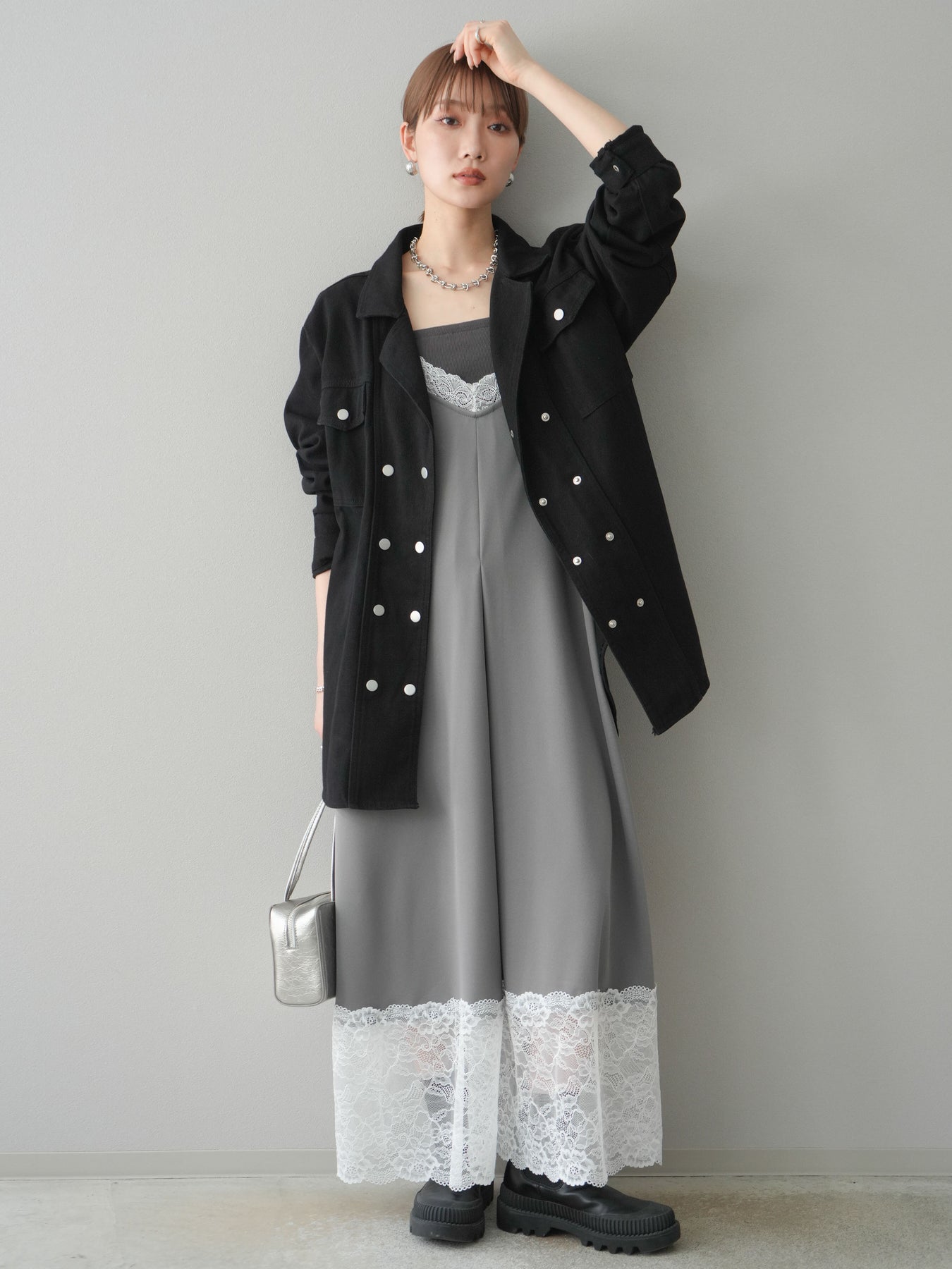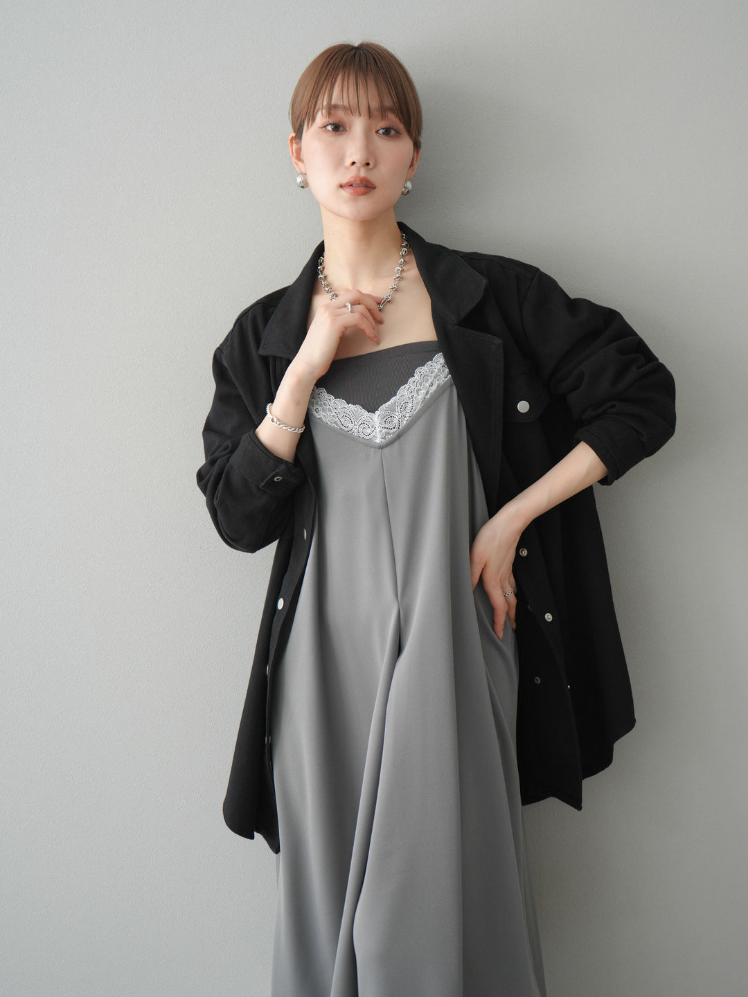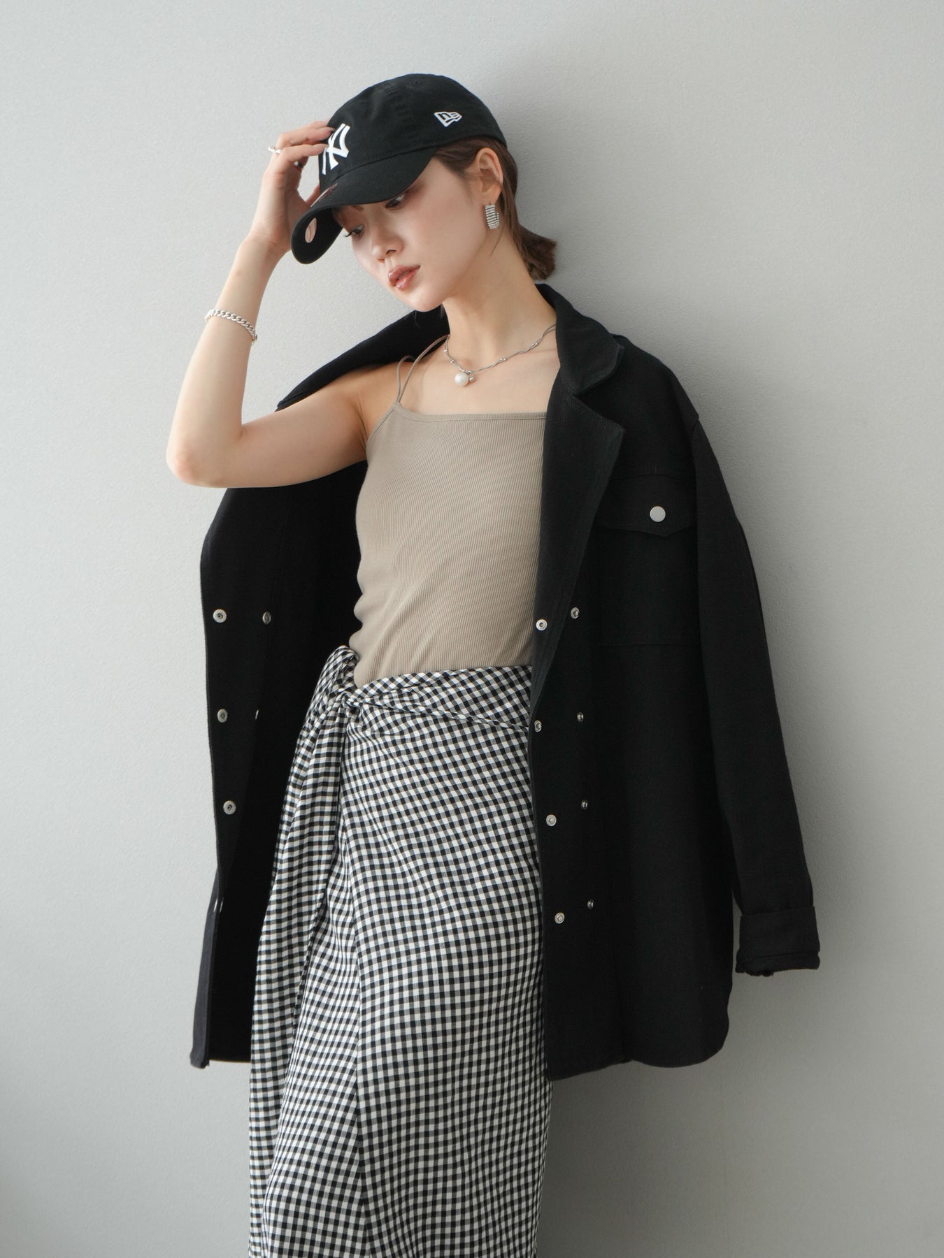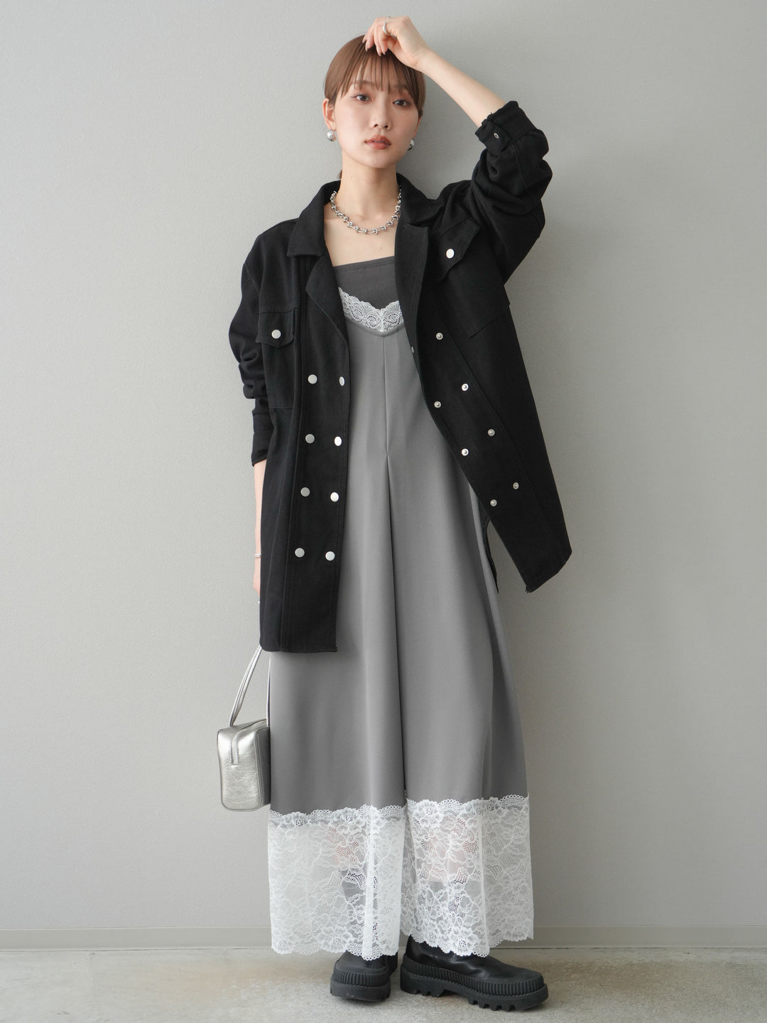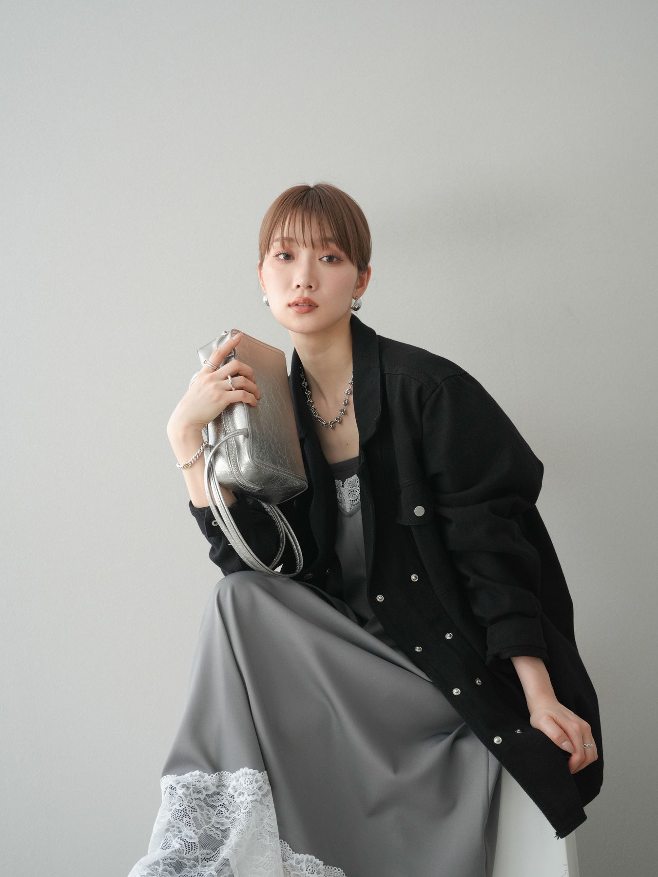 程よいハリ感のあるコットンツイル素材を使用した、トレンドライクなダブルボタンジャケット。ゆったりとしたシルエットでラフに羽織れ、こなれ感のある着こなしを叶えます。長めの着丈が体型カバーにも◎。デニムやスカートとも相性がよく、ロングシーズン活躍する一枚です。 ※ボトムス、キャミソール(インナー)以外の商品は一律でインナーは付属していません。