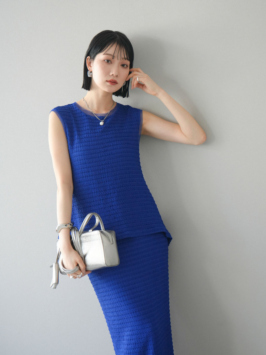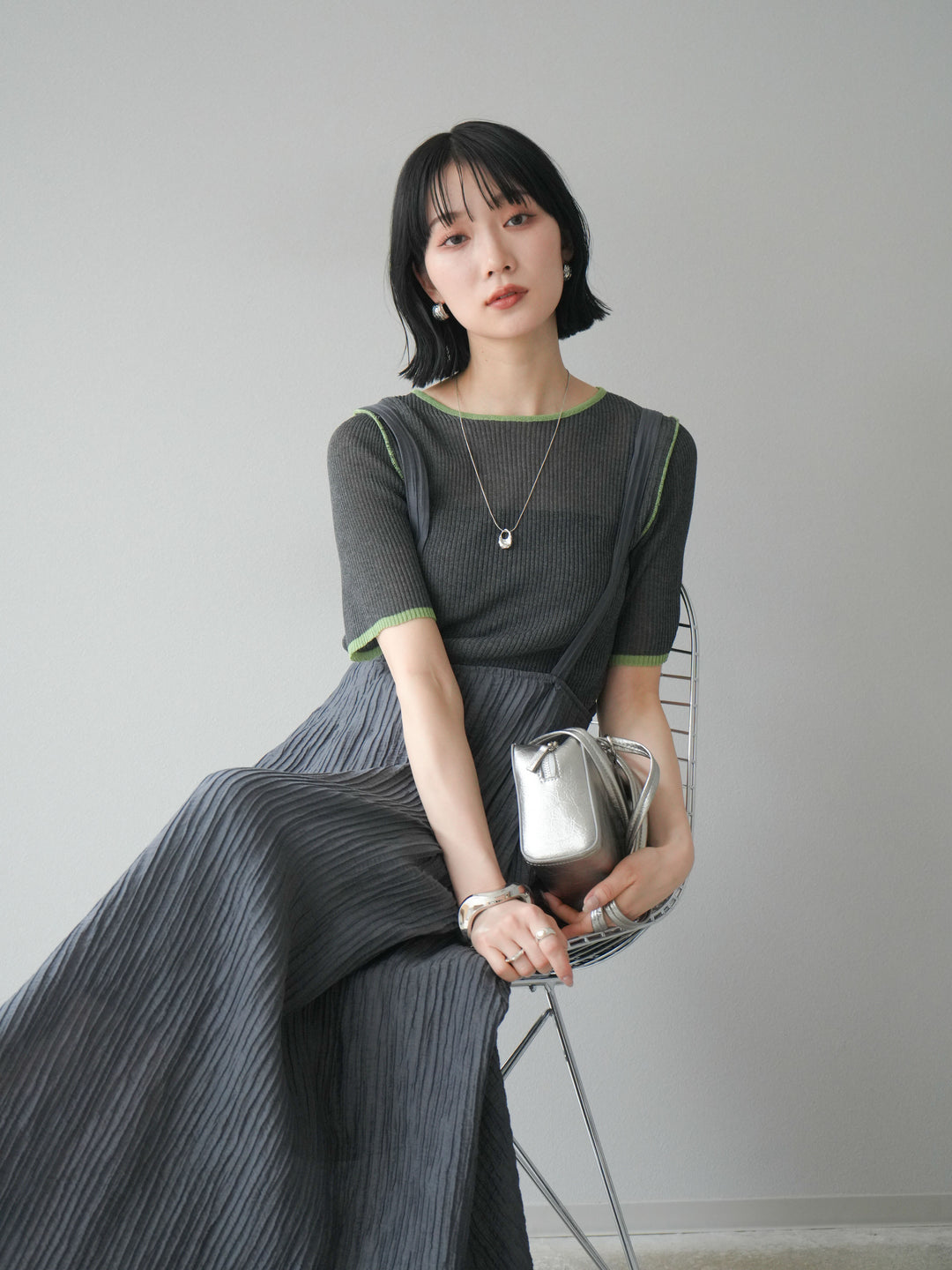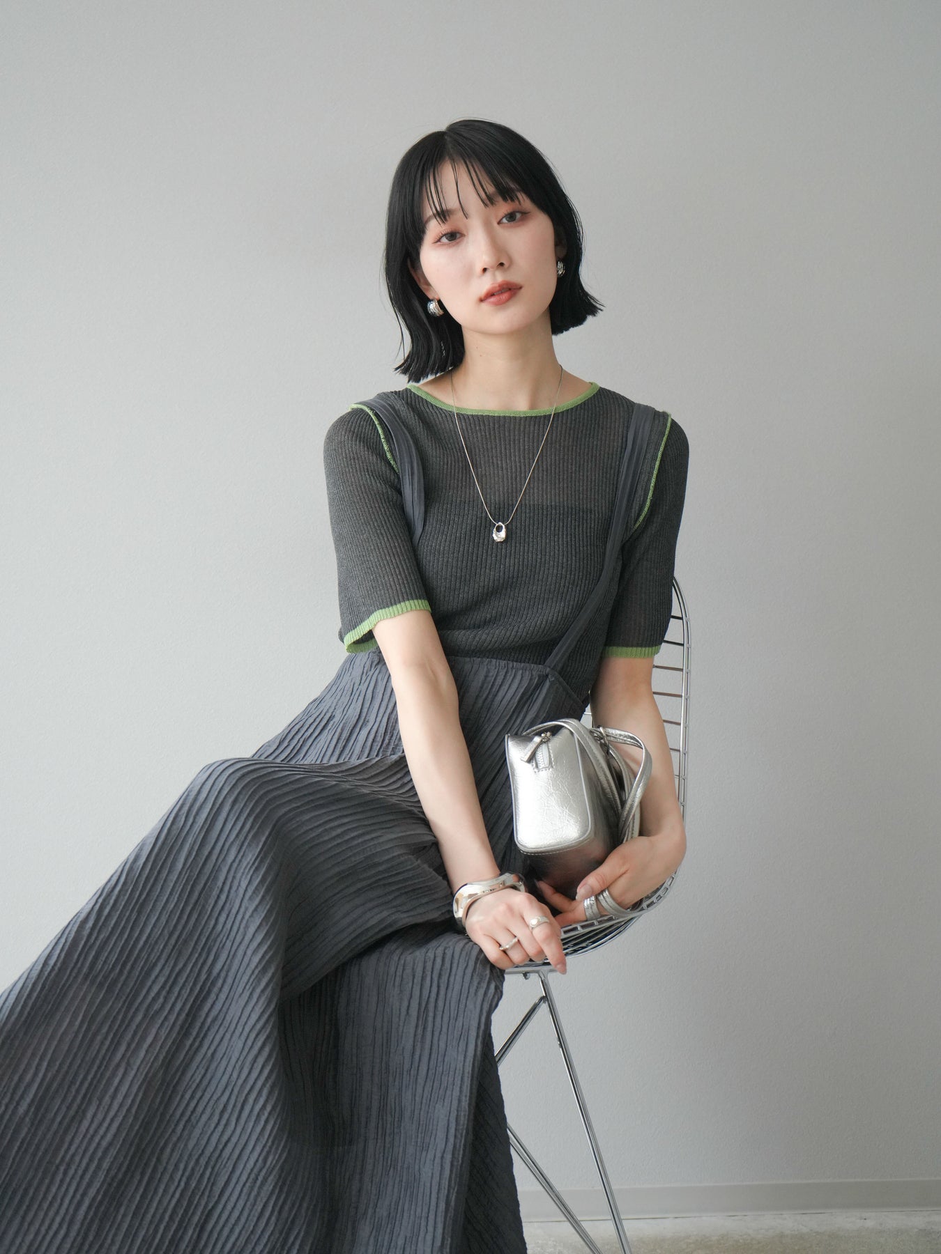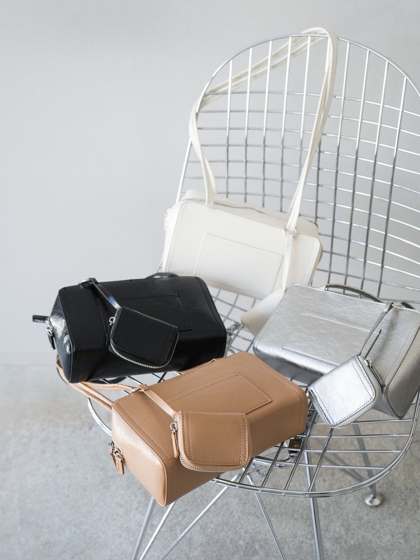 [予約]ポーチ付きスクエアバッグ/シルバー