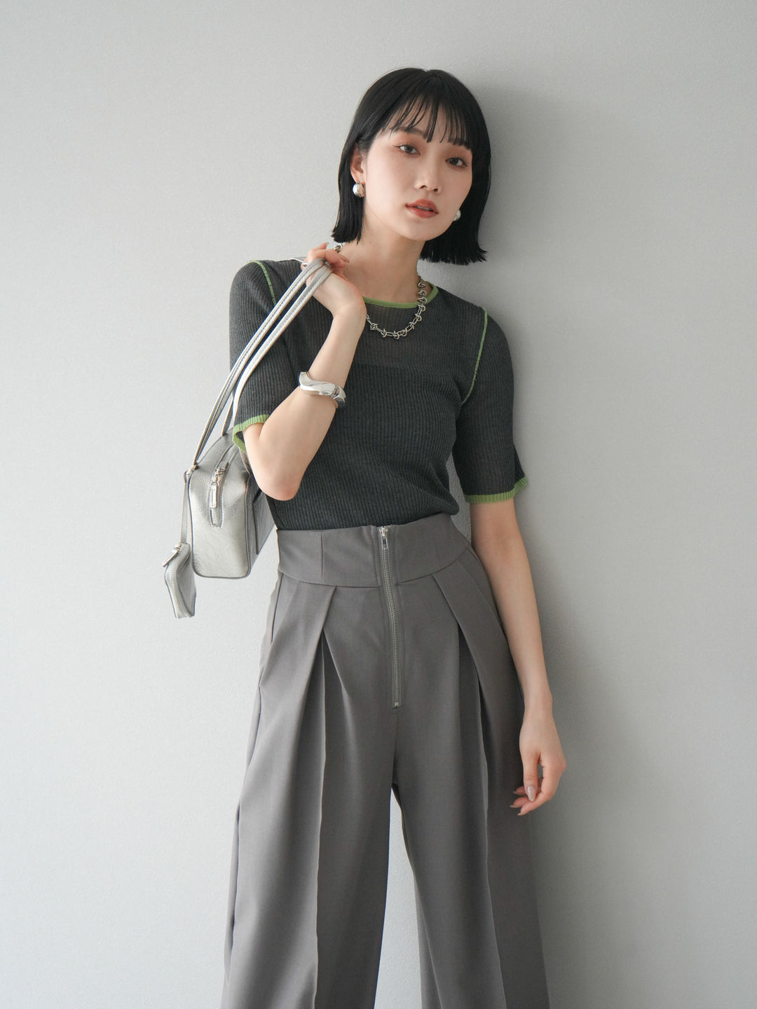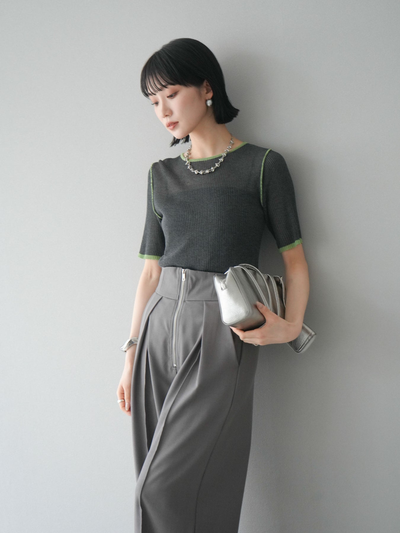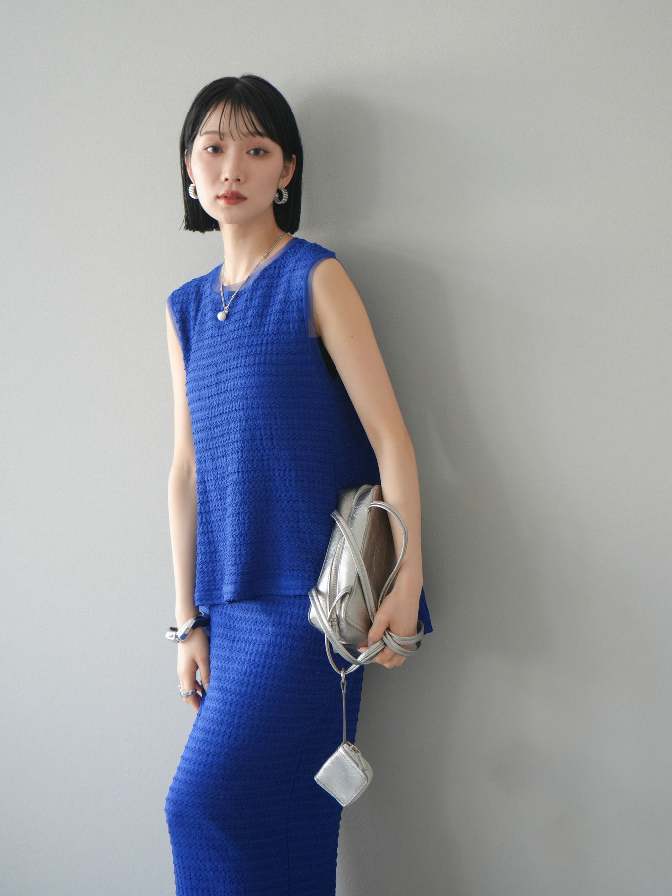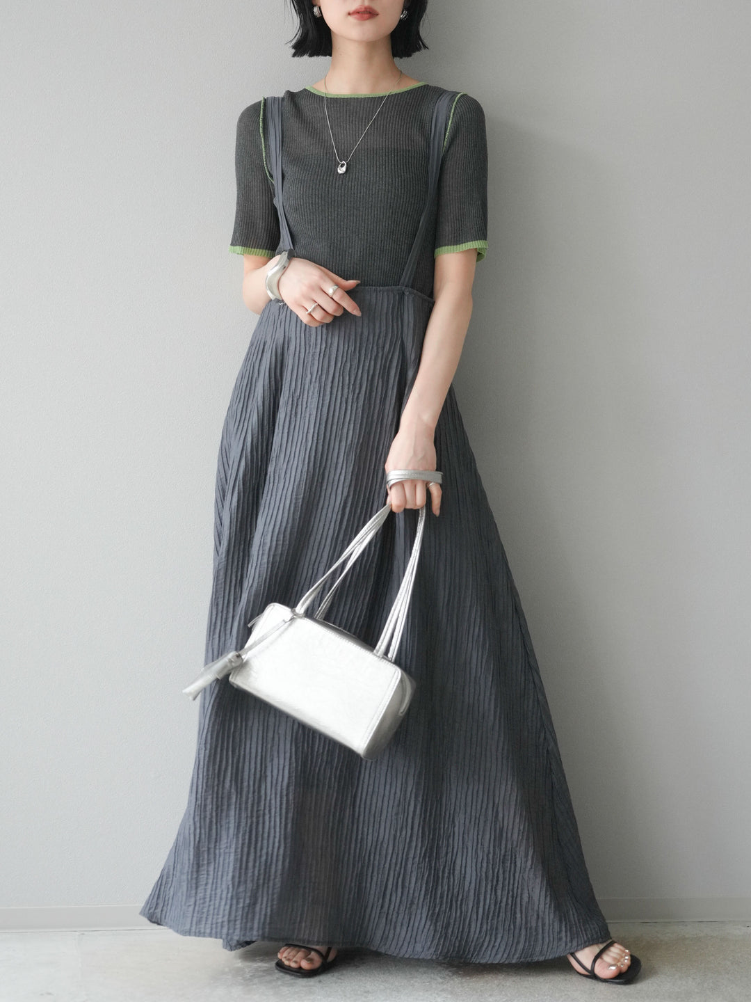 [予約]ポーチ付きスクエアバッグ/シルバー