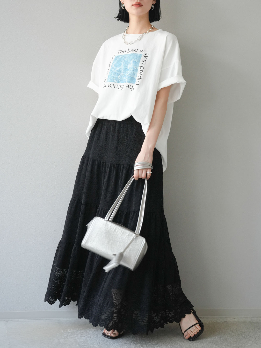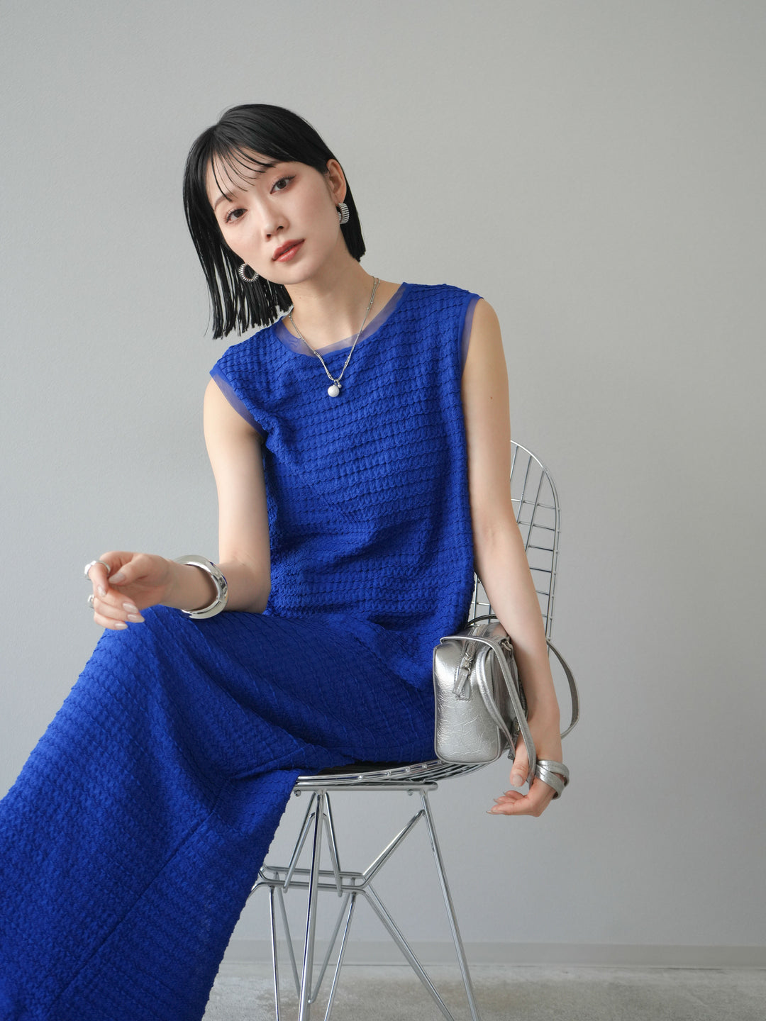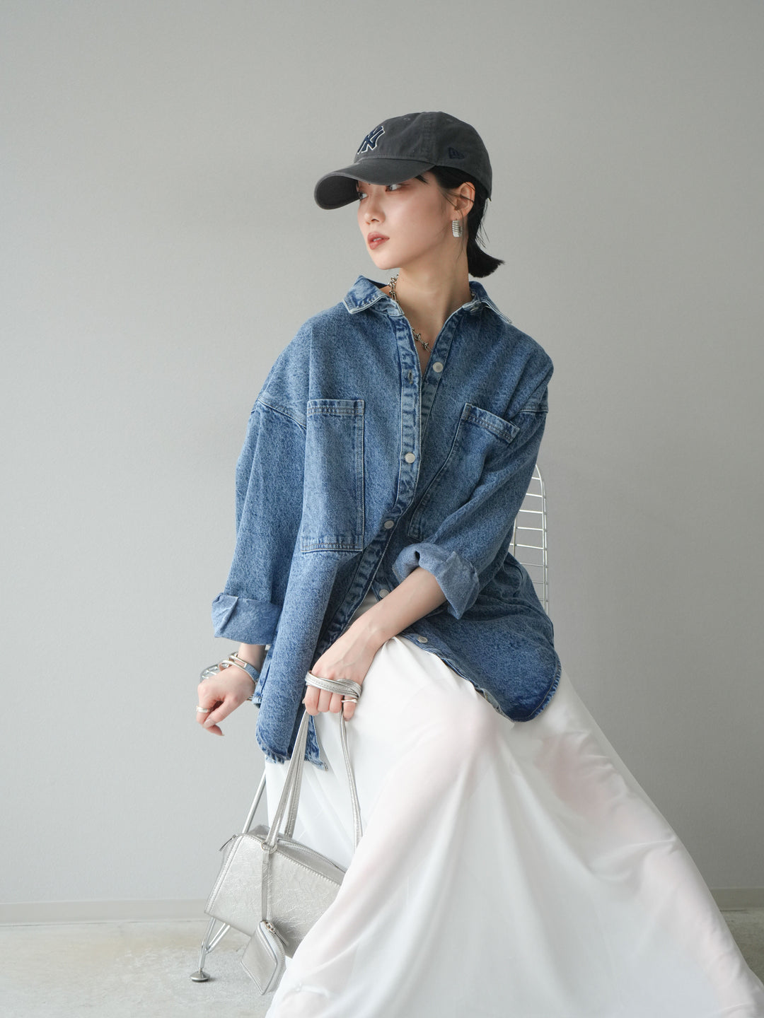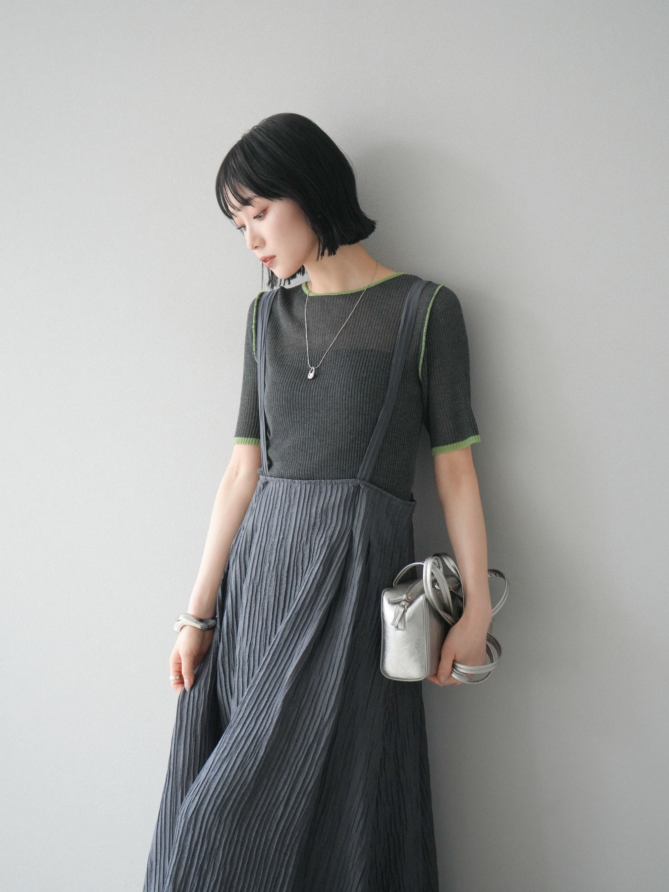 [予約]ポーチ付きスクエアバッグ/シルバー