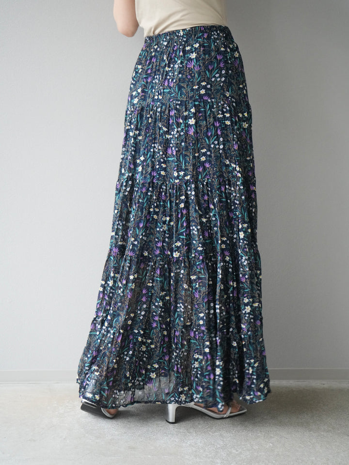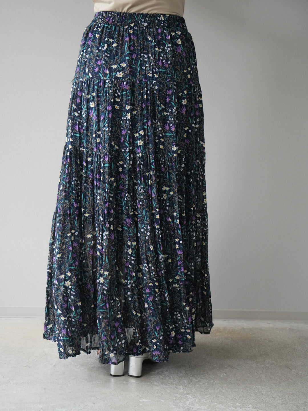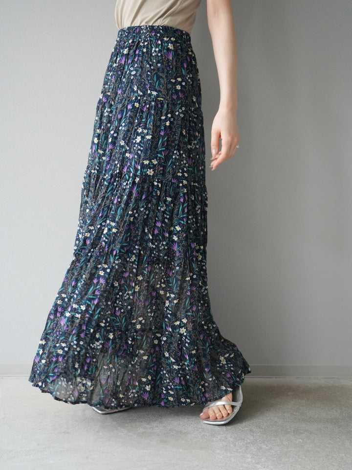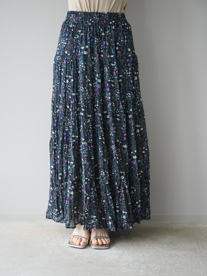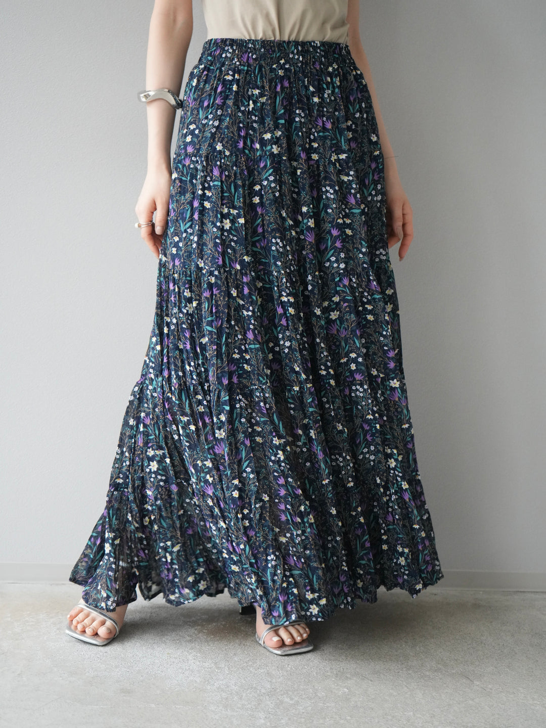 [予約]フラワーワッシャープリーツスカート/ネイビー