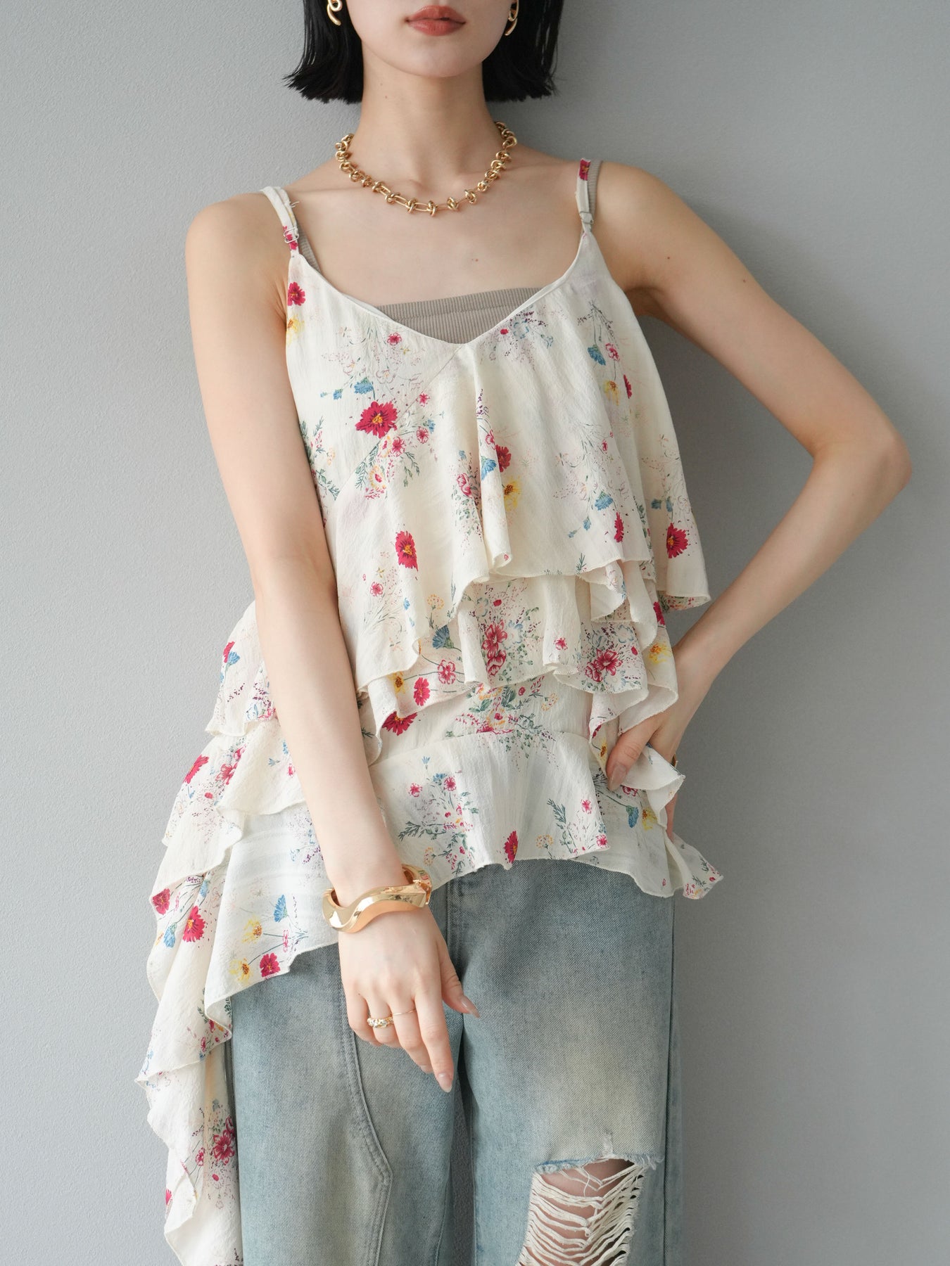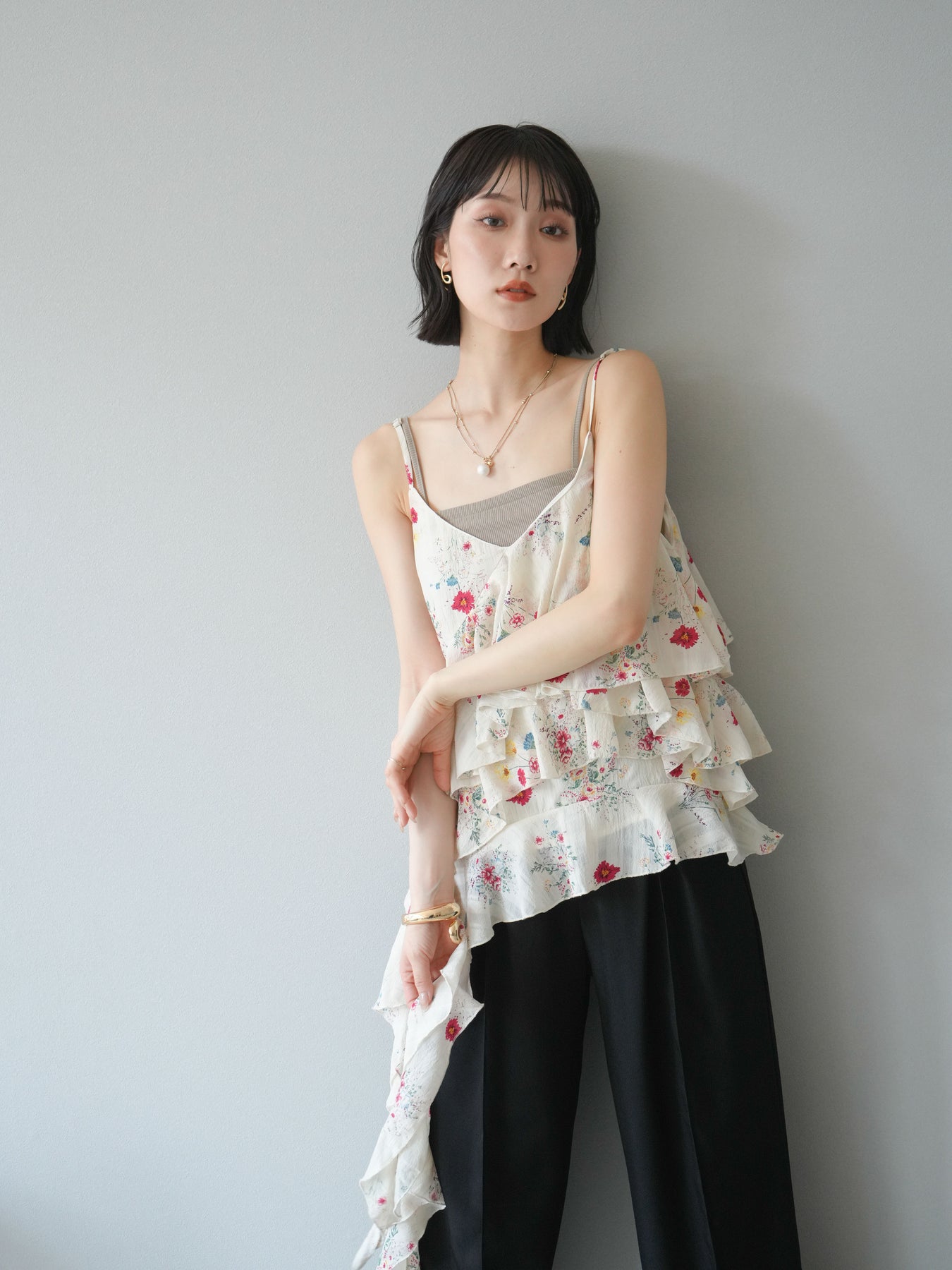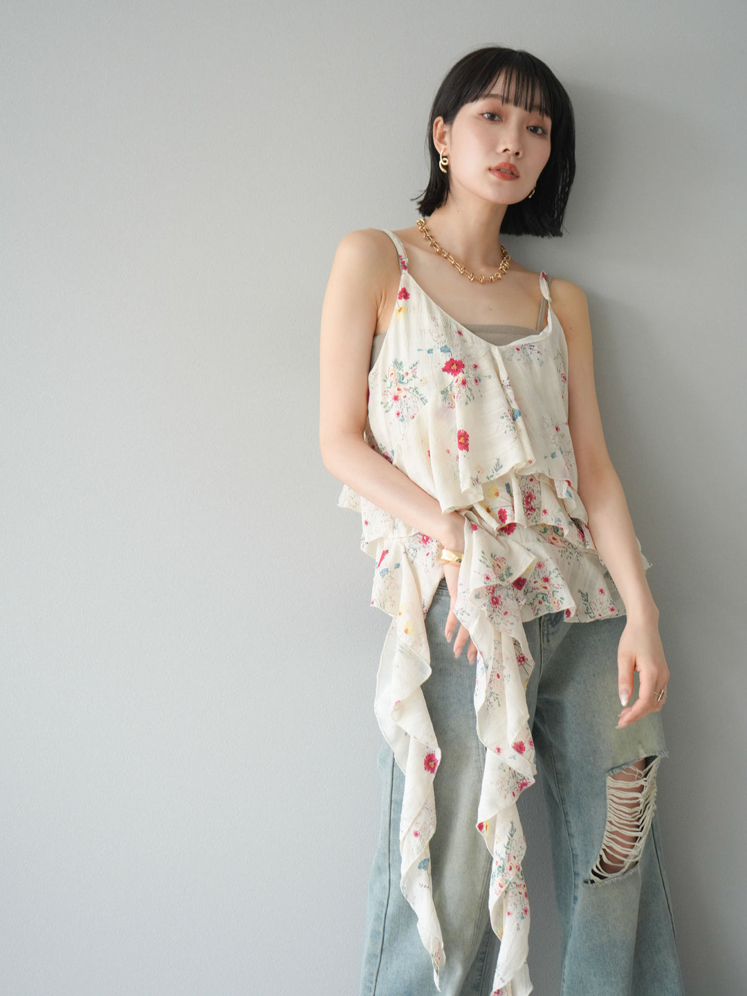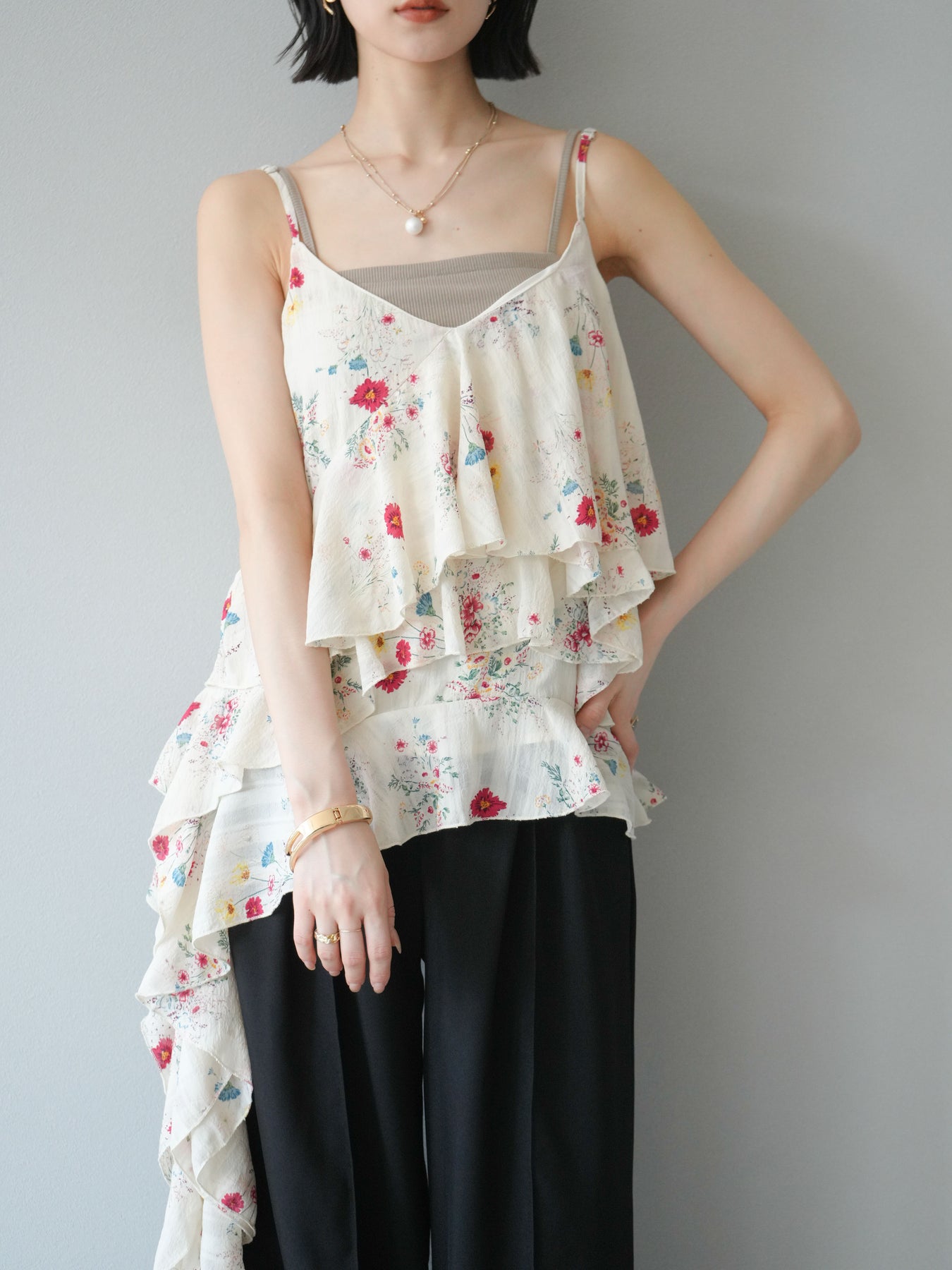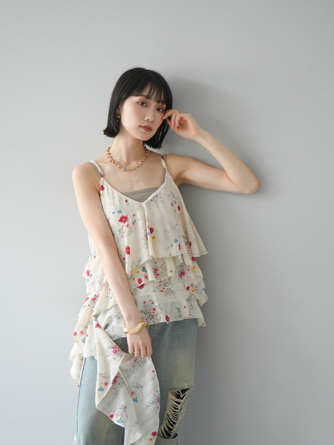 [予約]フラワープリントラッフルキャミソール/アイボリー