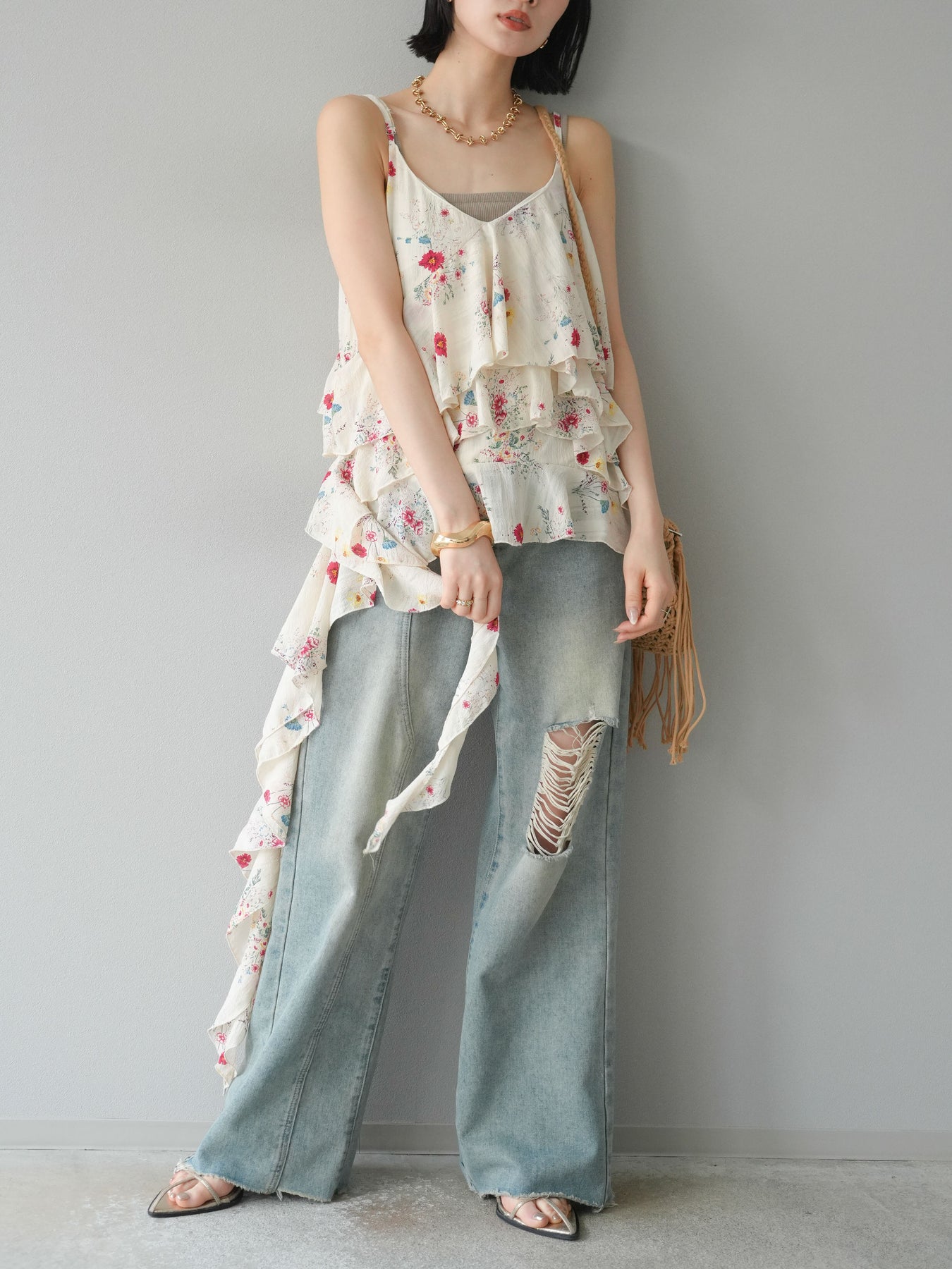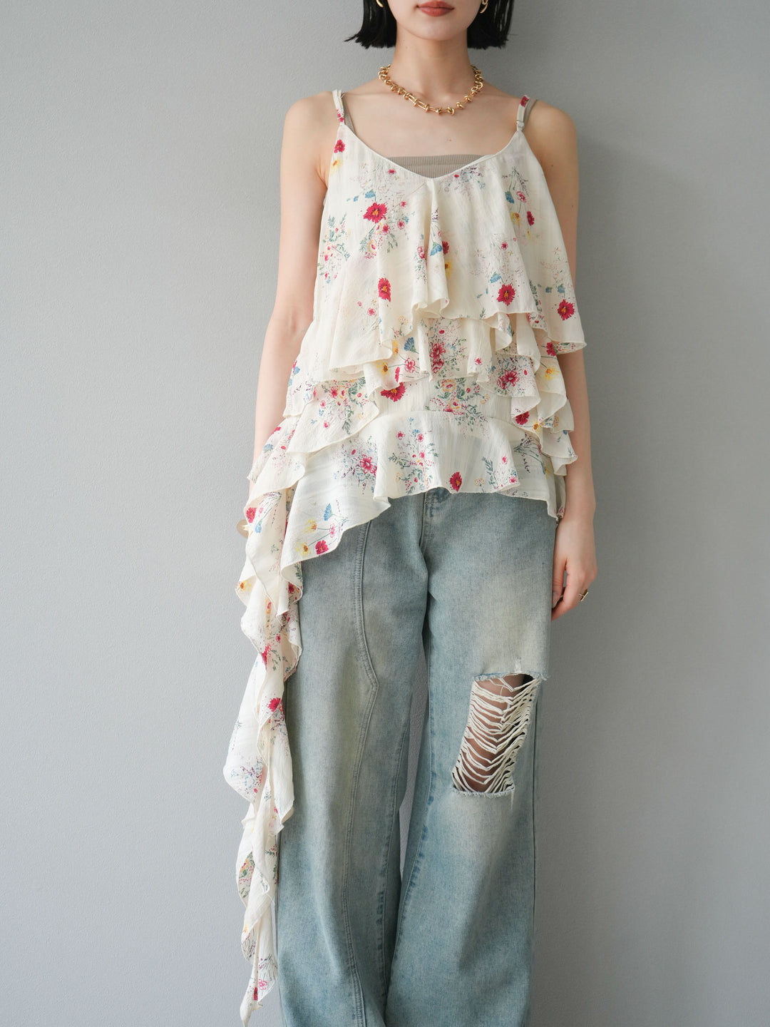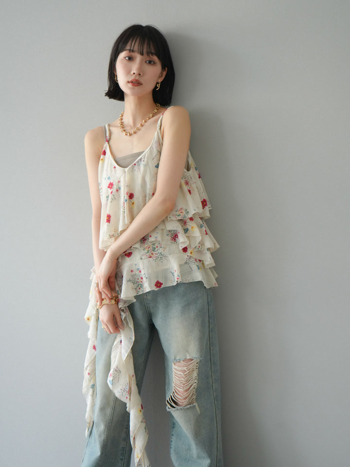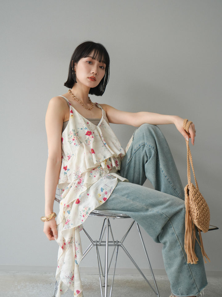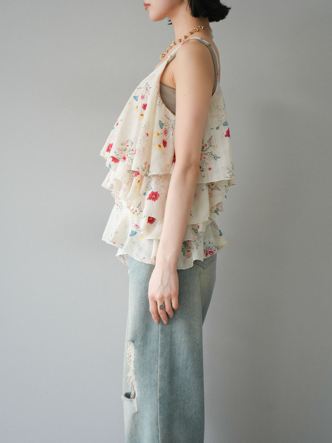 [予約]フラワープリントラッフルキャミソール/アイボリー