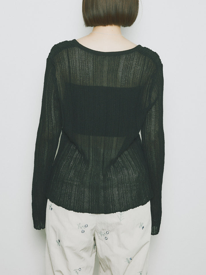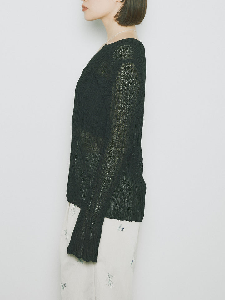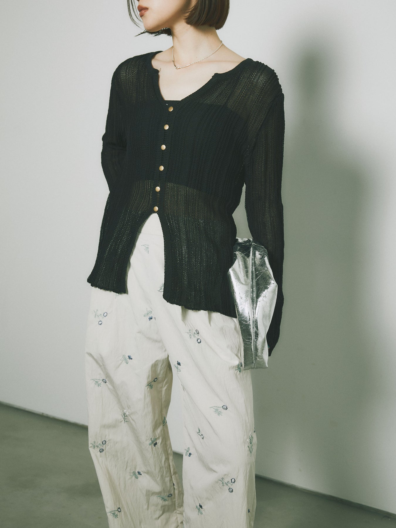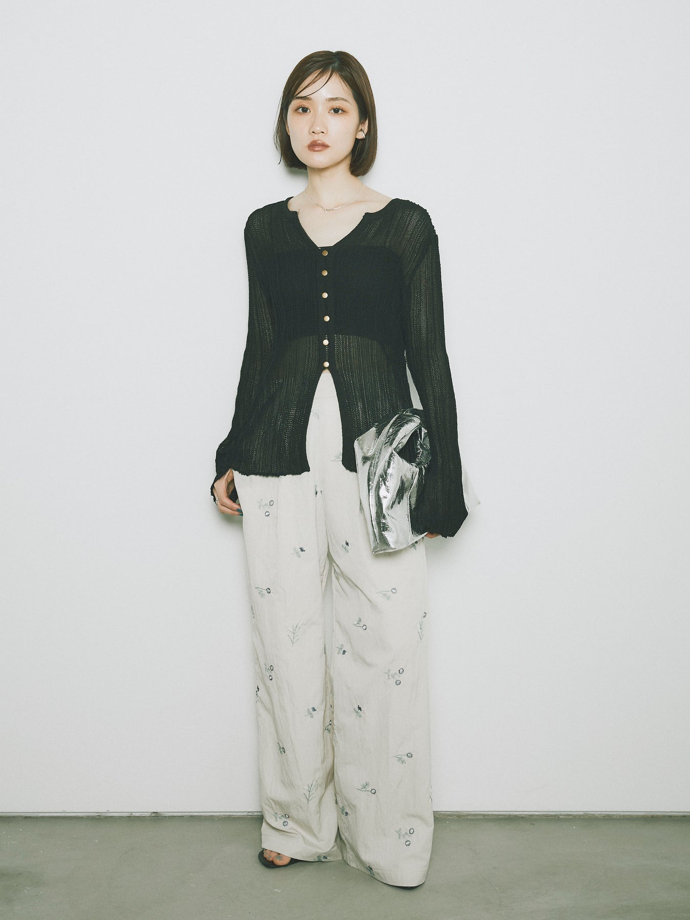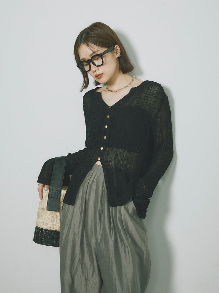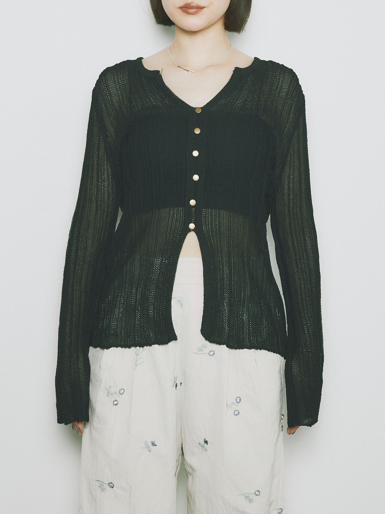 [予約]フロントスリットフロントボタンニットトップス/ブラック