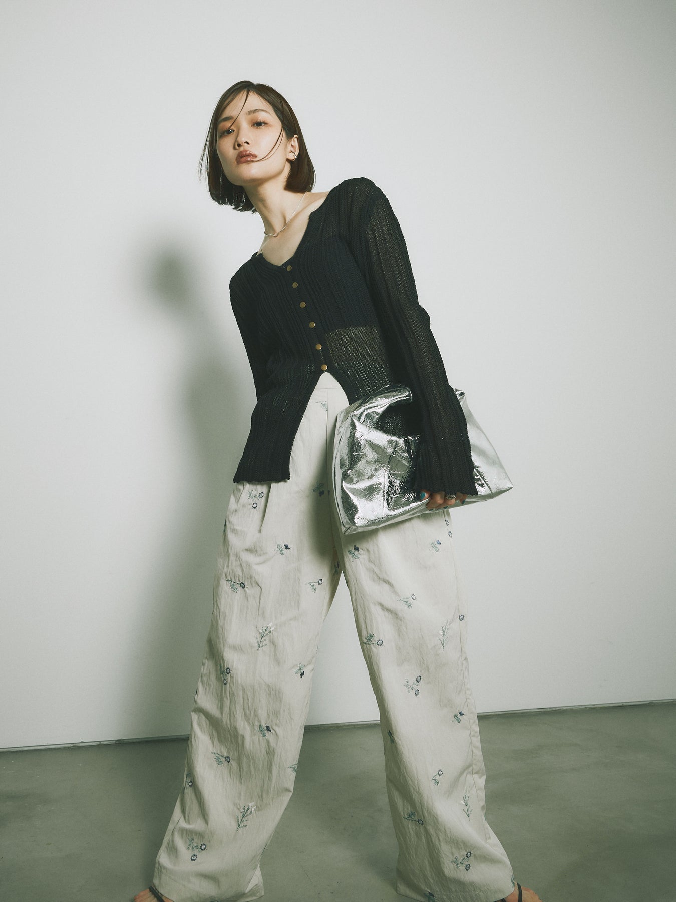 ・お手入れ方法:水温30℃以下手洗いでのお洗濯をお薦めします。素材の特性上、洗濯の際に色落ちが生じる恐れがありますので単独で・短時間でのお洗濯をお薦めします。裏返してネットに入れ手洗いコースで洗濯、洗濯後は形を整えてから干してください。※タンブラー乾燥は控えてください。 濡れたままの状態で擦れると、色落ち色移りすることがあります。つけ置き洗いや雨や汗で濡れたまま放置は避け、速やかに処理してください。着用中の摩擦や汗、水濡れ、濃淡差があるものとの重ね着にご注意ください。