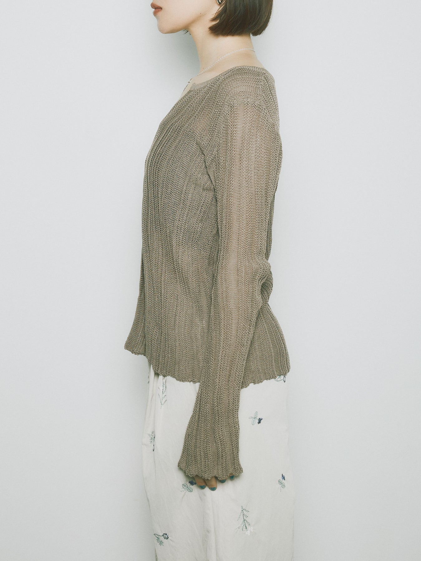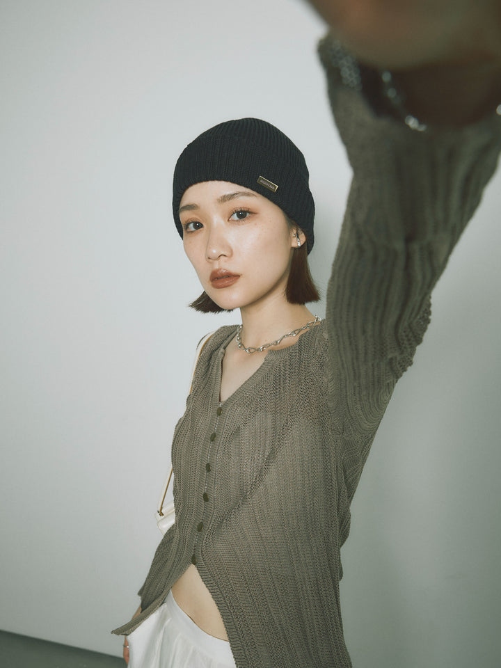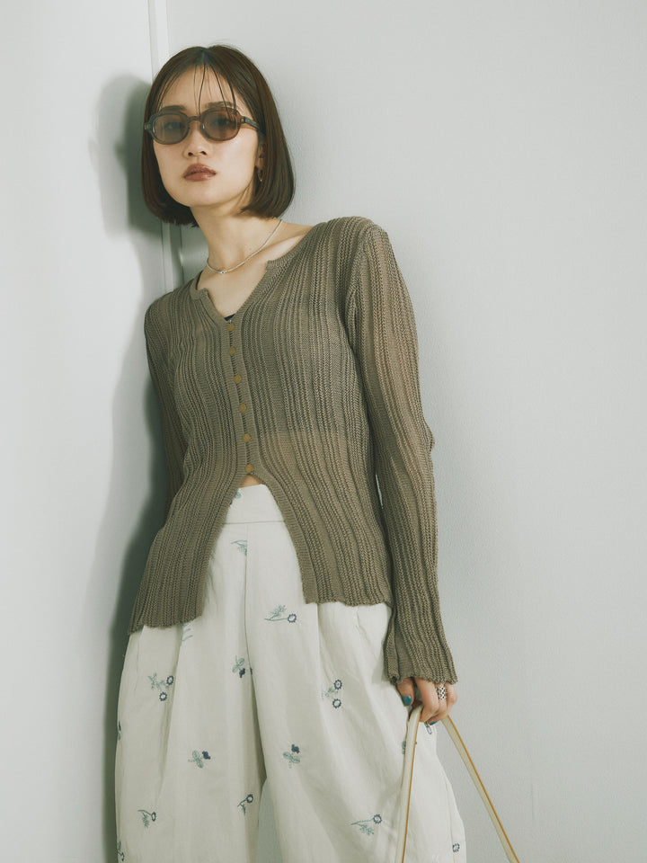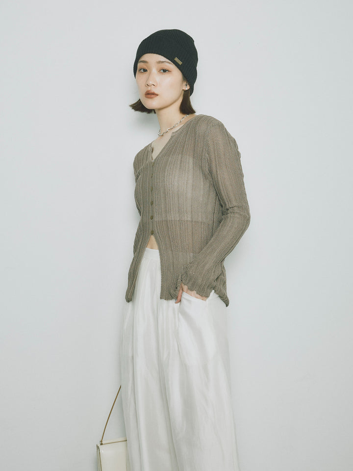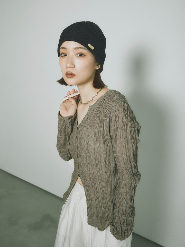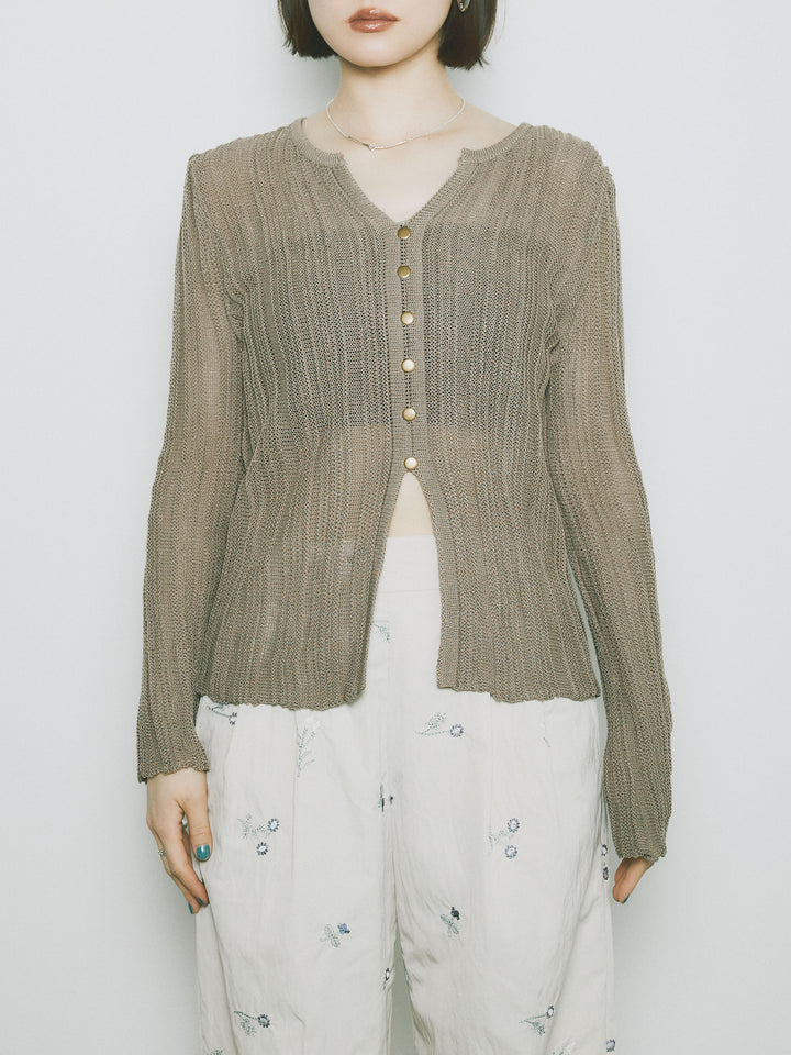 [予約]フロントスリットフロントボタンニットトップス/グレージュ