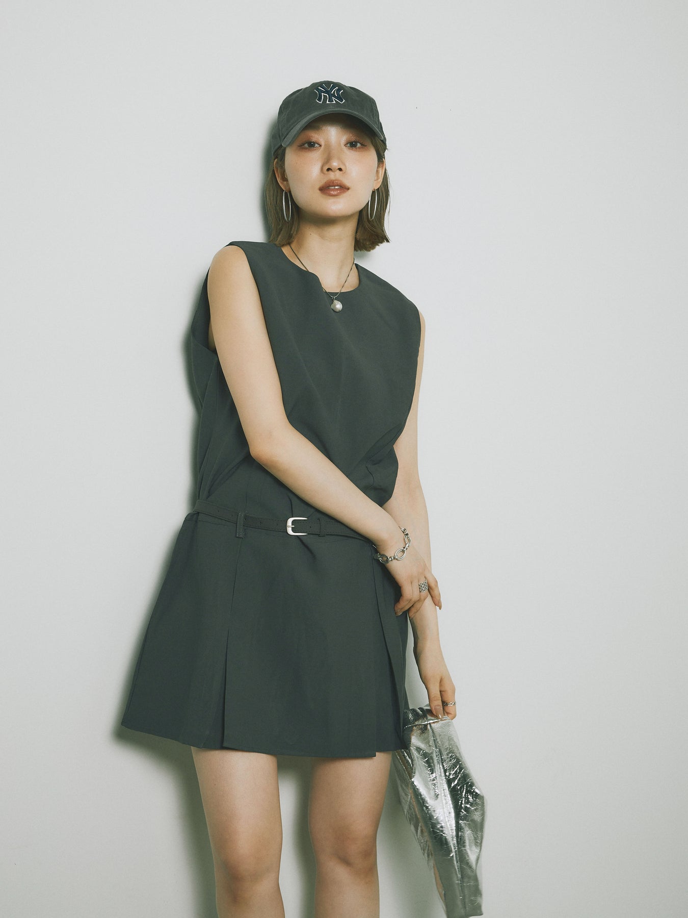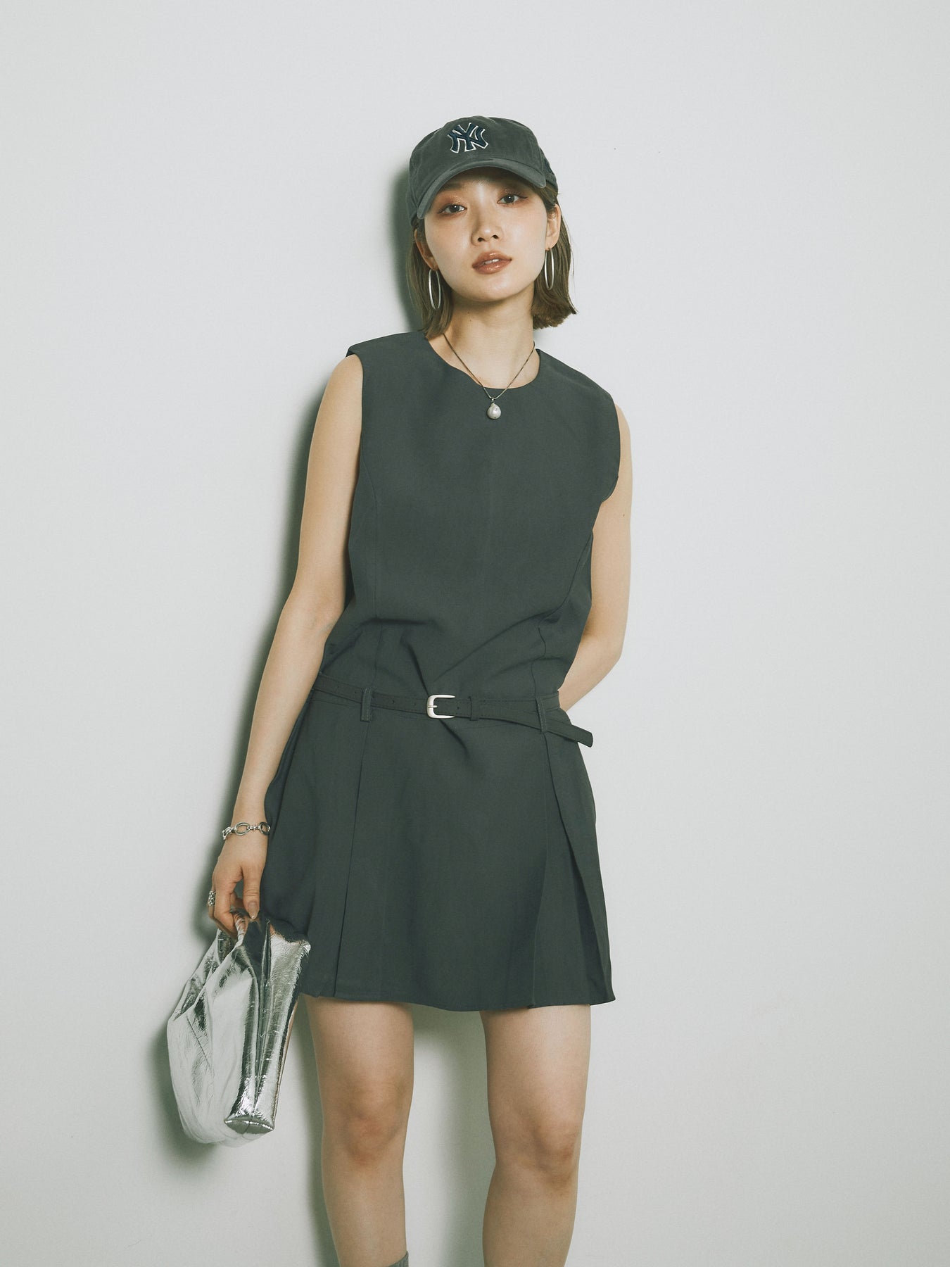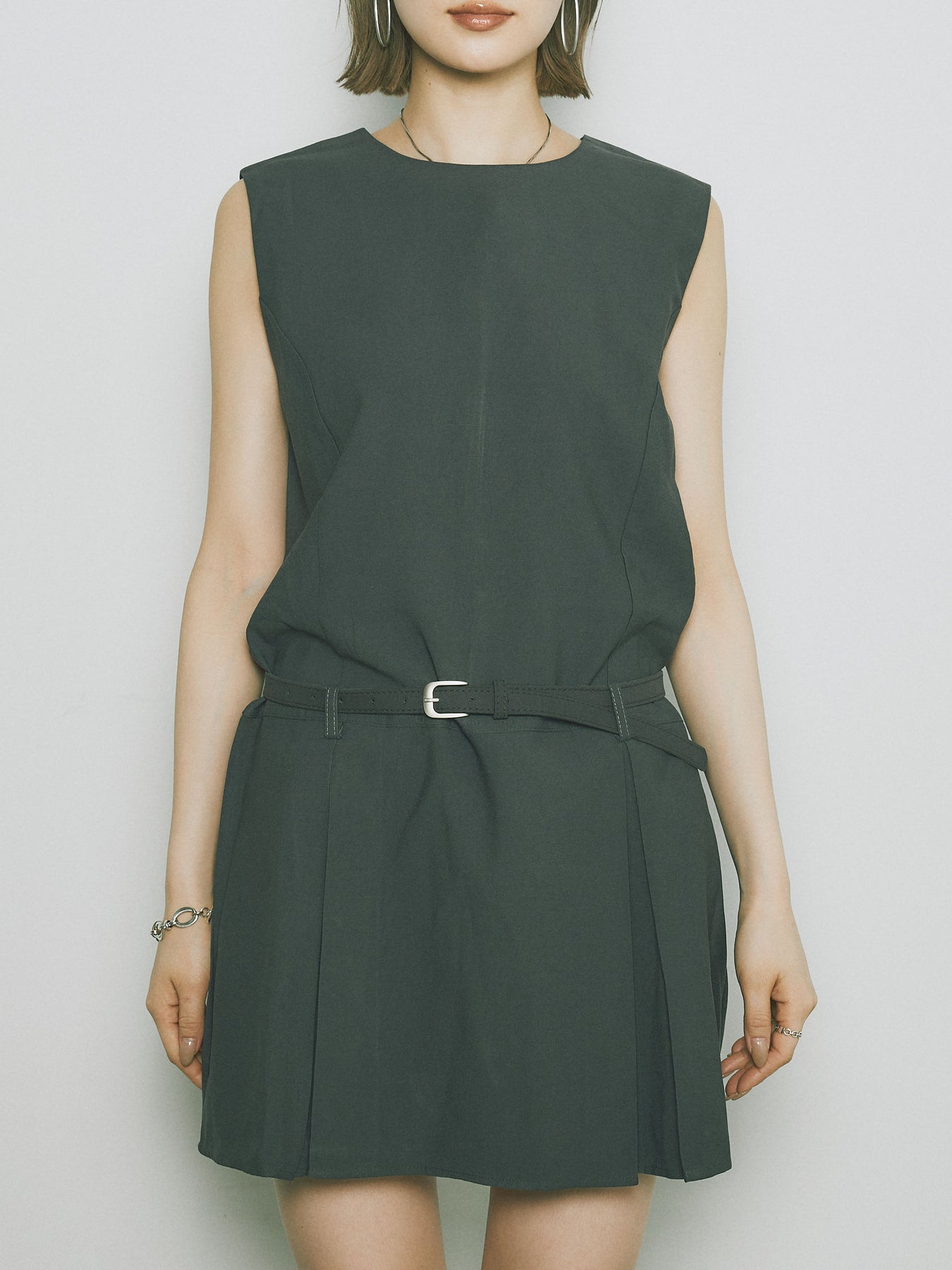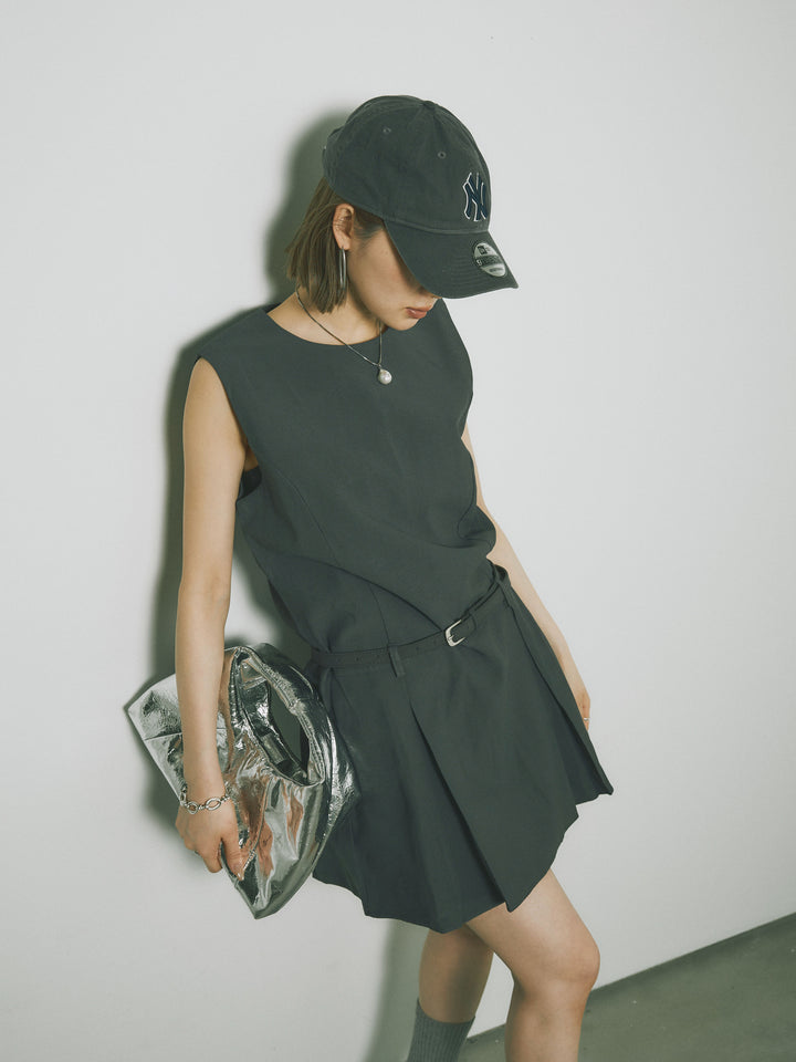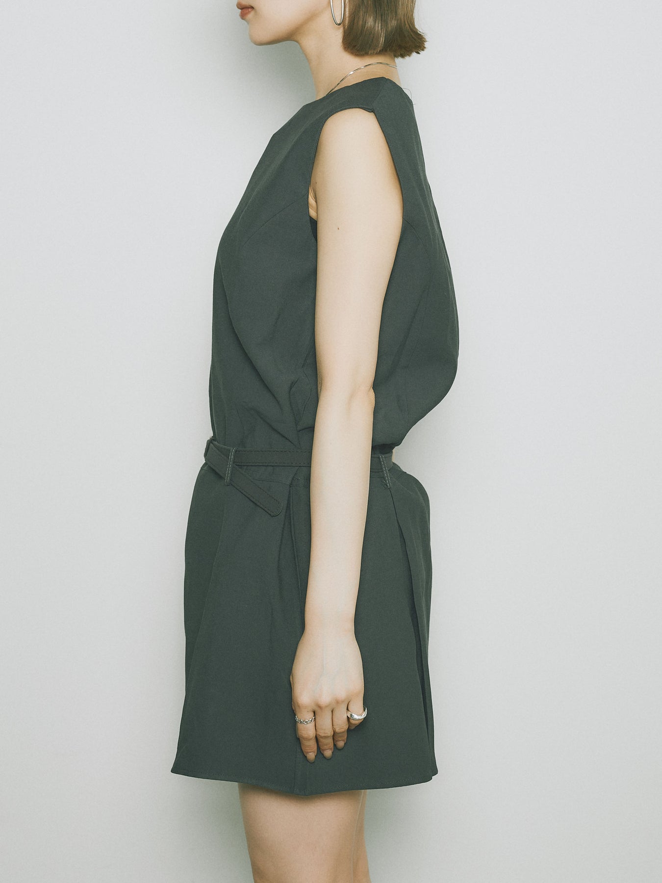 シンプルながらも洗練された印象を与えるタックデザインのコンビネゾン。ウエスト部分のベルトがアクセントとなり、スタイルを引き立てます。フレアシルエットが女性らしさを際立たせ、シンプルでありながらエレガントな印象を与えます。カジュアルからドレッシーまで、幅広いシーンで活躍するアイテムです。 ※ボトムス、キャミソール(インナー)以外の商品は一律でインナーは付属していません。