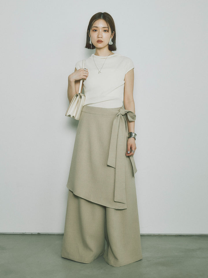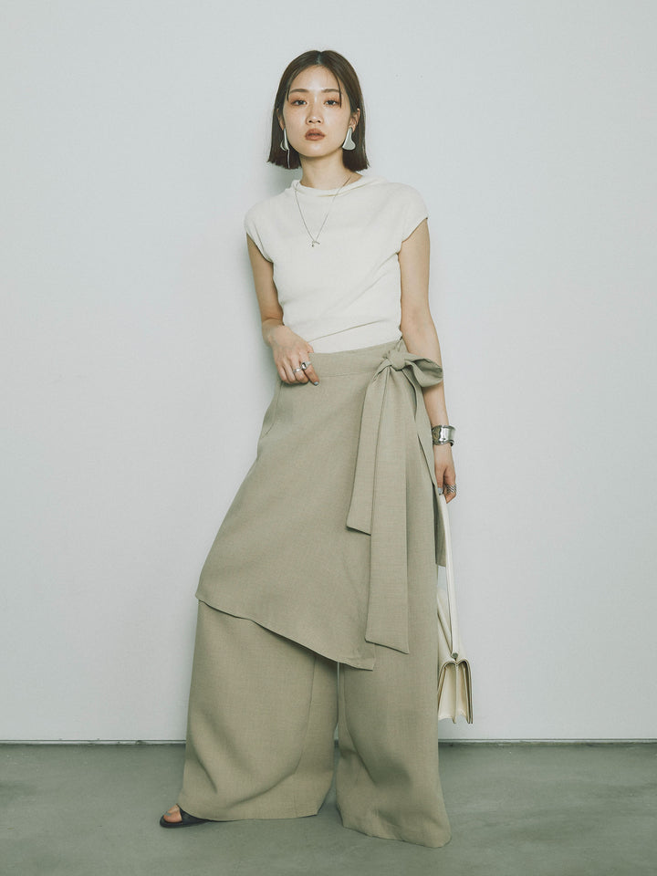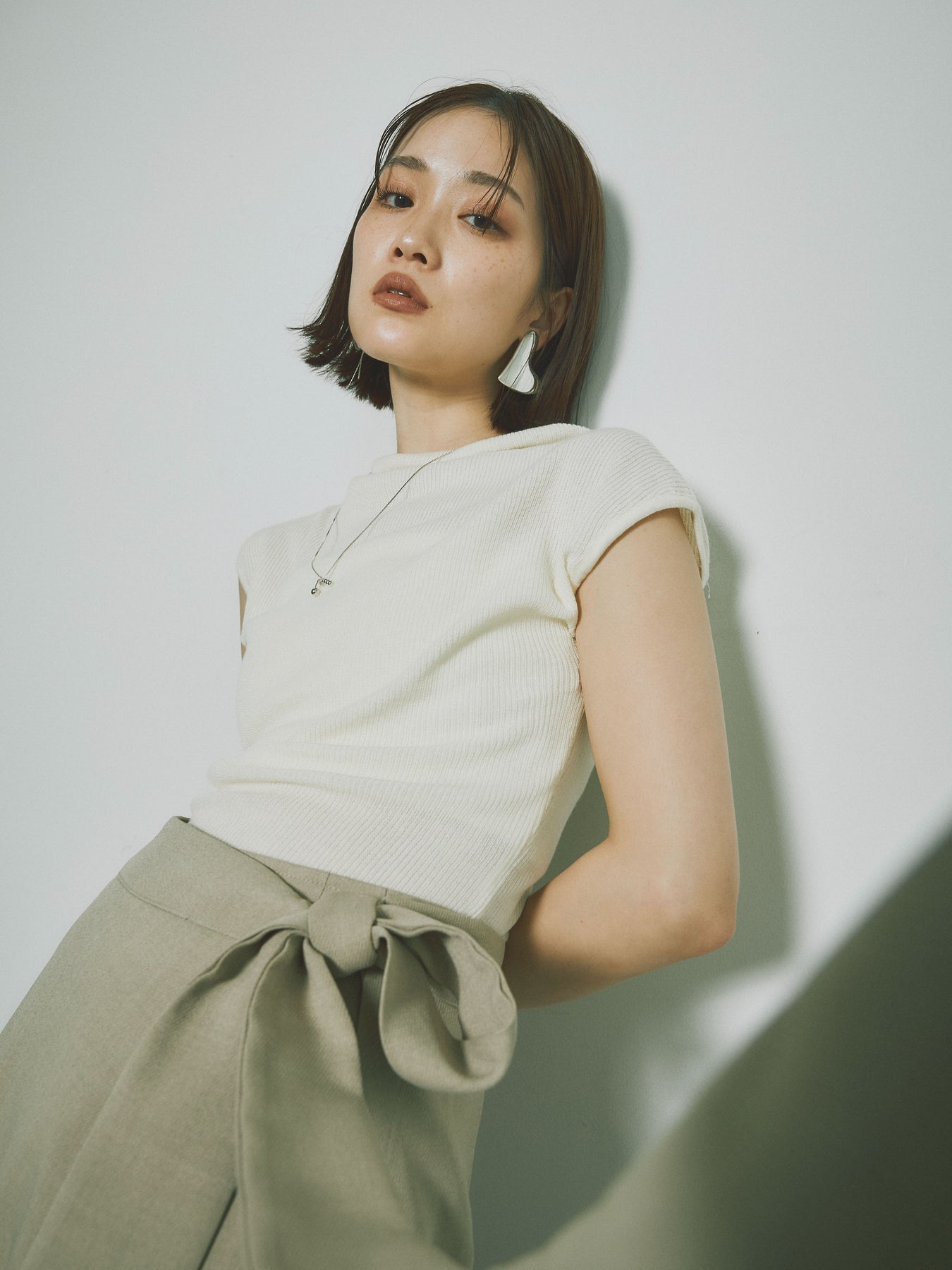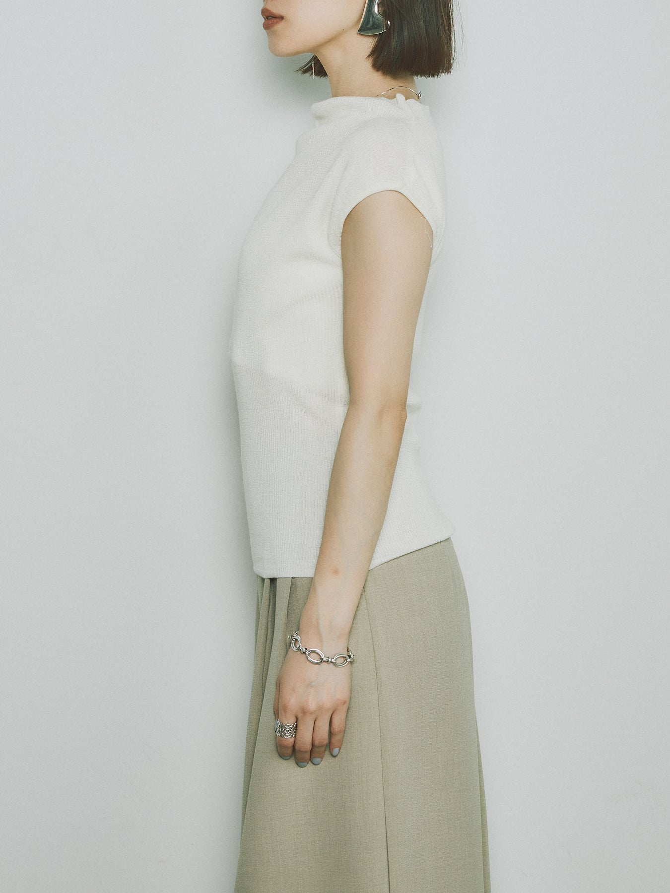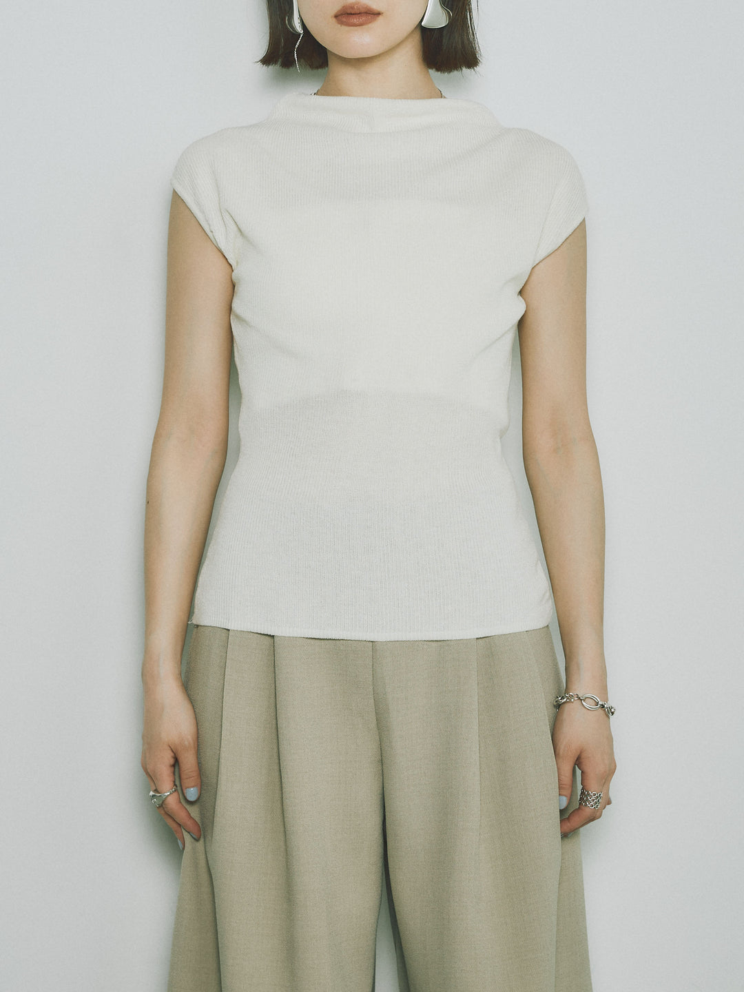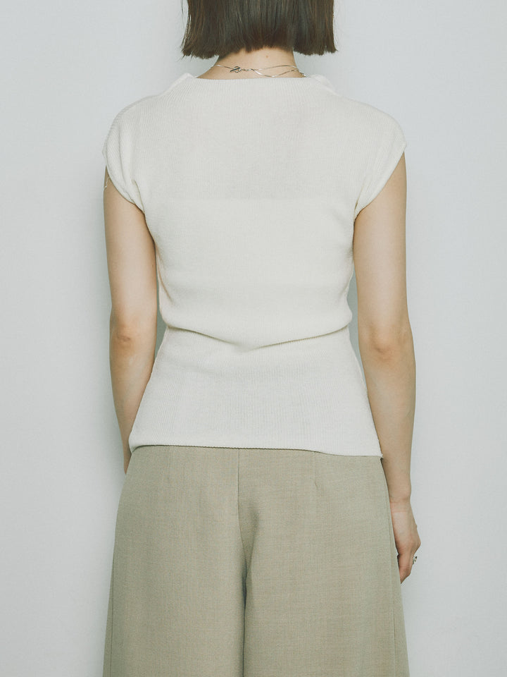 [予約]プチネックノースリーブリブニットトップス/アイボリー