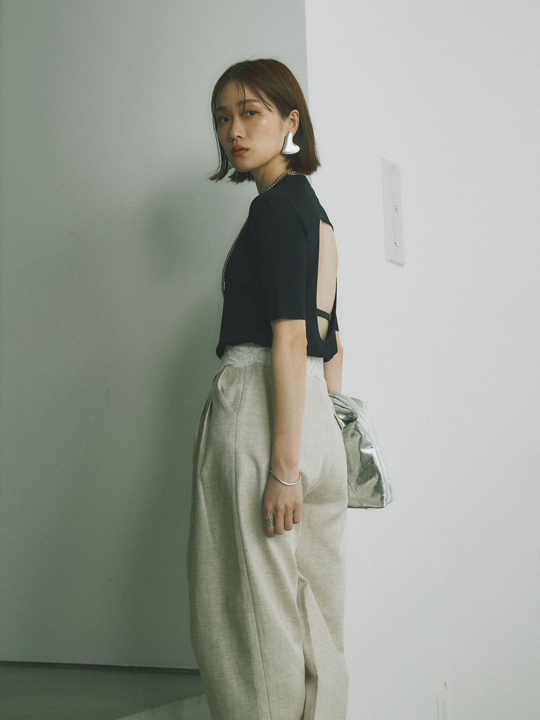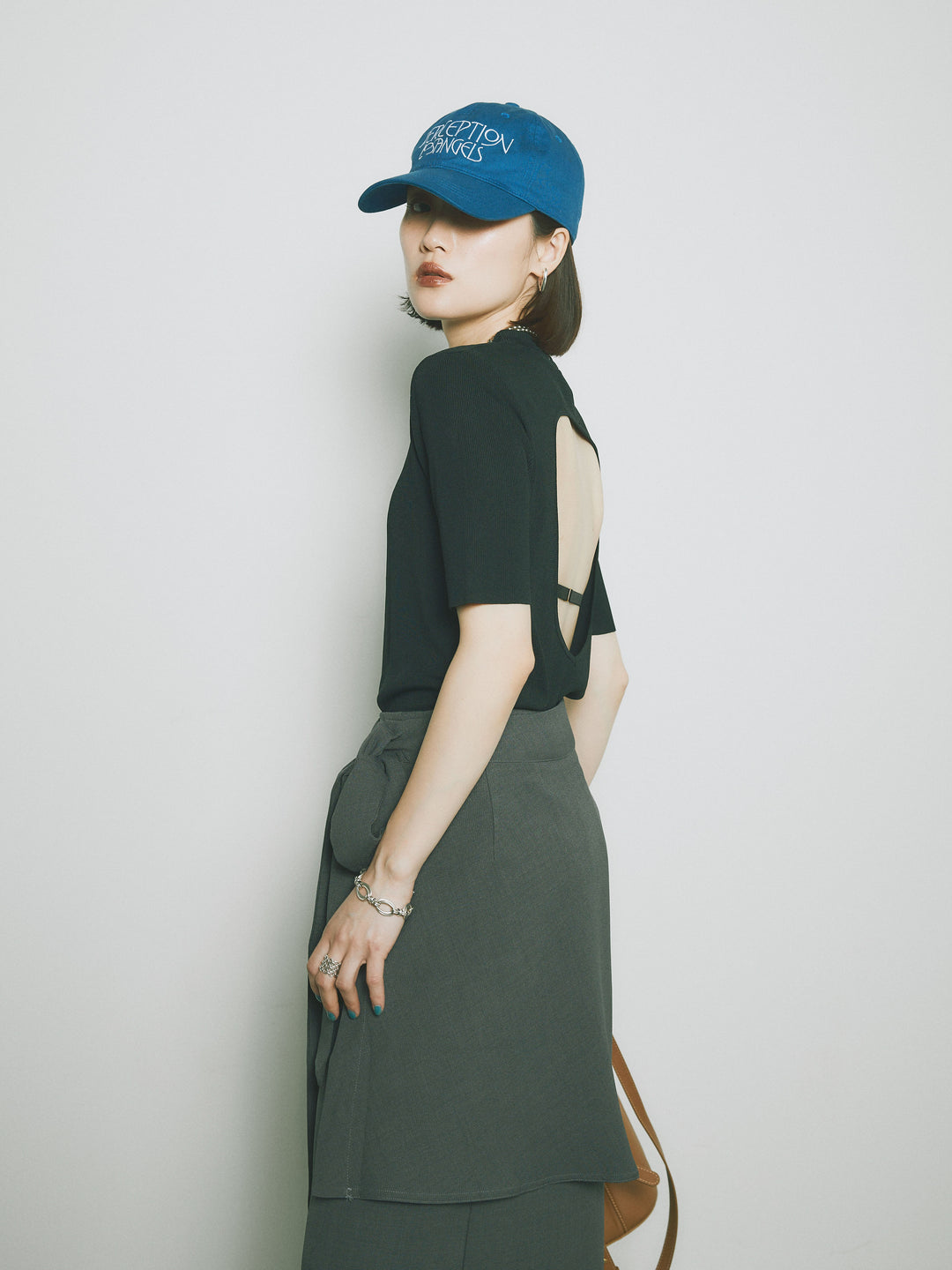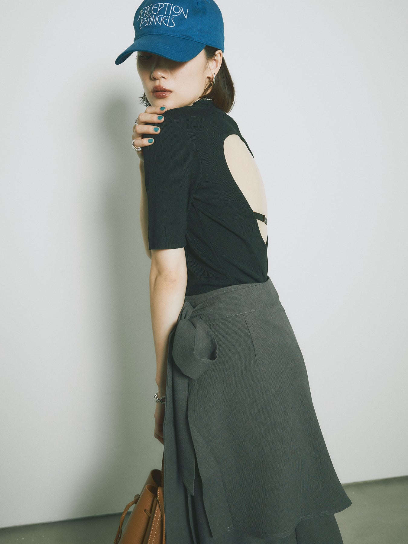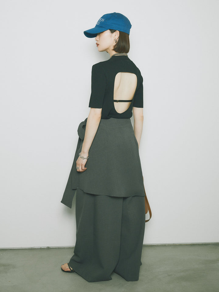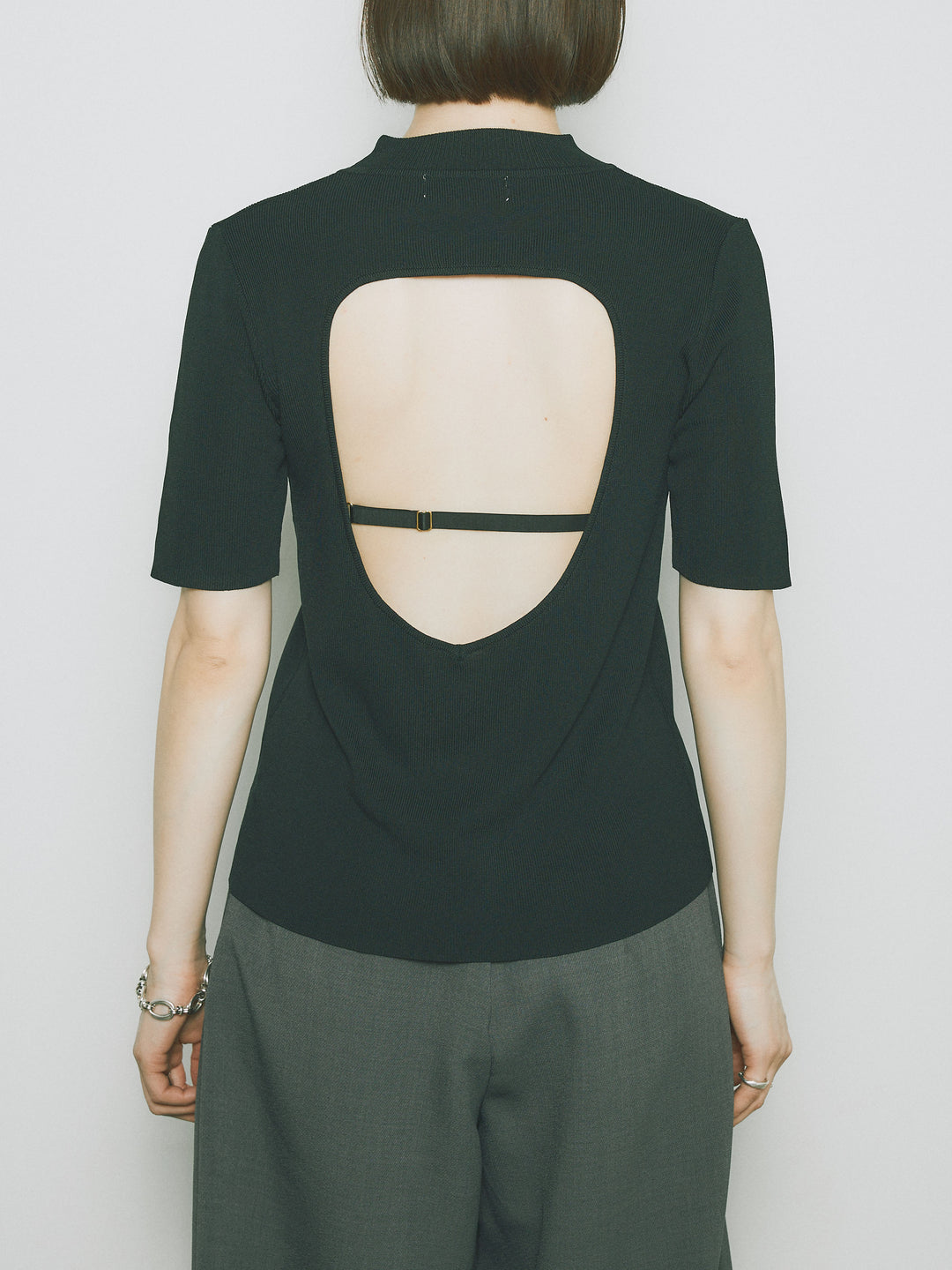 [予約]バックオープンレーヨンニットトップス/ブラック
