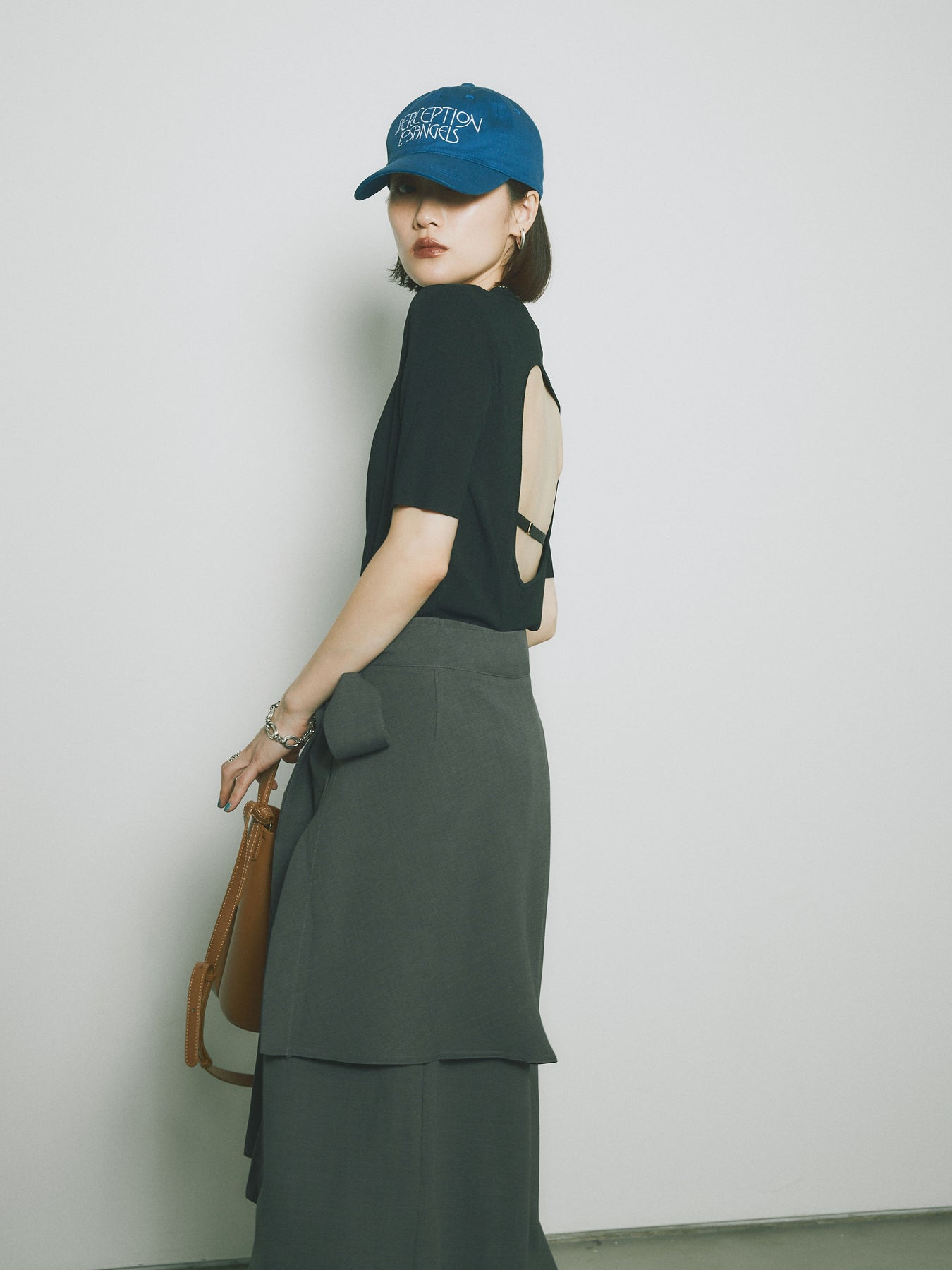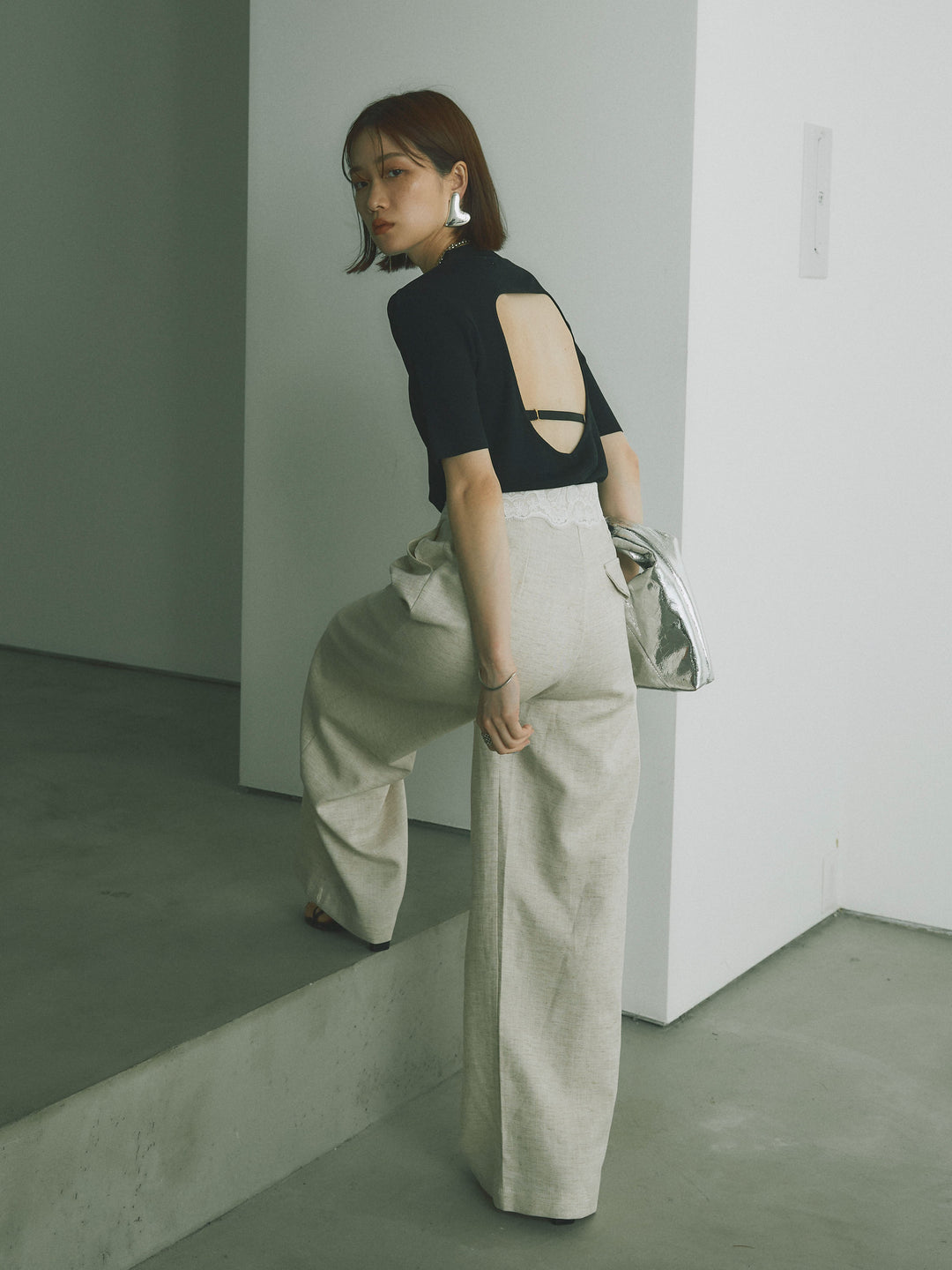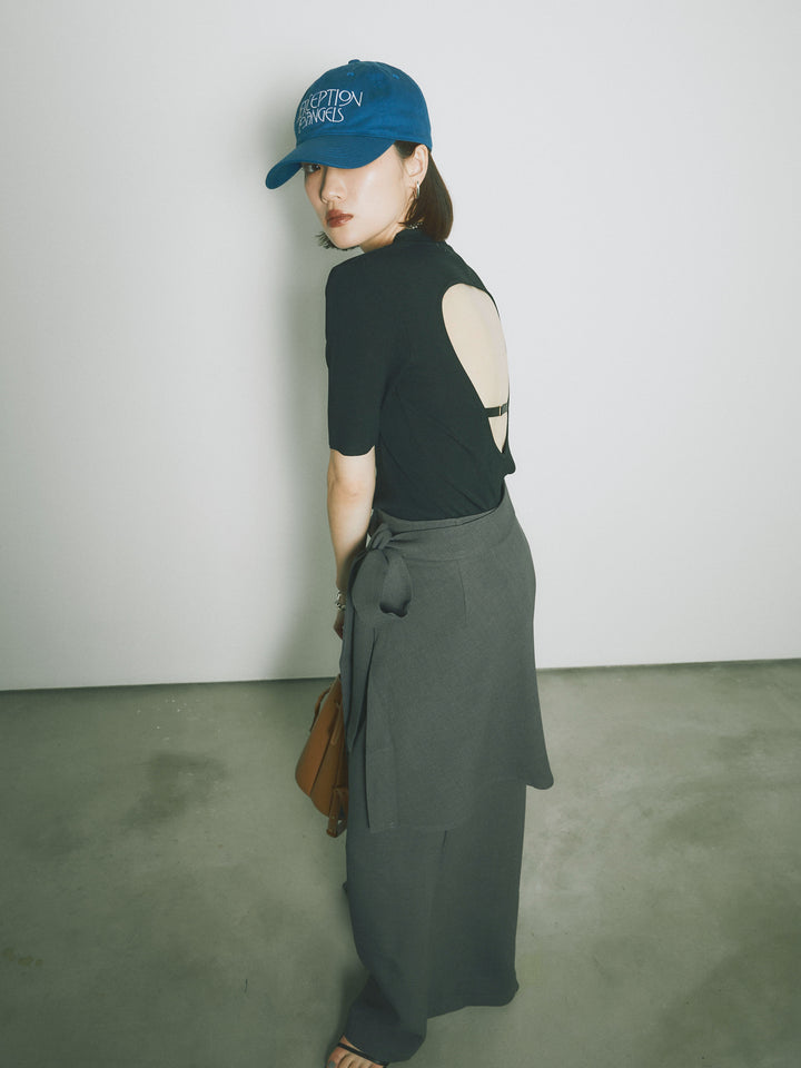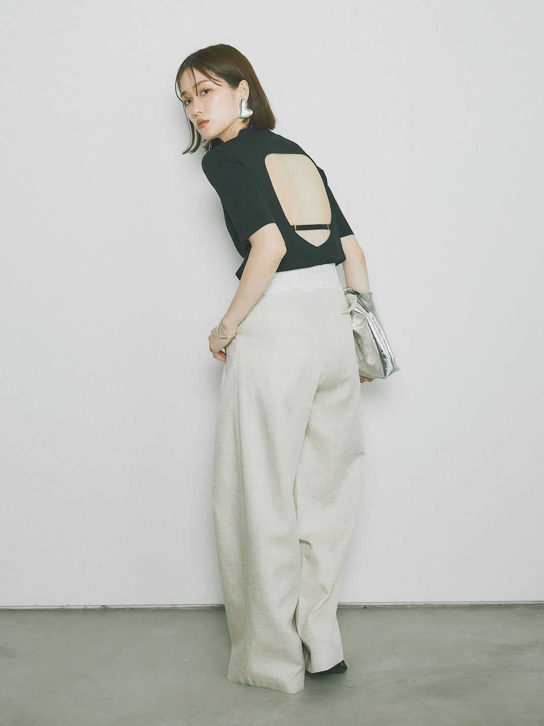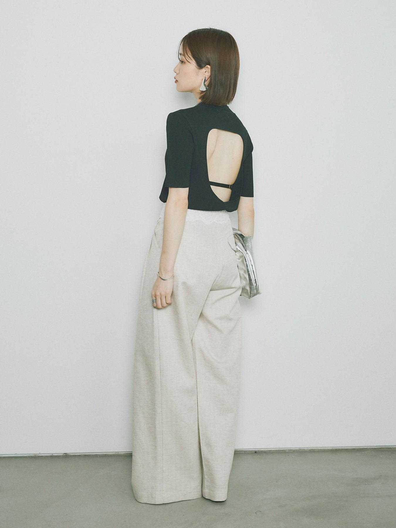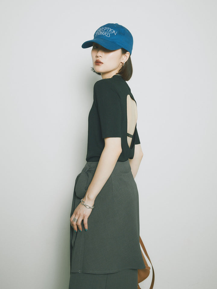 [予約]バックオープンレーヨンニットトップス/ブラック
