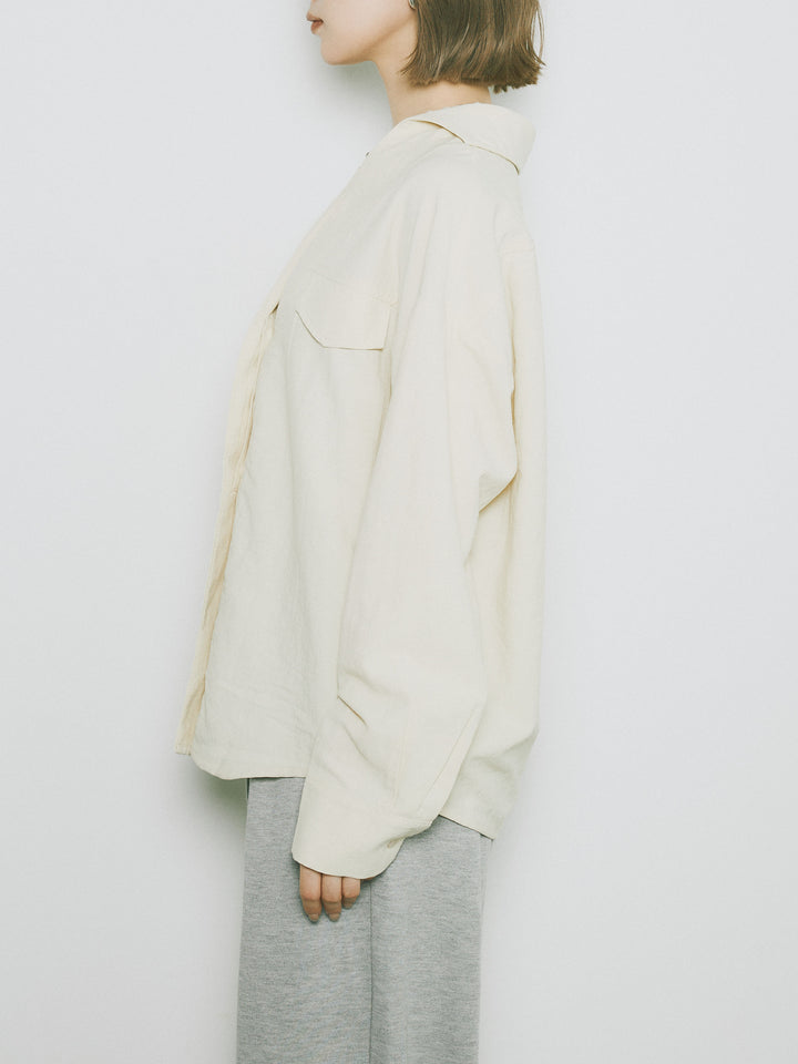 【シャツ】肩幅55cm バスト113cm アームホール42cm 袖丈52cm 袖口23cm 着丈66cm アイボリーのみやや透け感あり 伸縮性なし フロントポケットフェイク 【レーストップス】肩幅29cm バスト72cm アームホール37cm 着丈44cm 透け感あり 伸縮性あり
