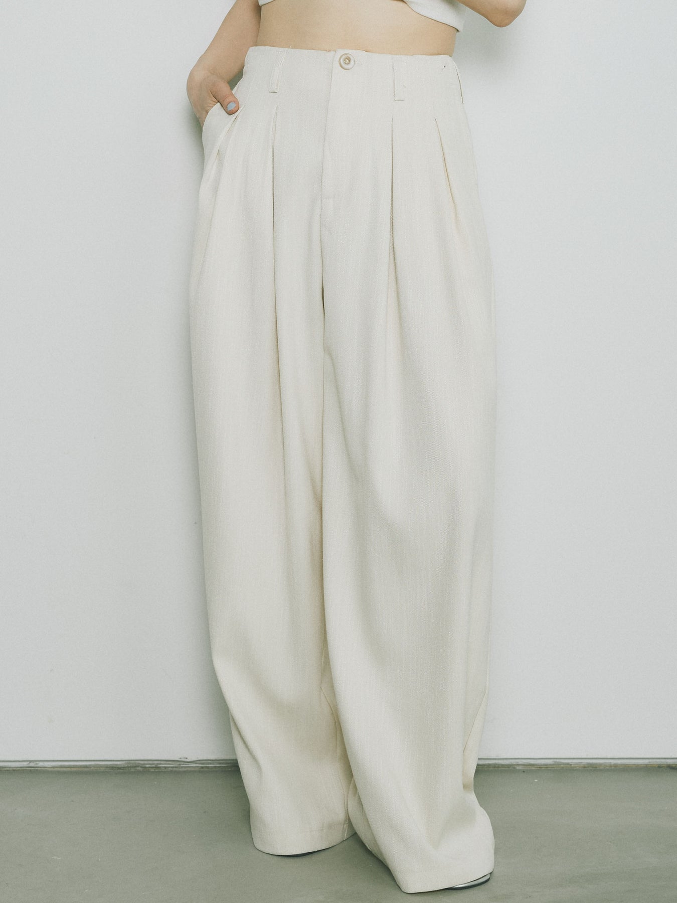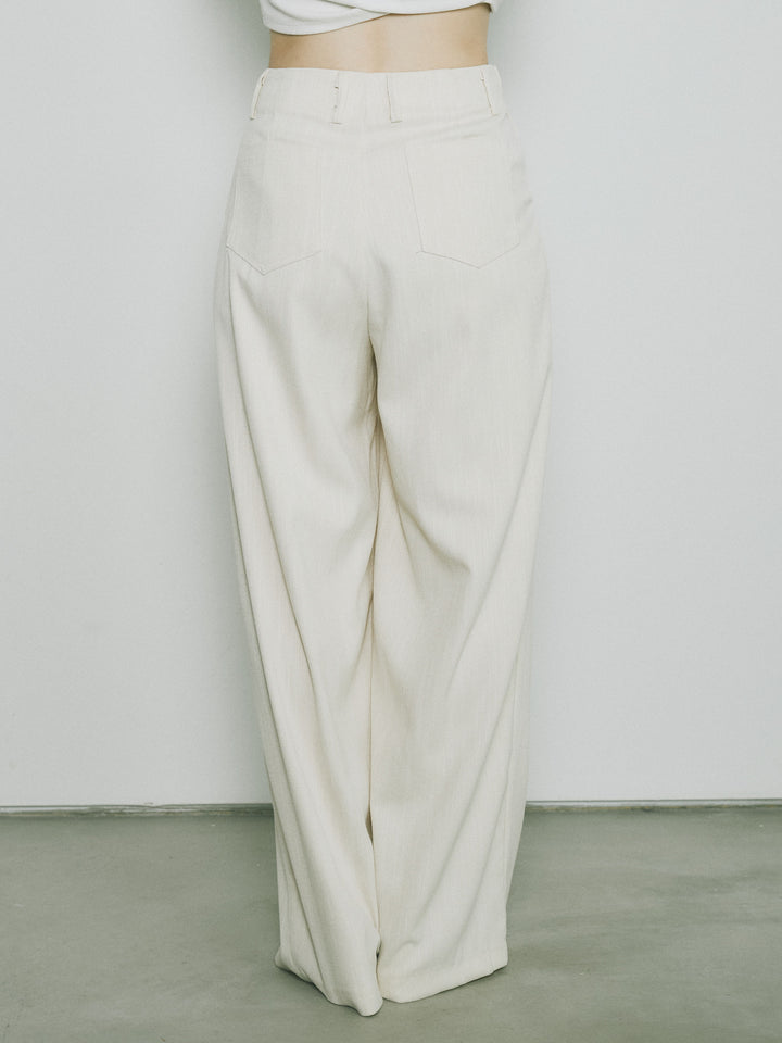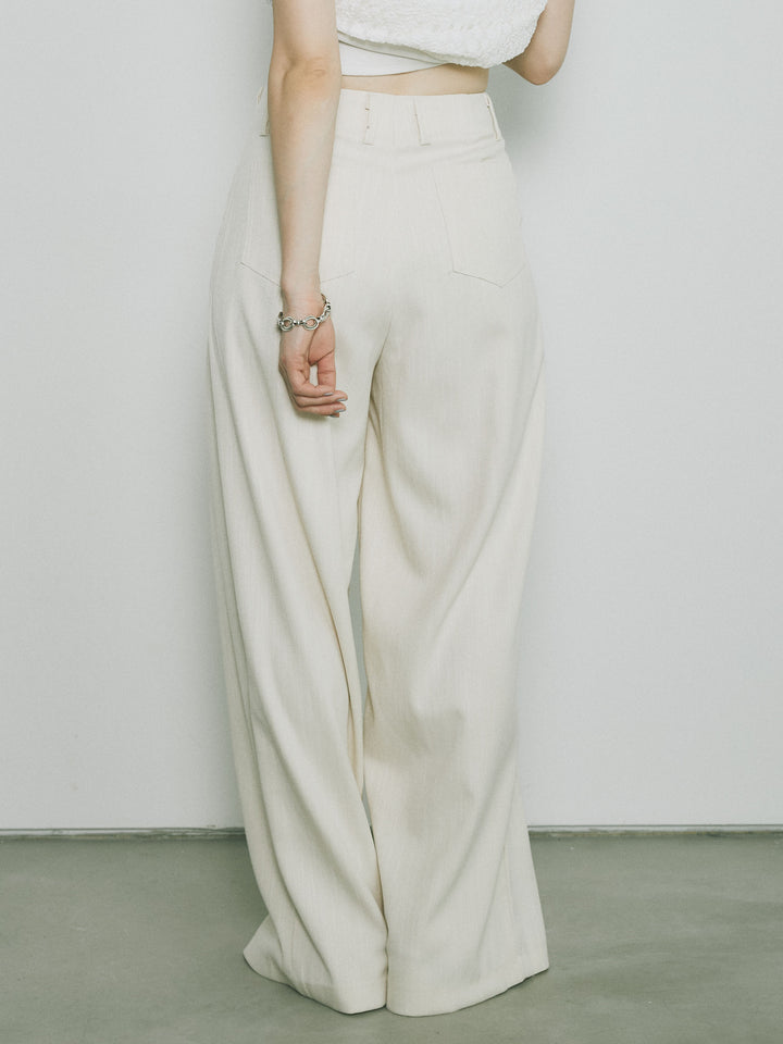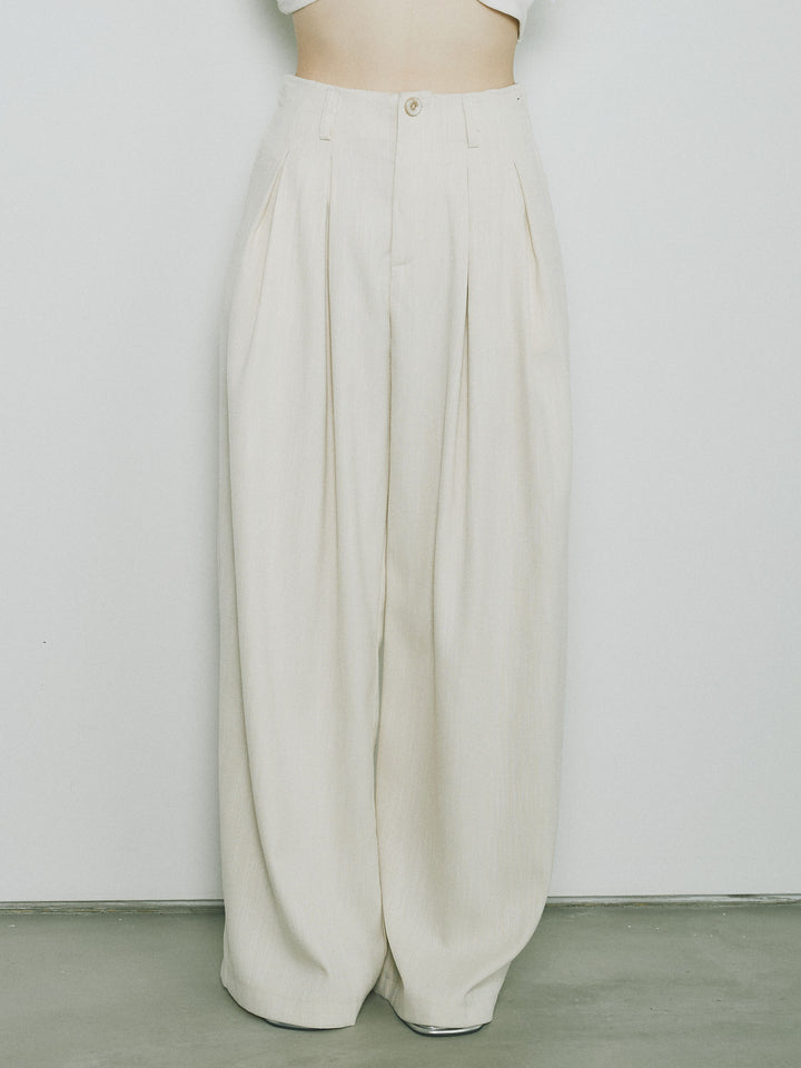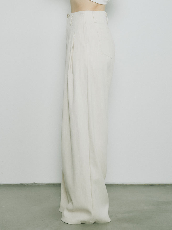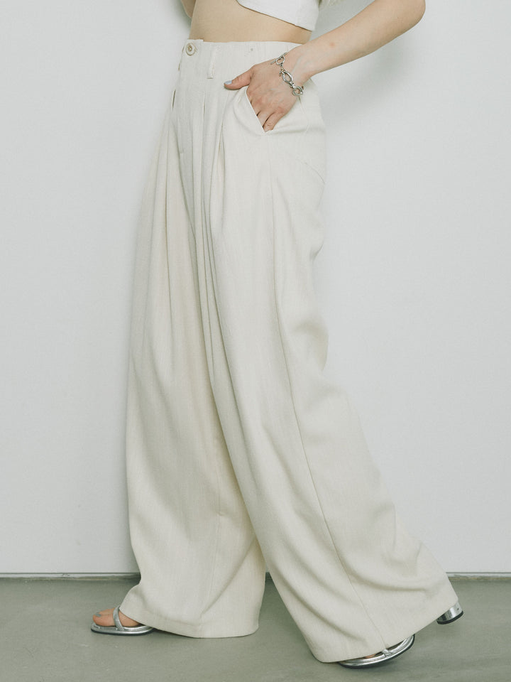 [予約]リネンタッチダブルタックワイドパンツ/アイボリー