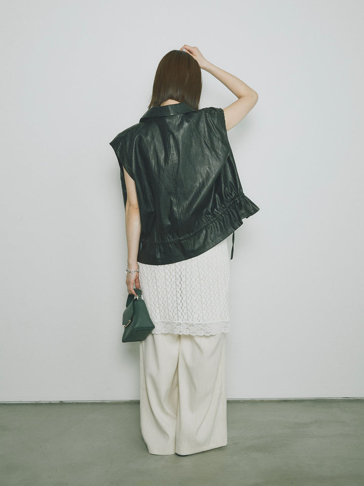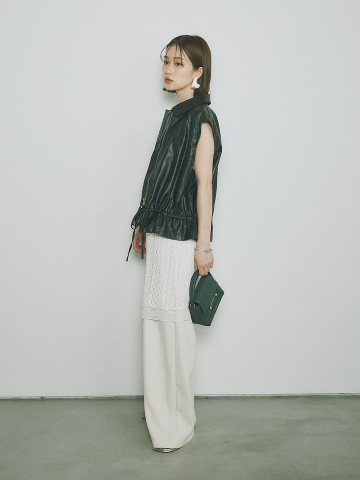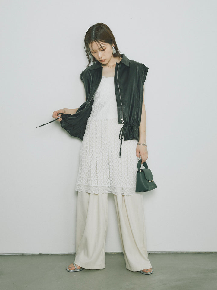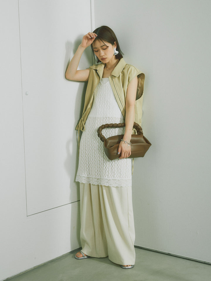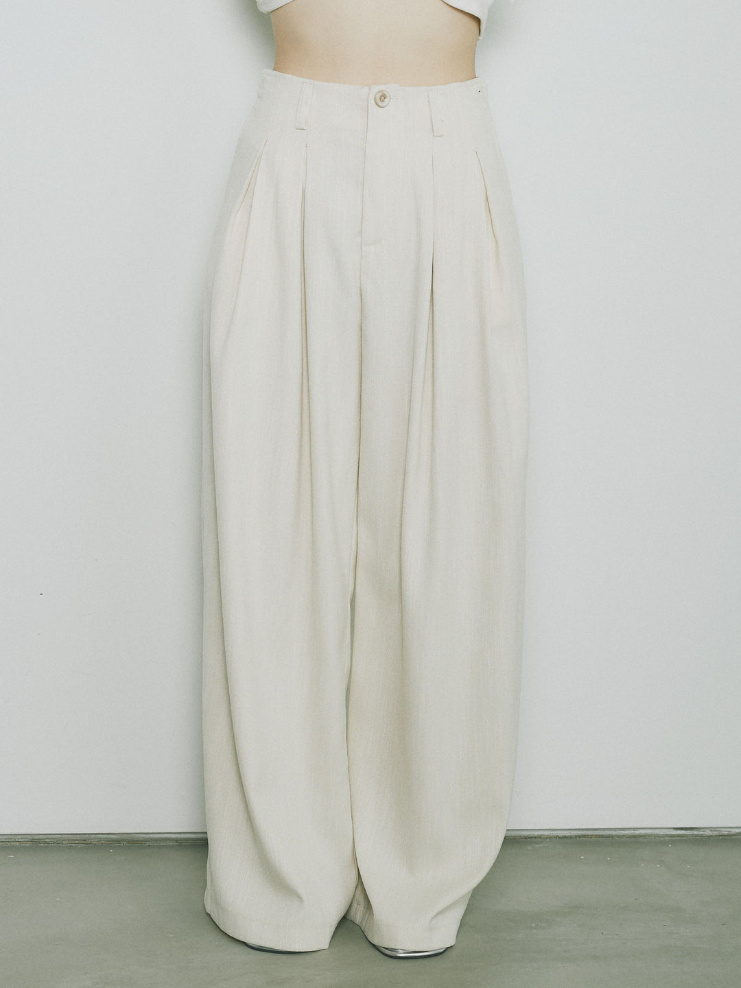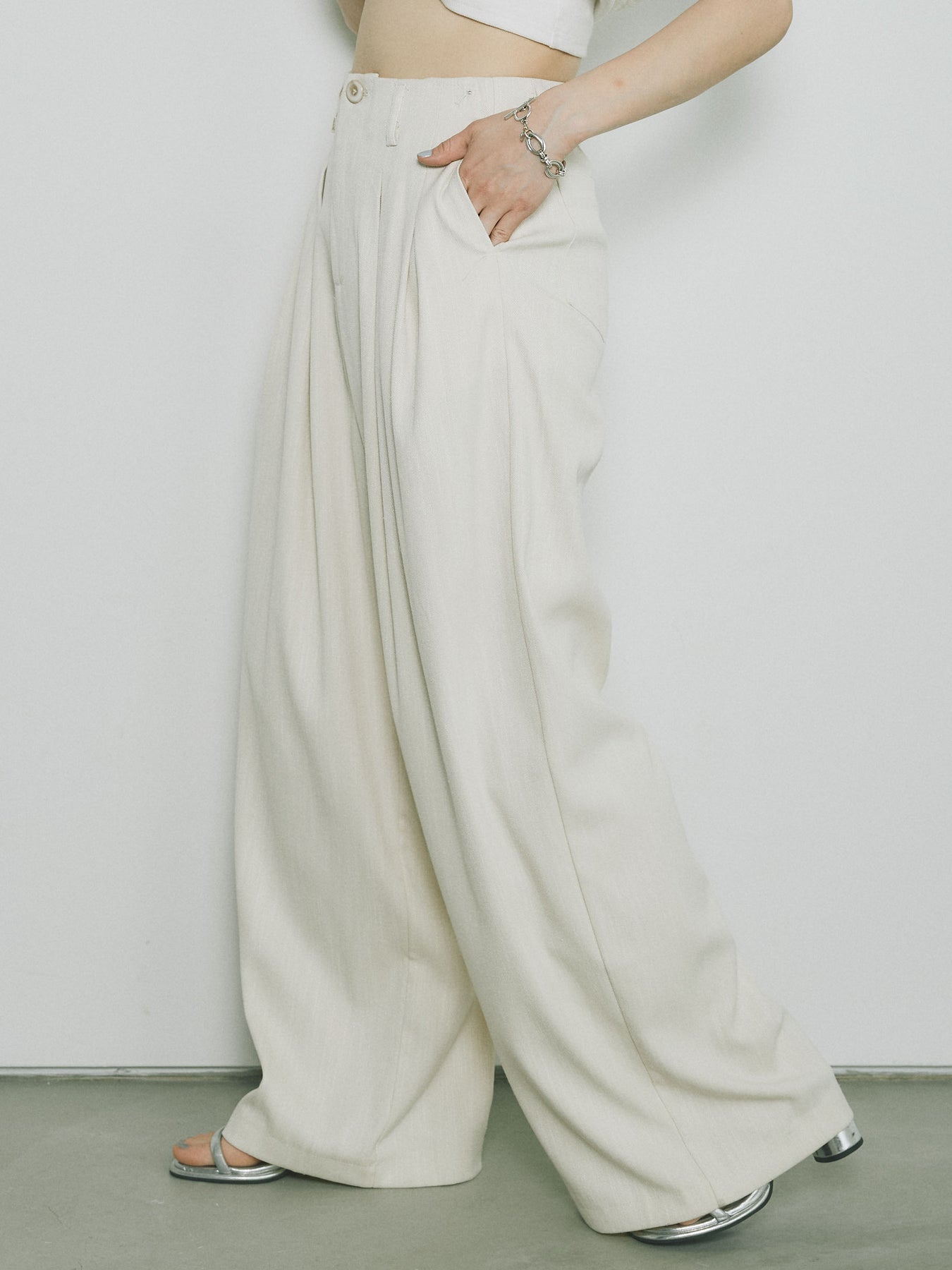 [予約]リネンタッチダブルタックワイドパンツ/アイボリー