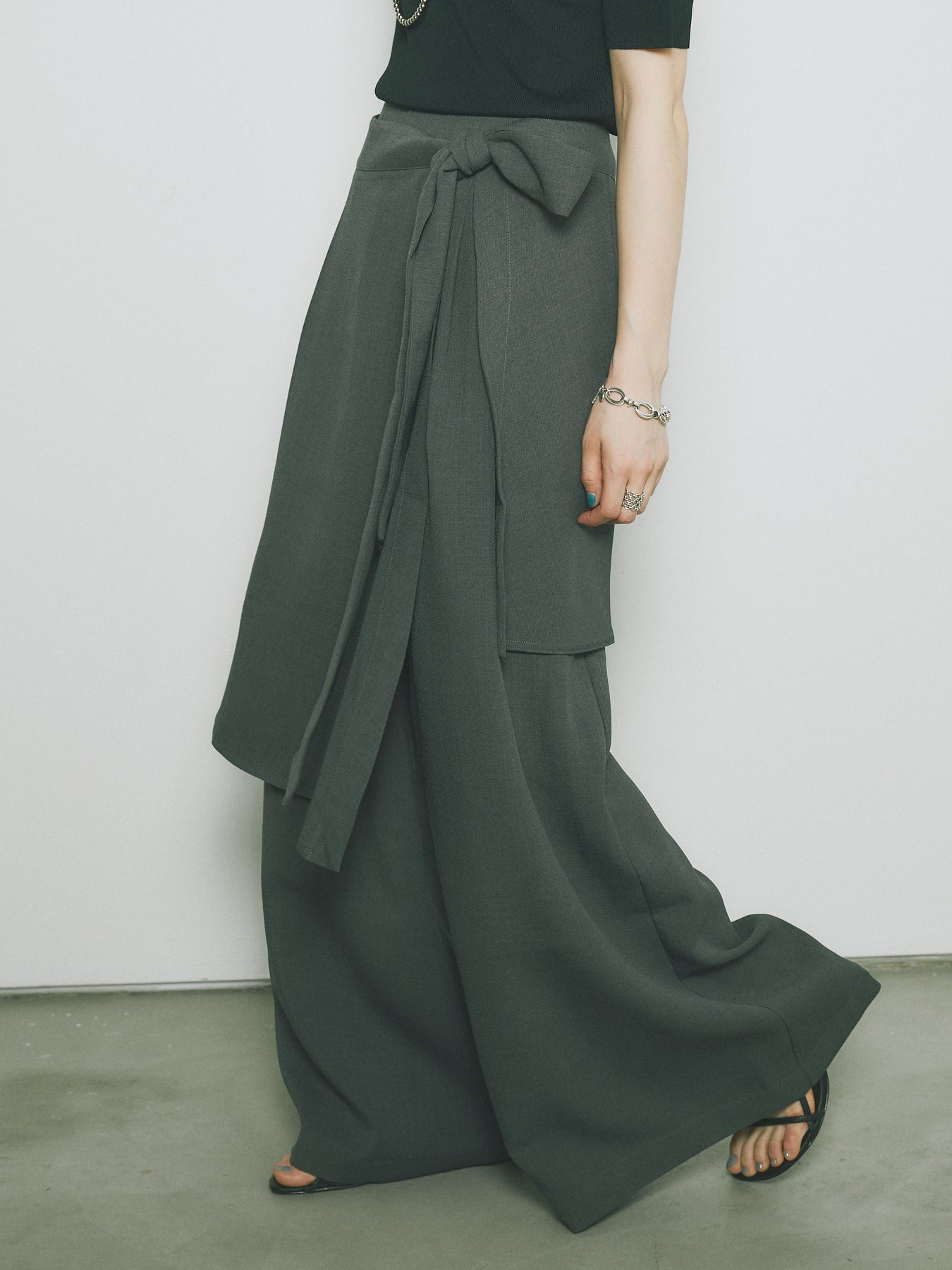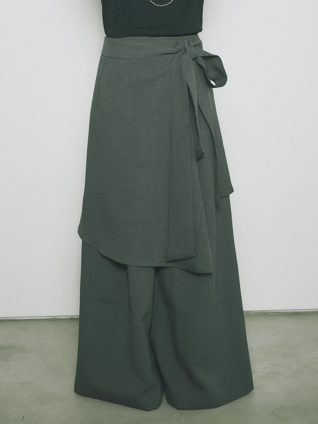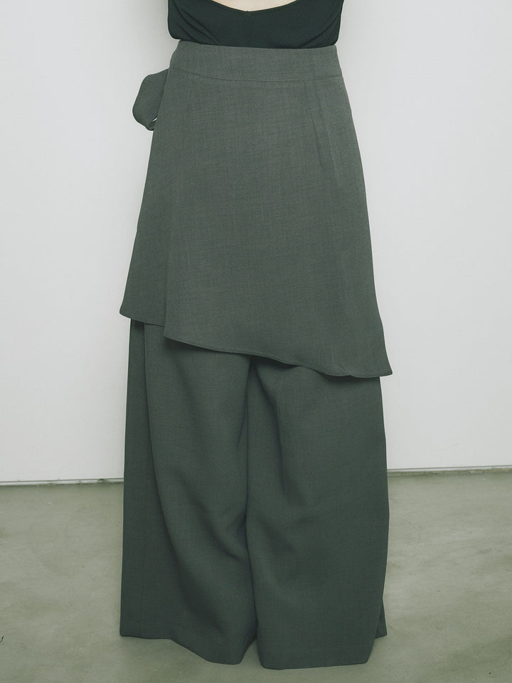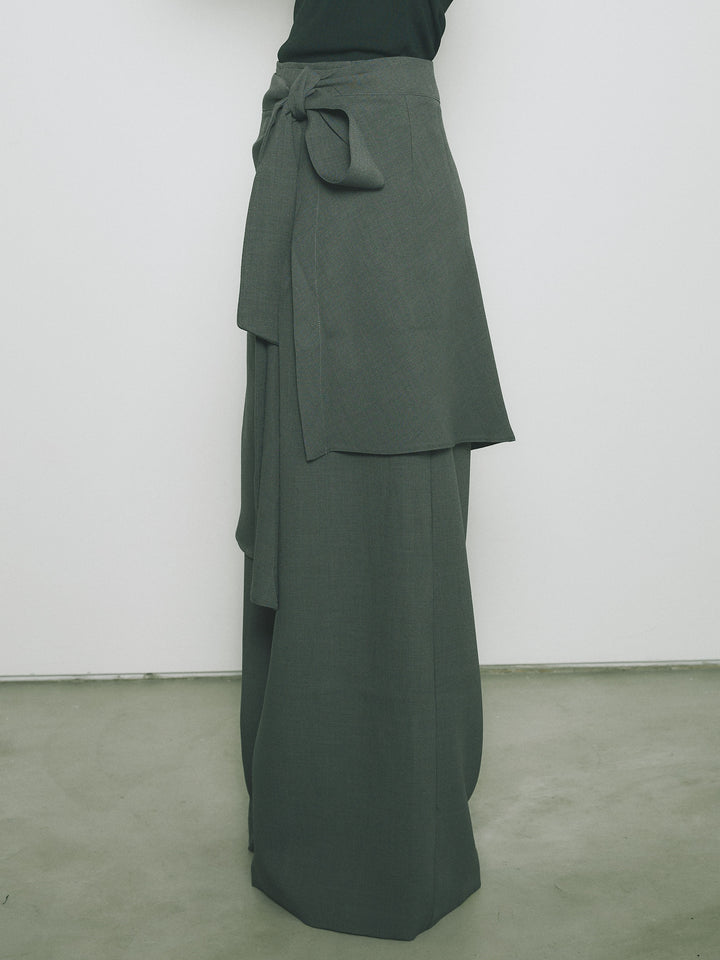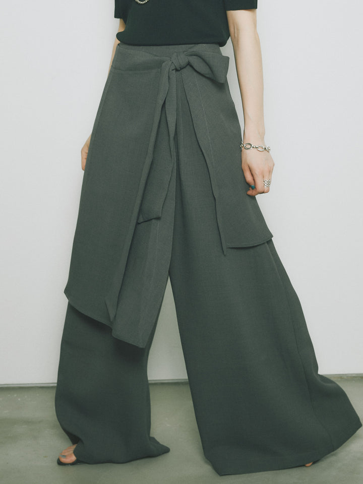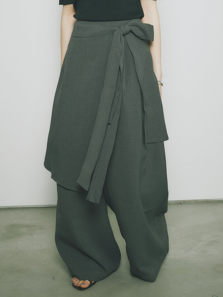 [予約]リネンタッチラップ巻きワイドパンツ/グレー