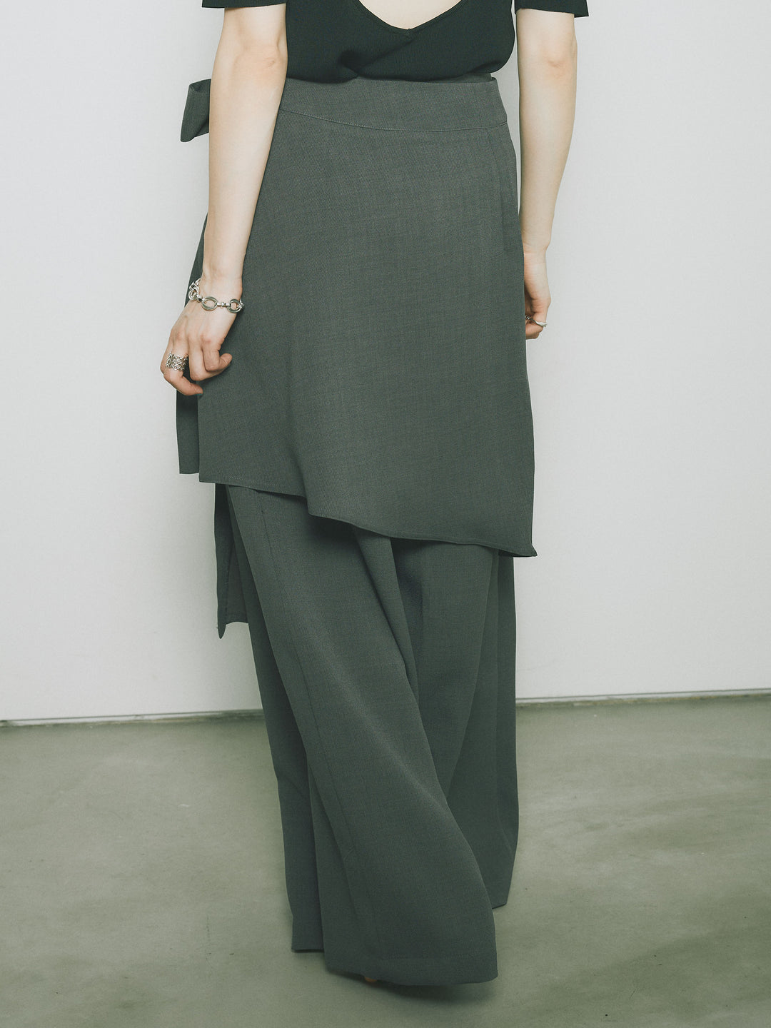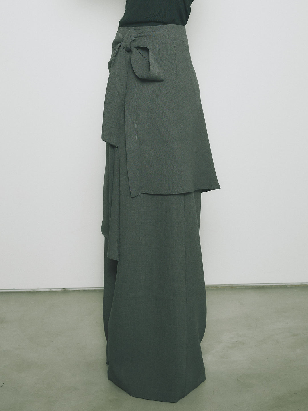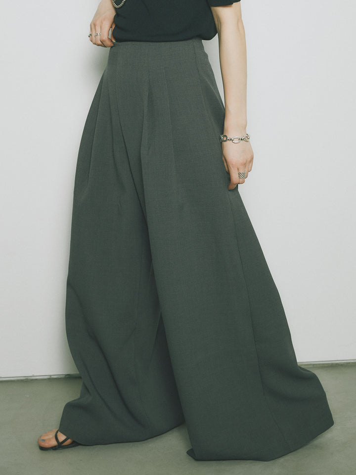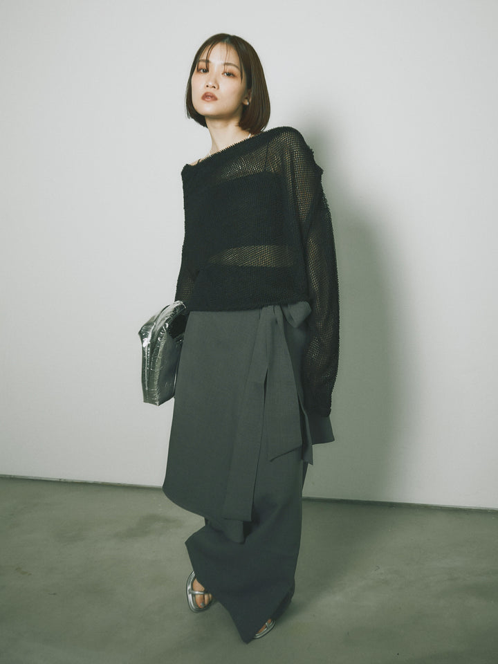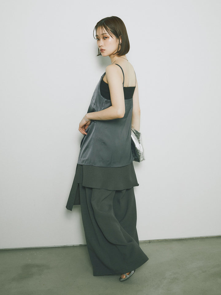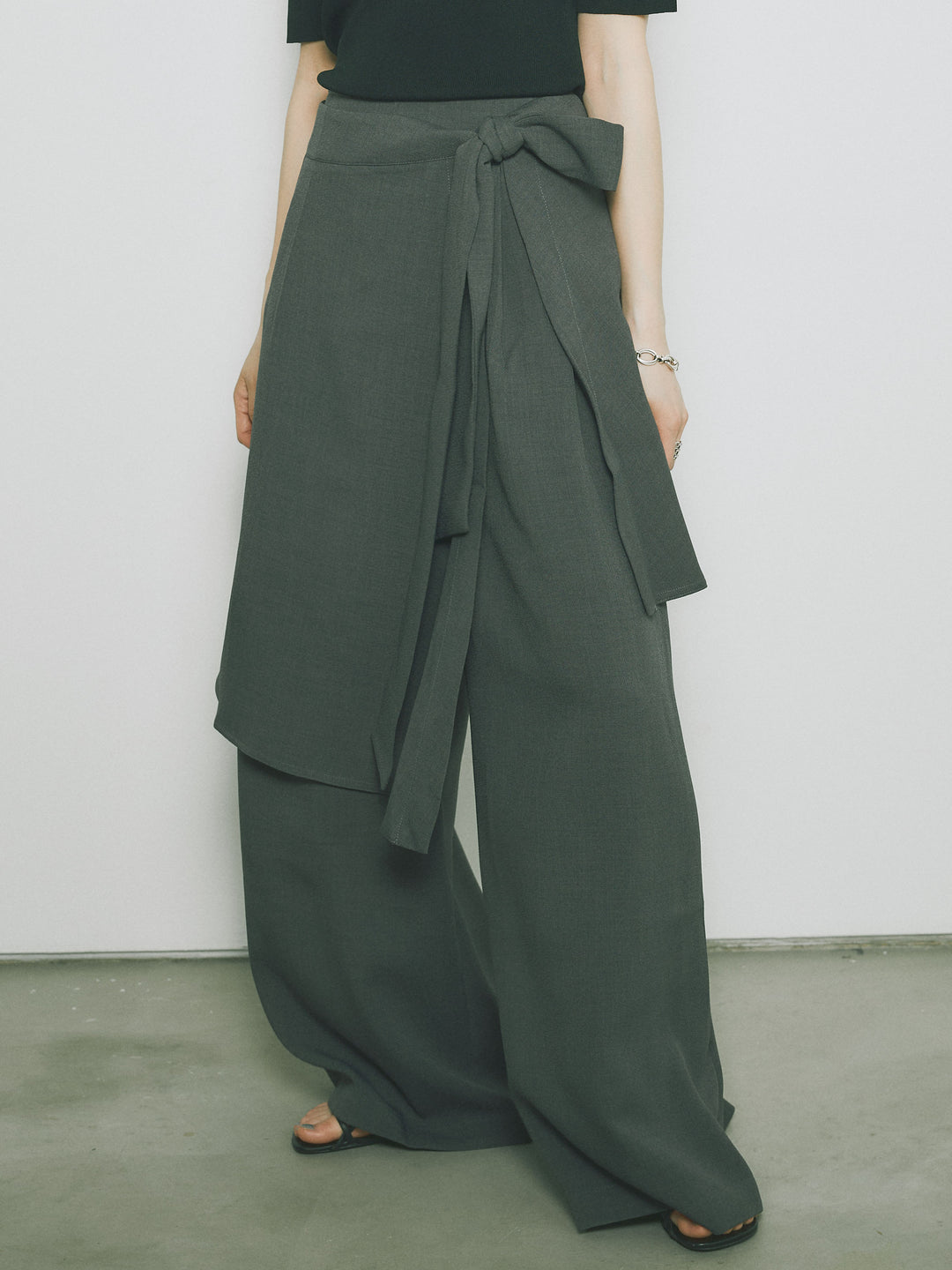[予約]リネンタッチラップ巻きワイドパンツ/グレー