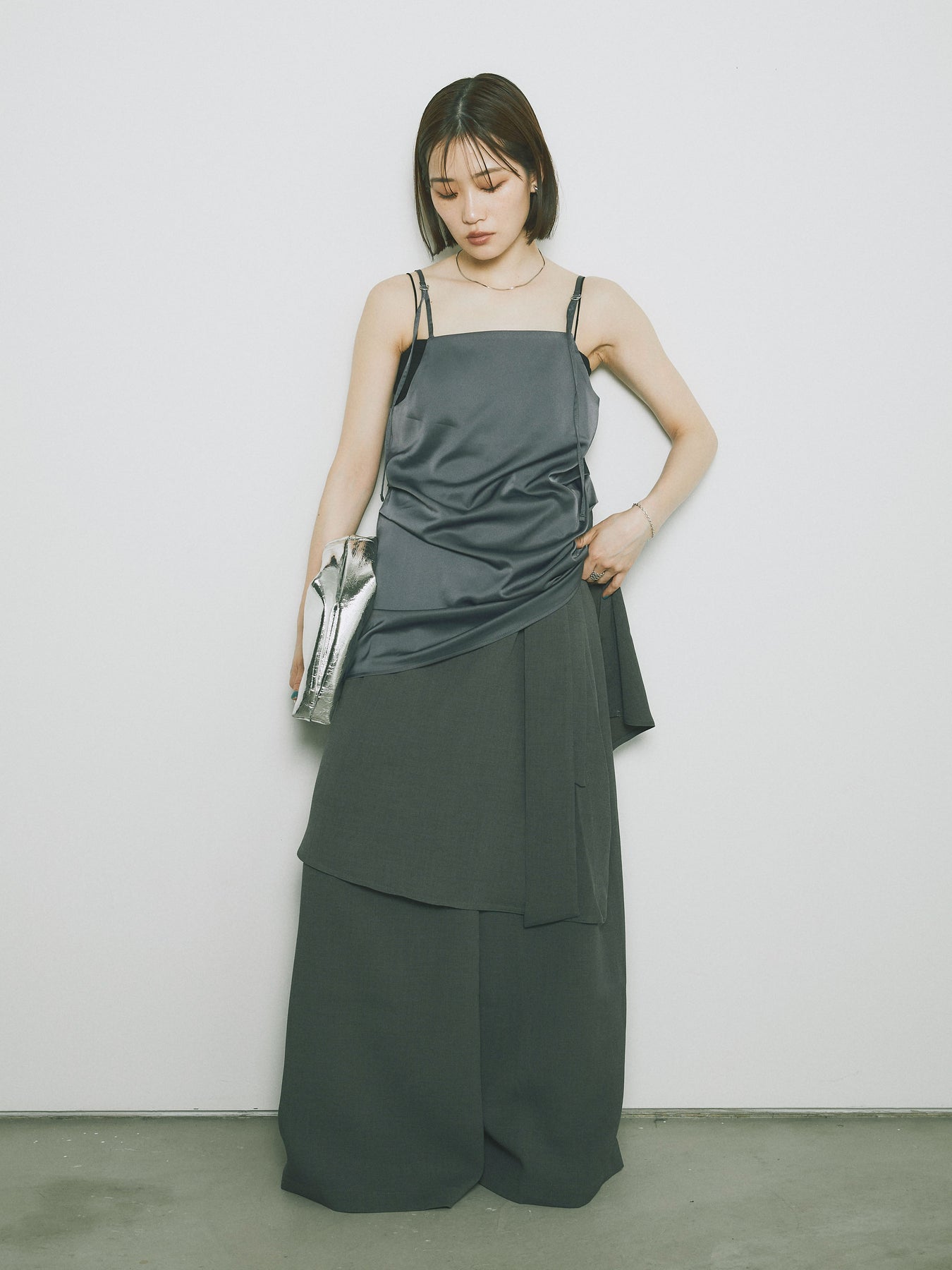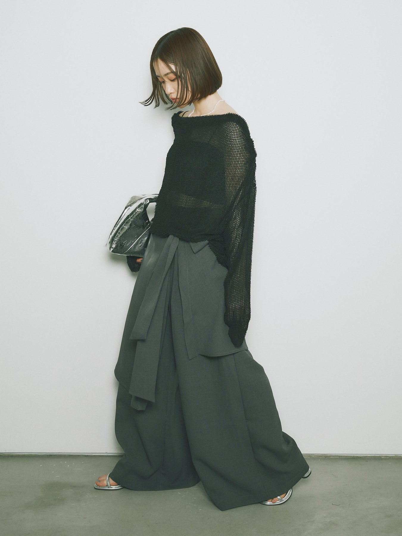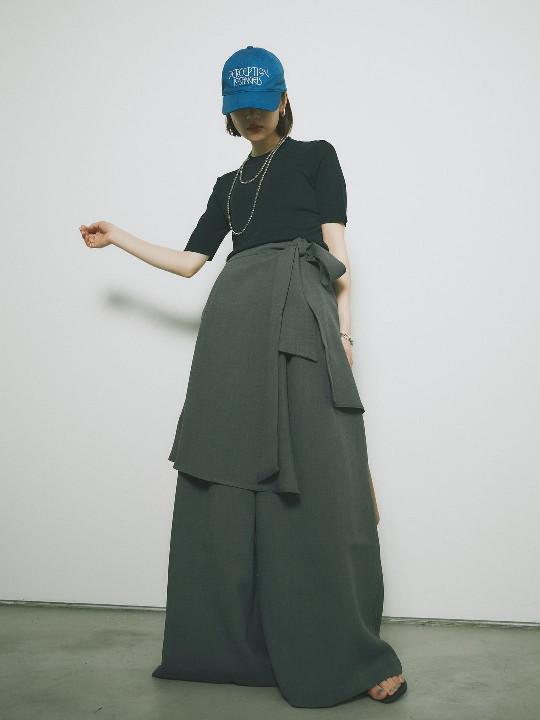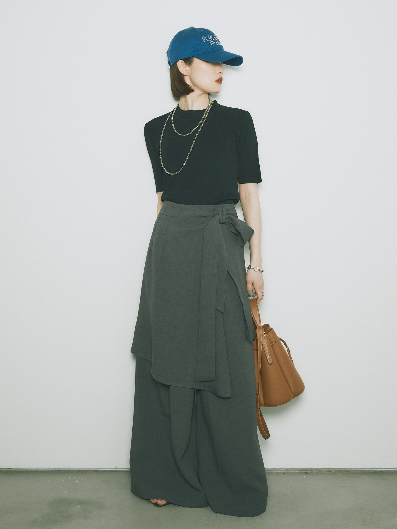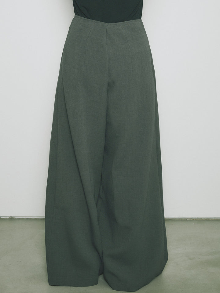 [予約]リネンタッチラップ巻きワイドパンツ/グレー