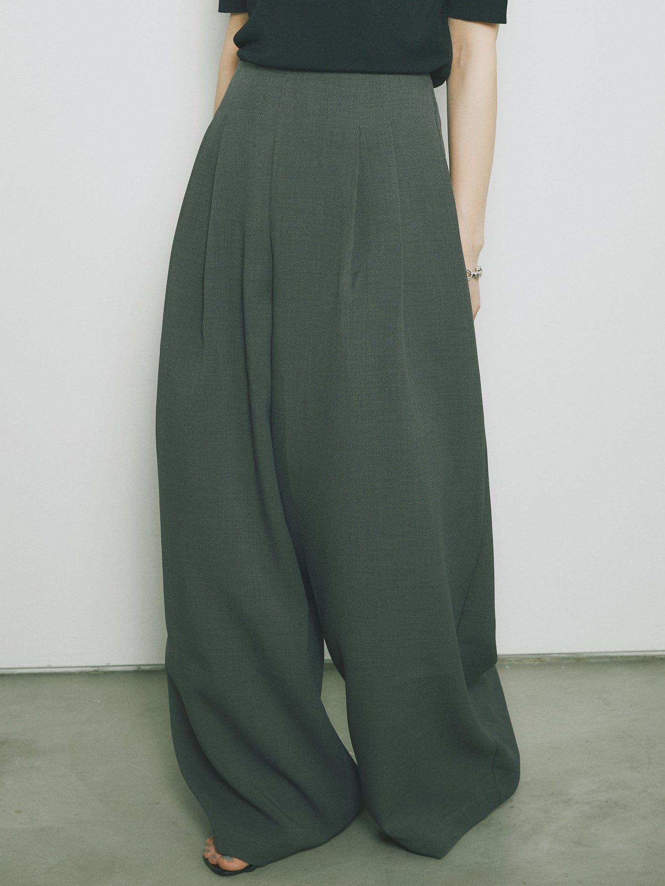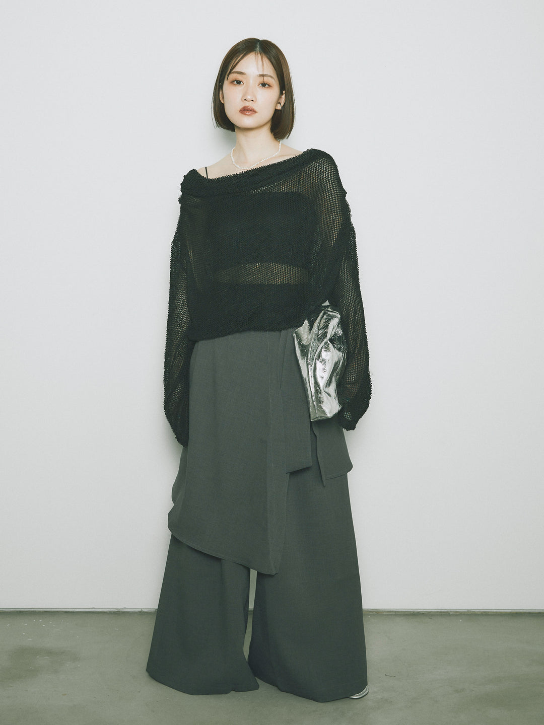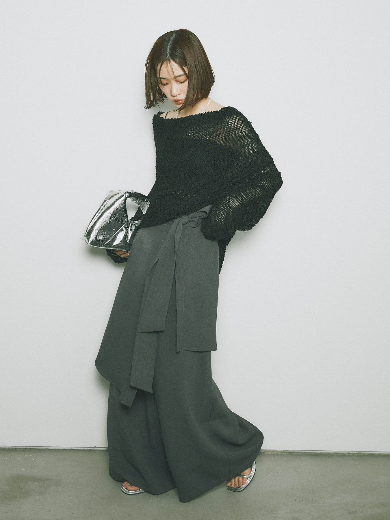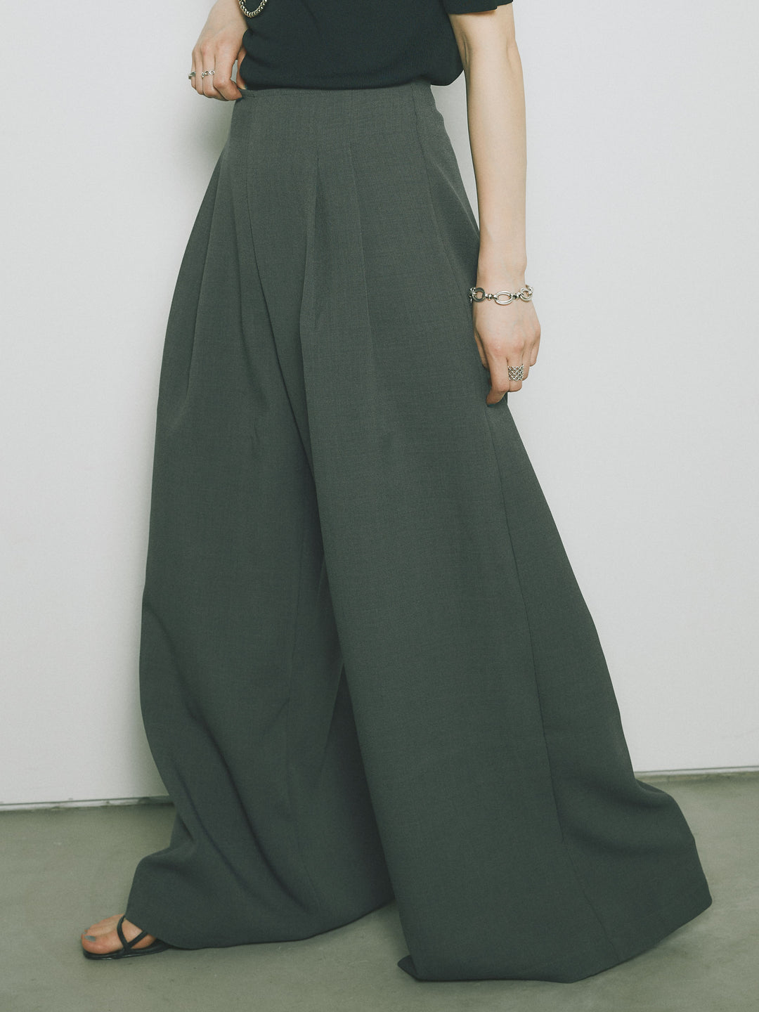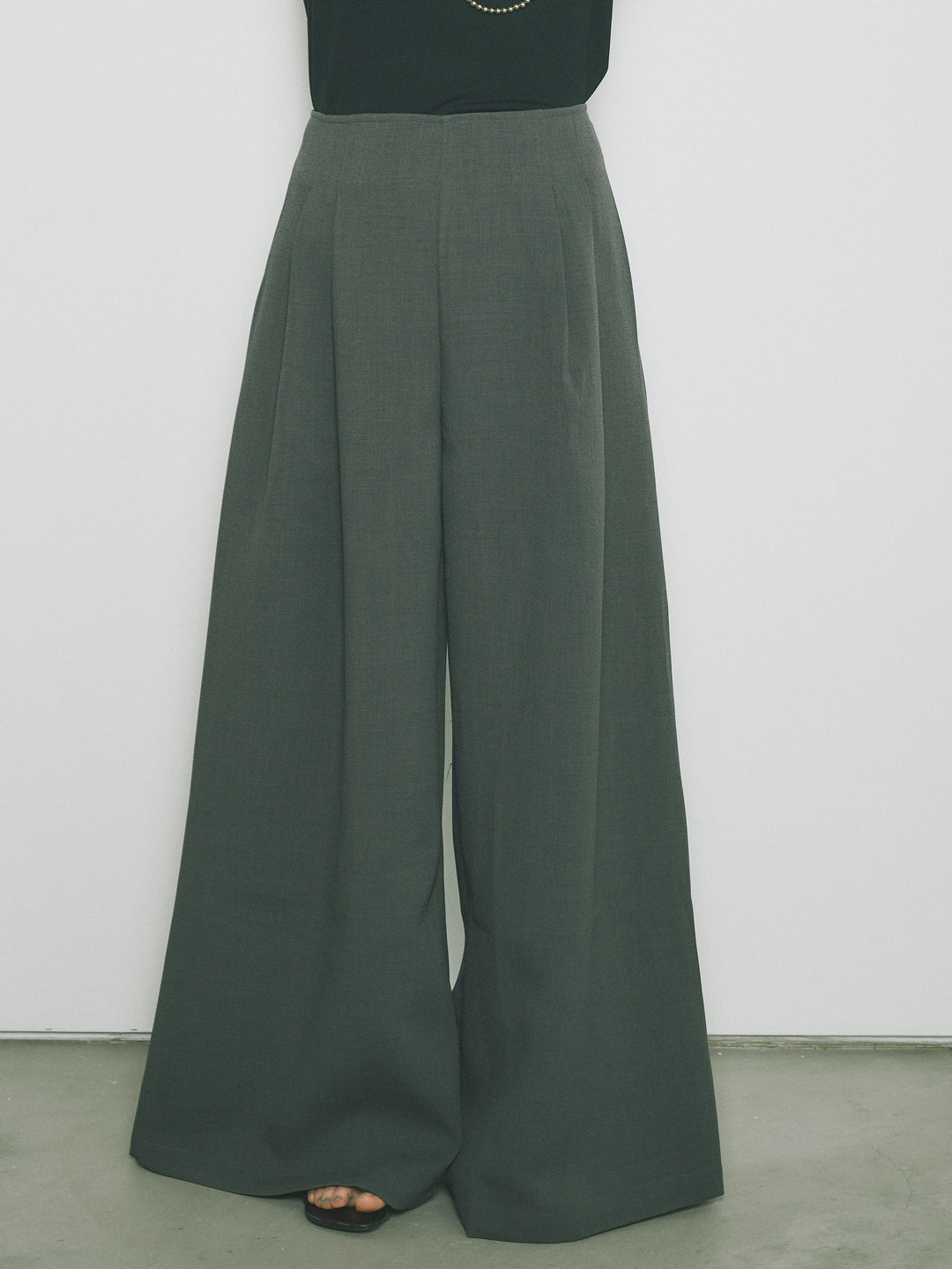 [予約]リネンタッチラップ巻きワイドパンツ/グレー