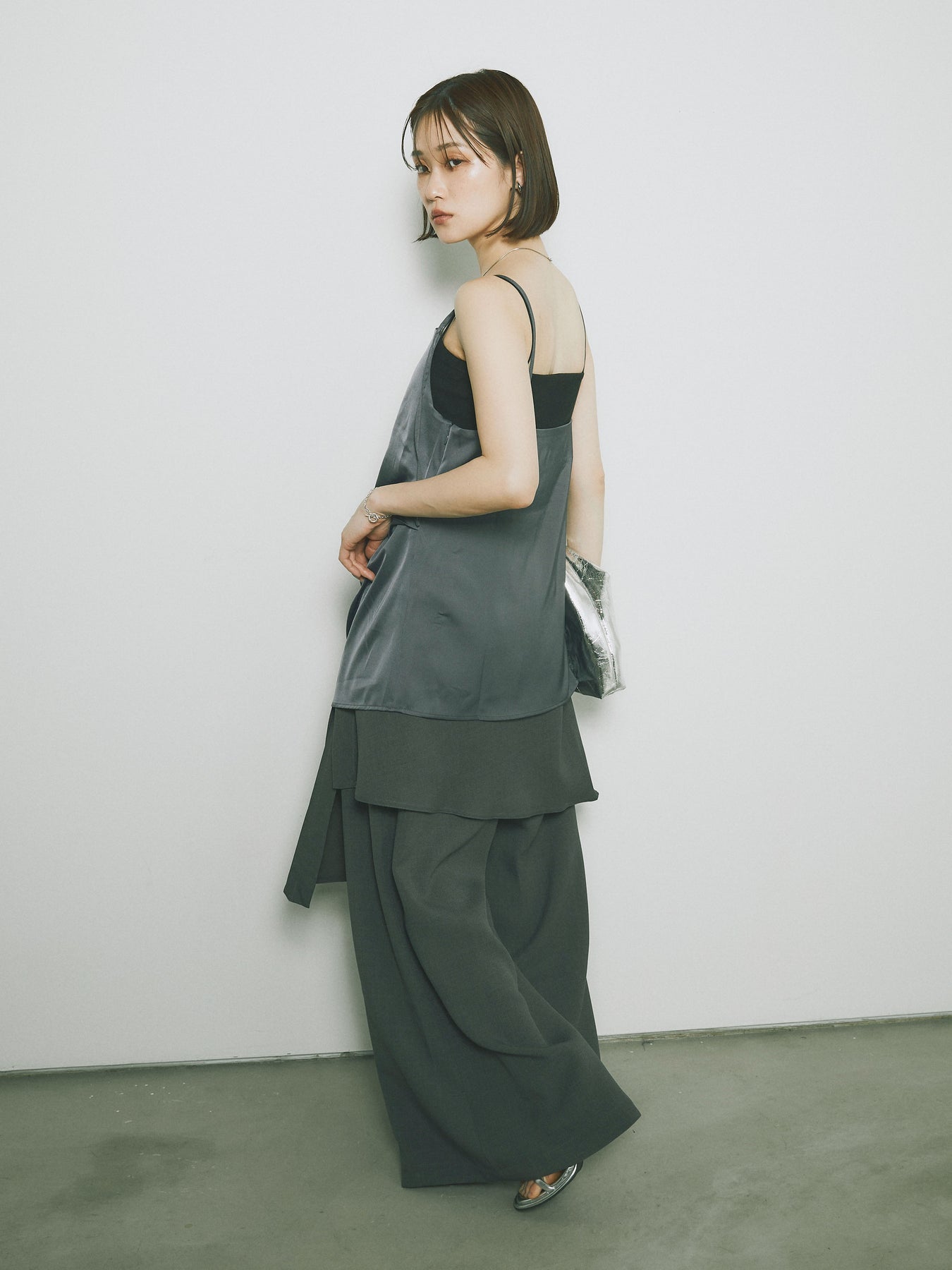 リネン風の軽やかな素材を使用した、ラップ巻きデザインのワイドパンツ。ウエスト部分のデザインがアクセントとなり、シンプルながらも洗練された印象を与えます。ゆったりとしたシルエットがリラックス感を演出し、快適な着心地を提供します。シンプルでありながら、着こなしに華やかさをプラスする一枚です。 ※ボトムス、キャミソール(インナー)以外の商品は一律でインナーは付属していません。