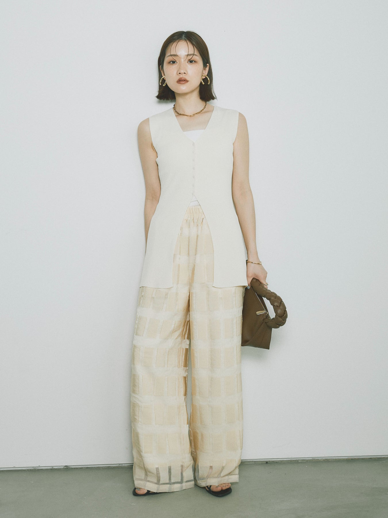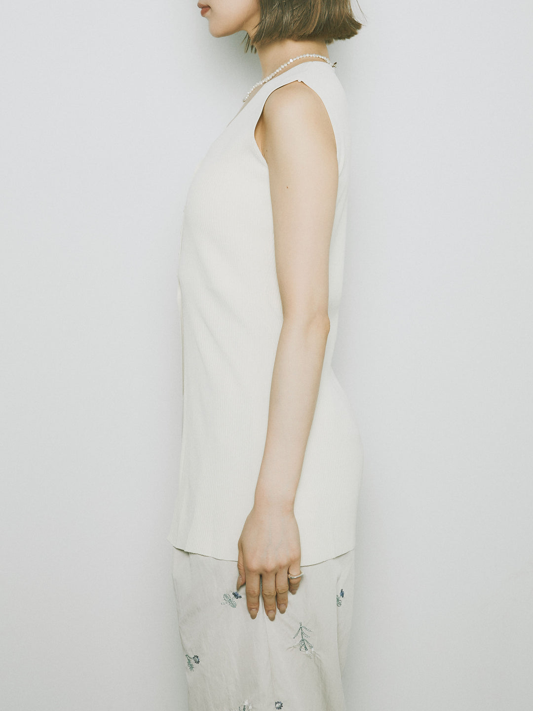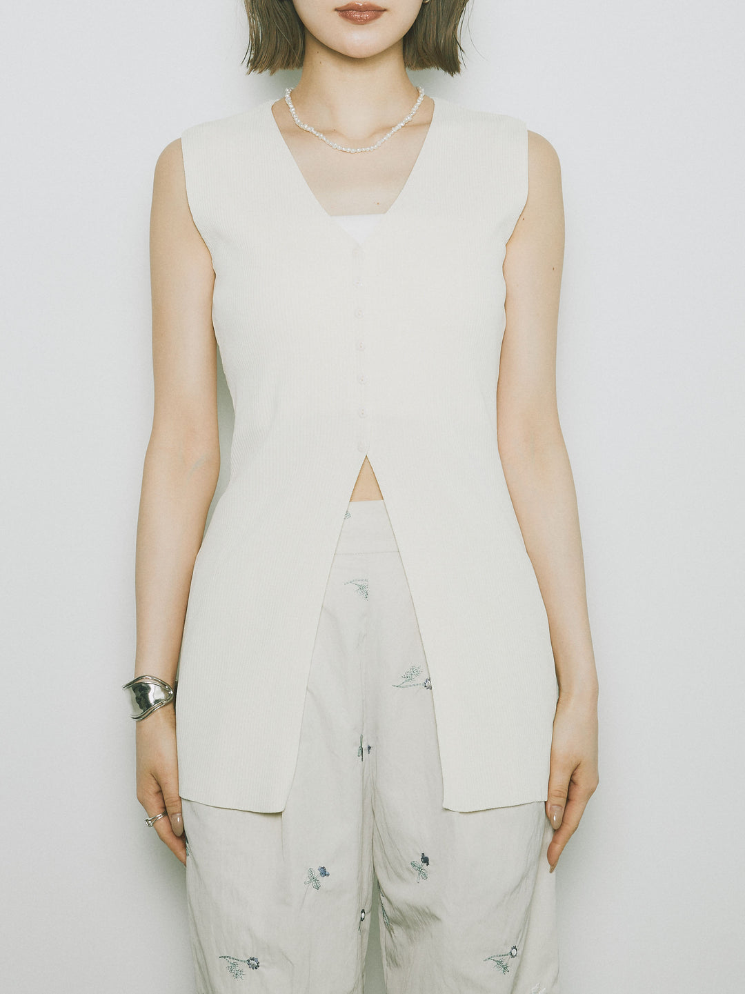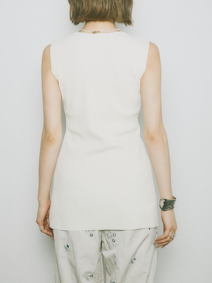 [予約]フロントスリットリブシェイプニットトップス/アイボリー
