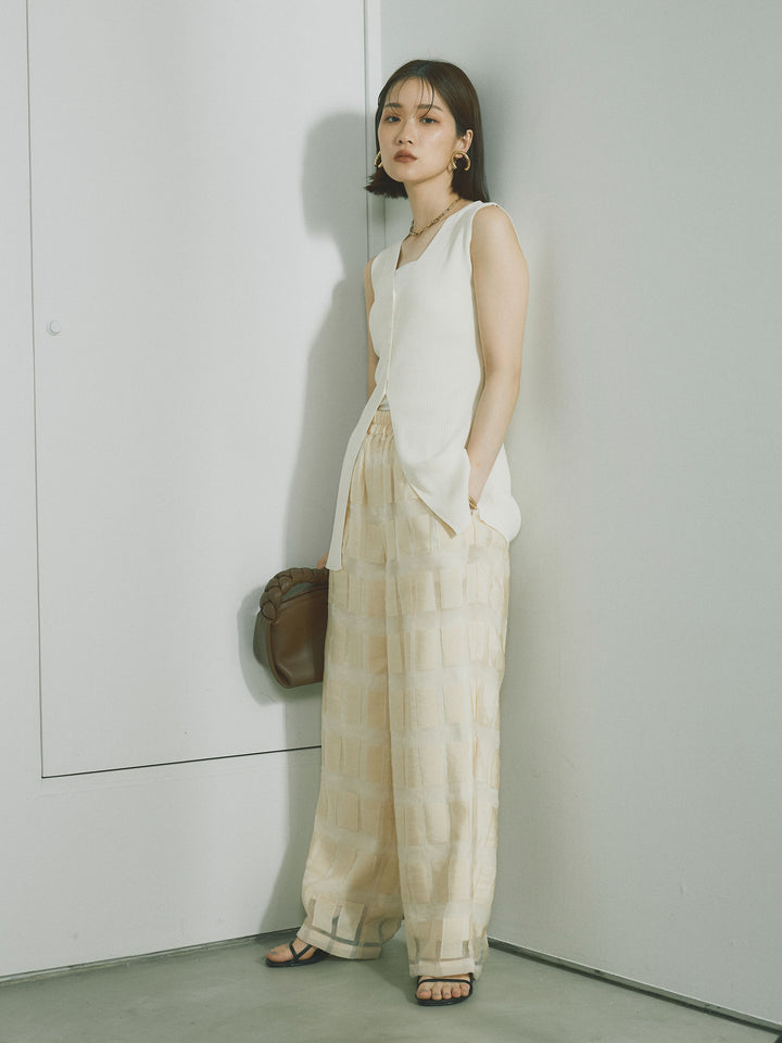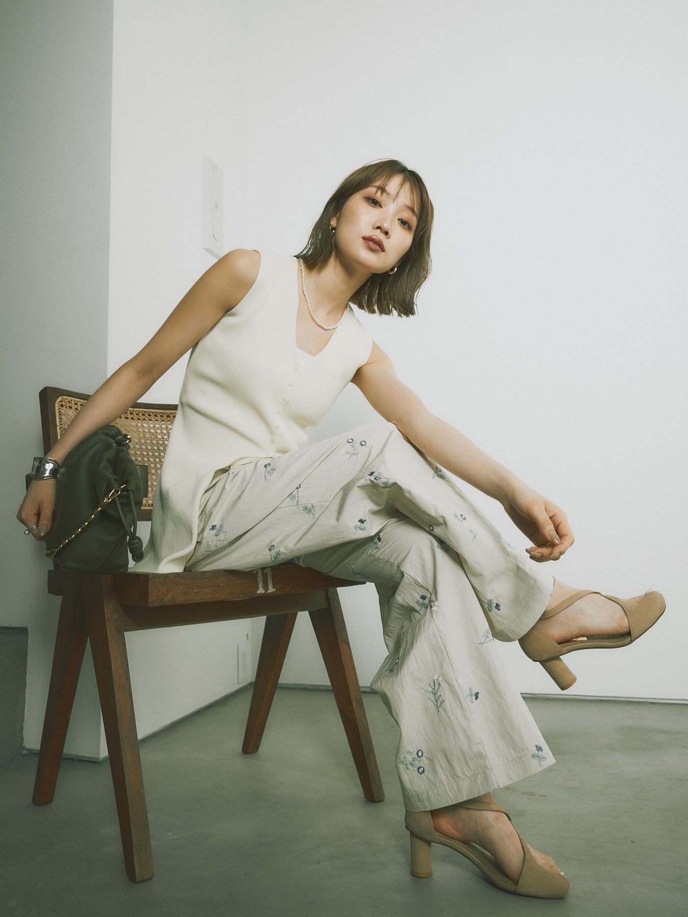 リブ編みの伸縮性のある素材を使用したフロントスリットデザインのニットトップス。シンプルながらも女性らしいシェイプラインを作り出し、上品な印象を与えます。Vネックデザインとフロントボタンで、カジュアルからエレガントまで幅広いスタイルに対応可能。シンプルながら存在感のある一枚です。 ※ボトムス、キャミソール(インナー)以外の商品は一律でインナーは付属していません。