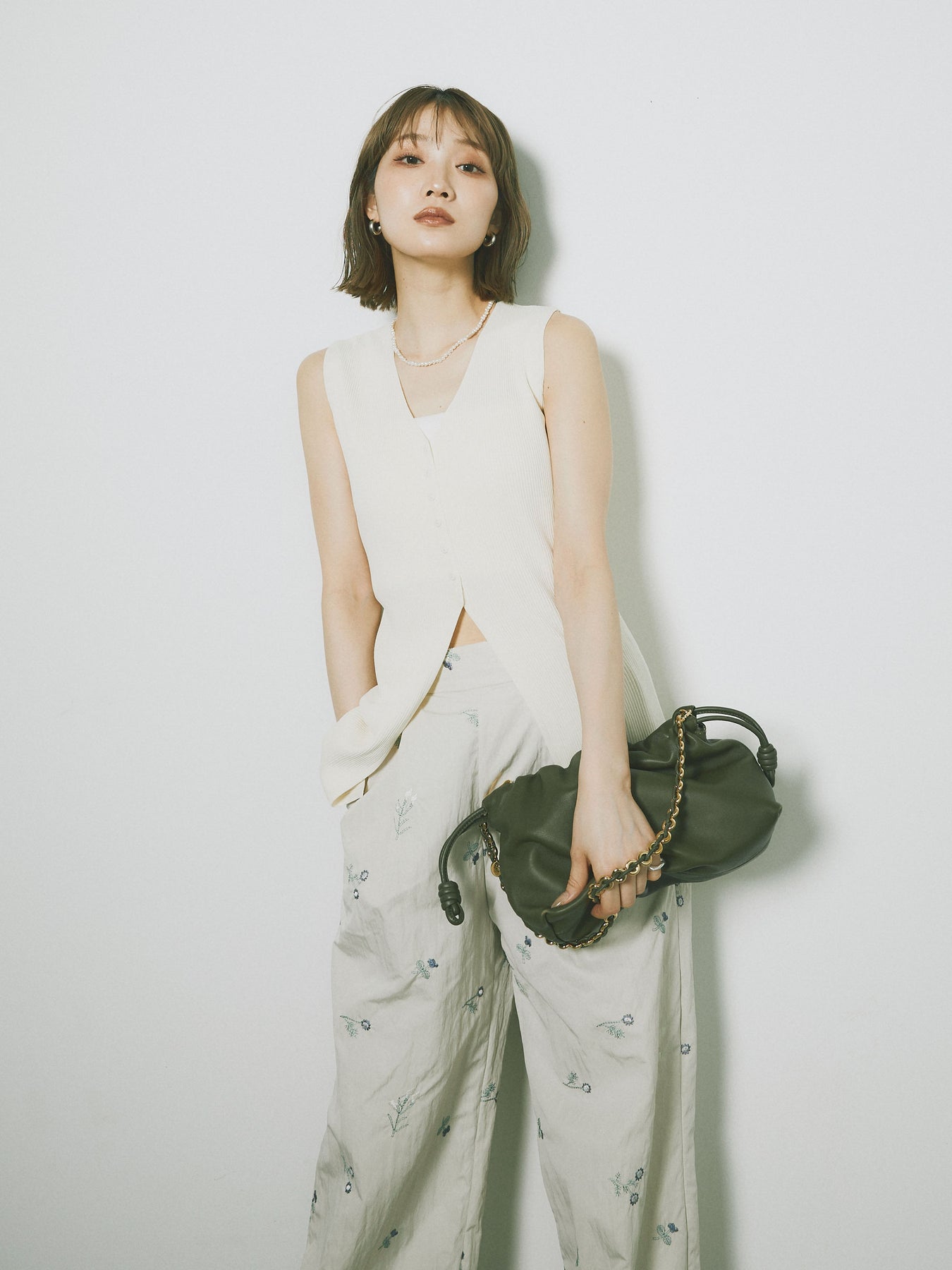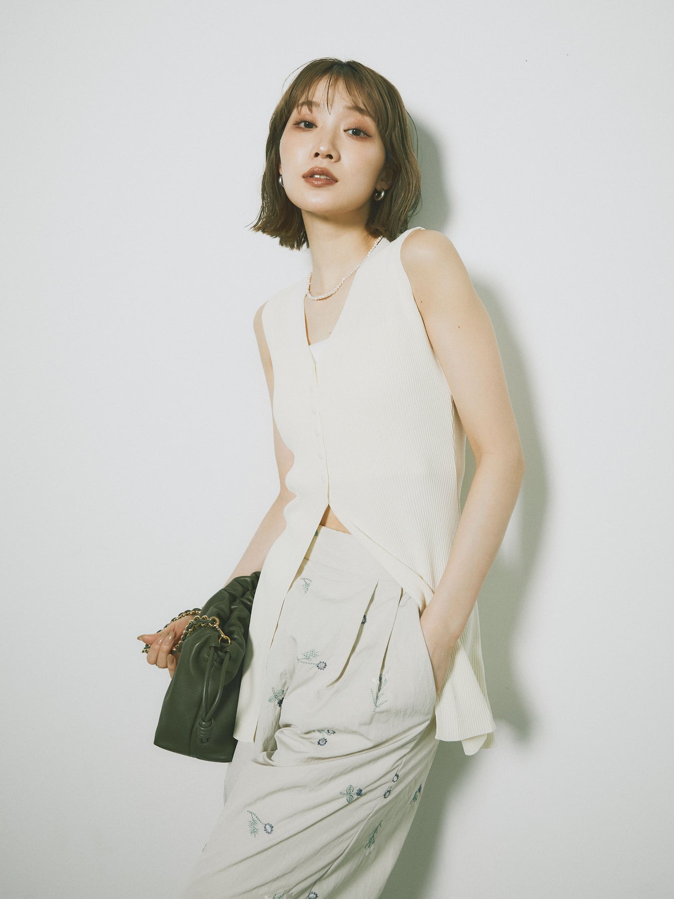 [予約]フロントスリットリブシェイプニットトップスに関連する商品を探す↓