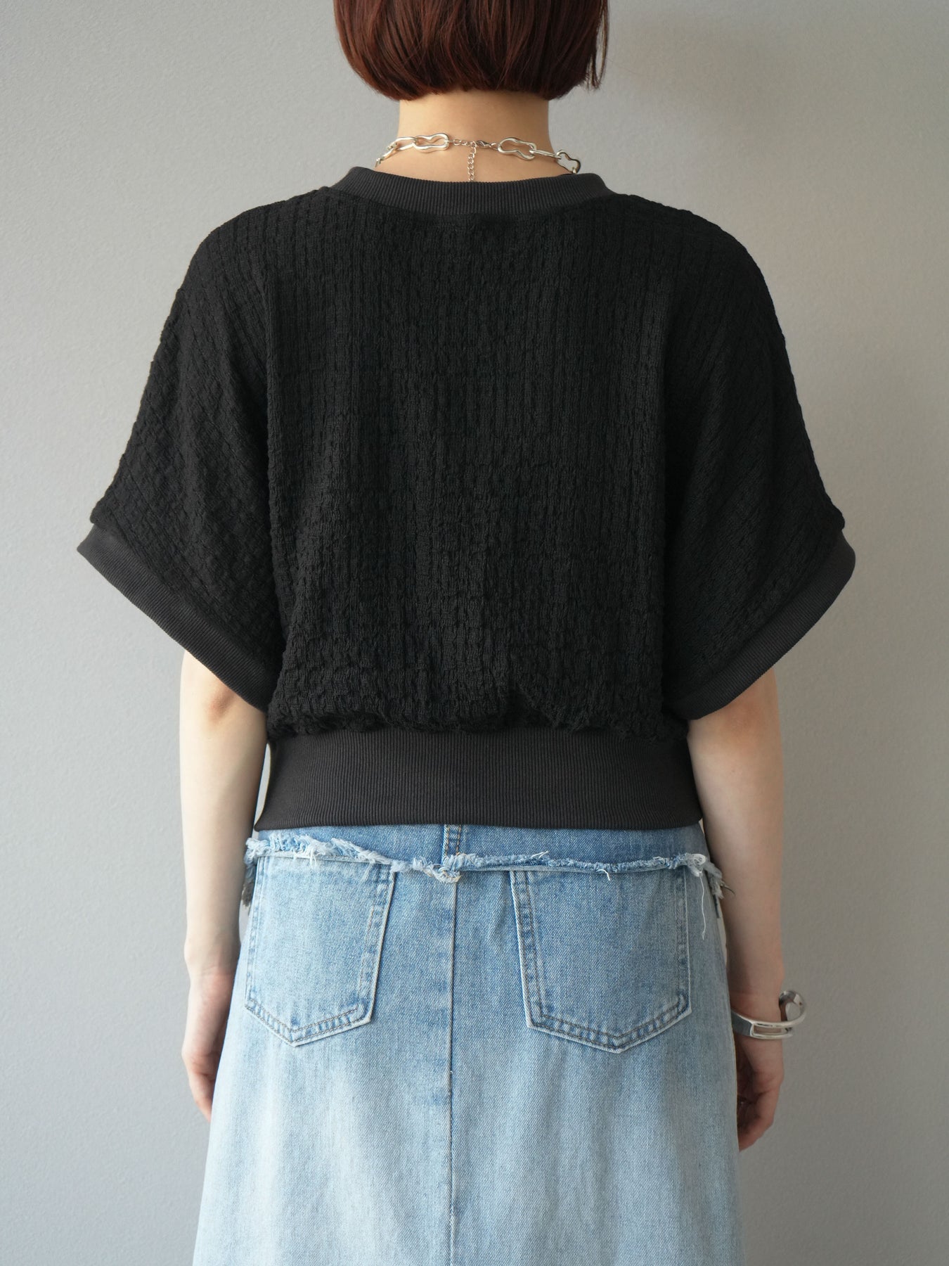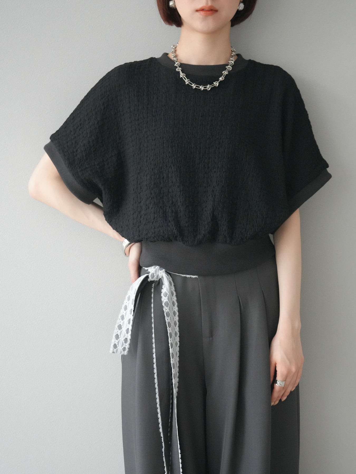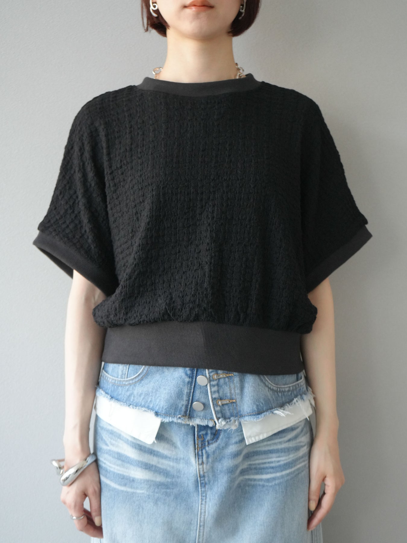 [予約]バイカラー膨れジャガードカットプルオーバー/ブラック