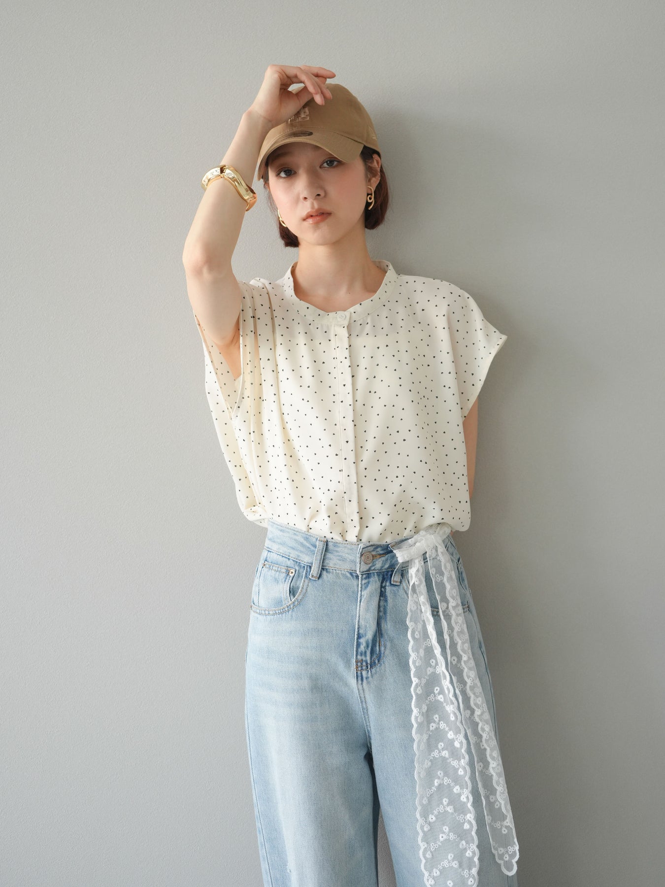 [予約]ハートドットフレンチスリーブブラウス/アイボリー