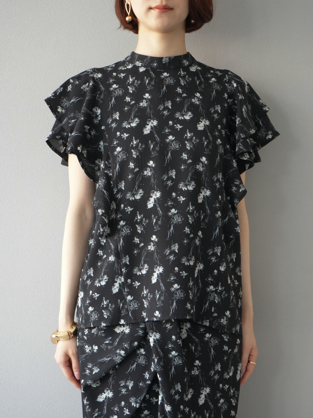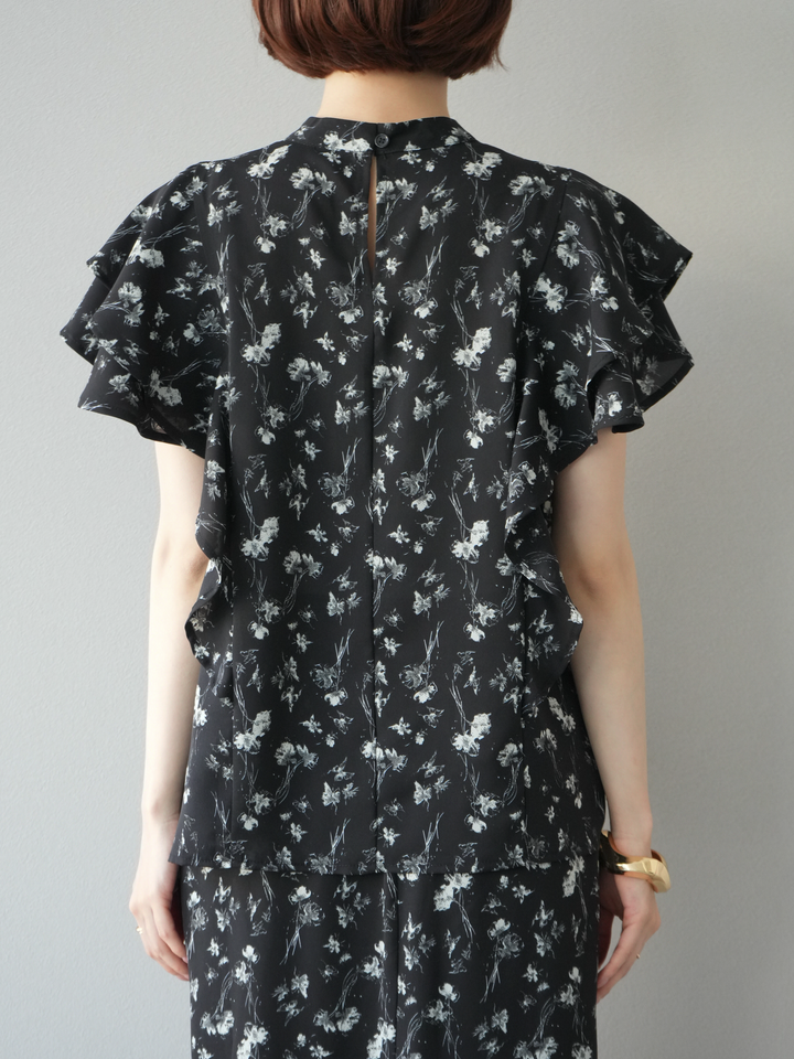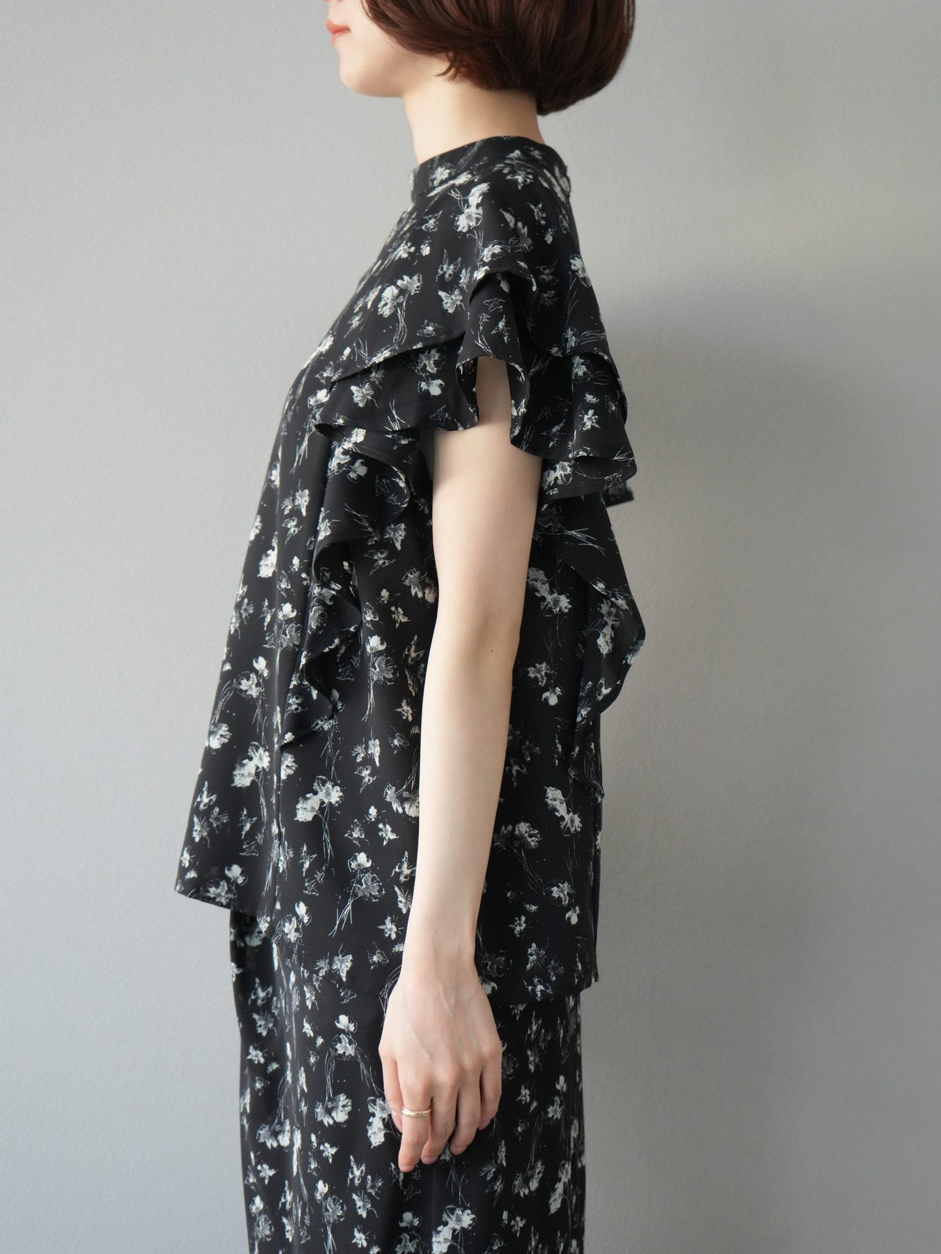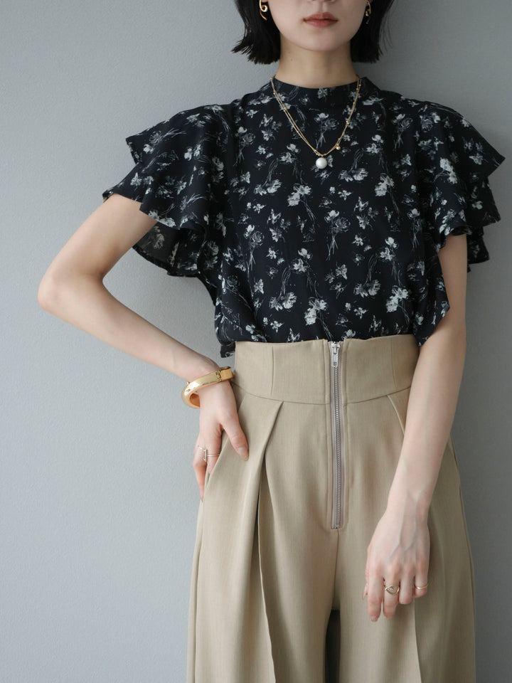 [予約]フラワーモチーフラッフルスリーブブラウス/ブラック