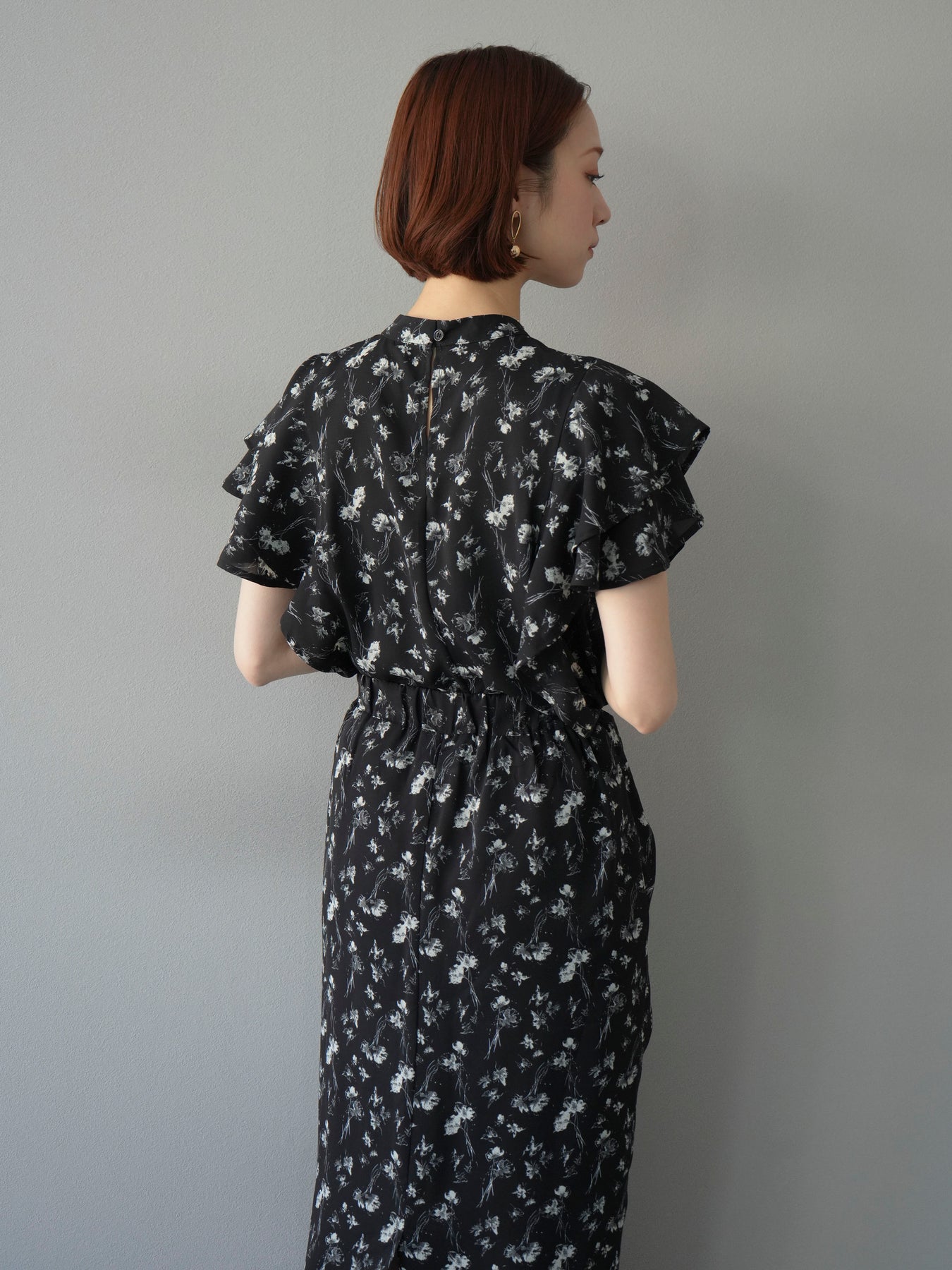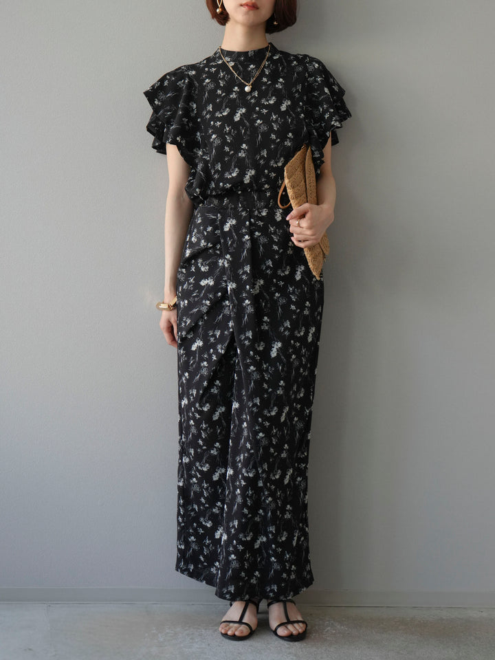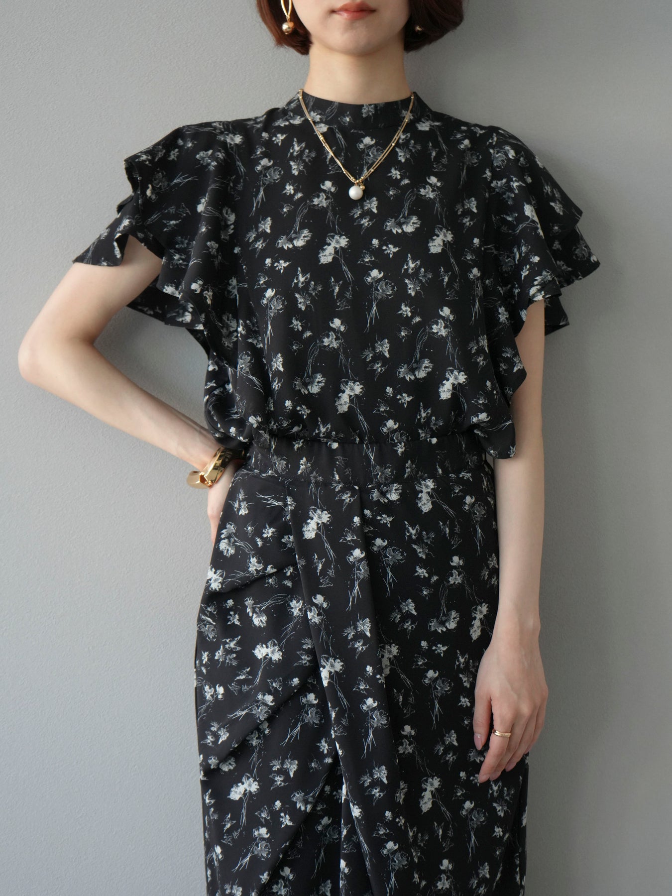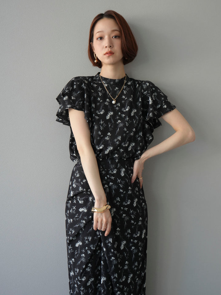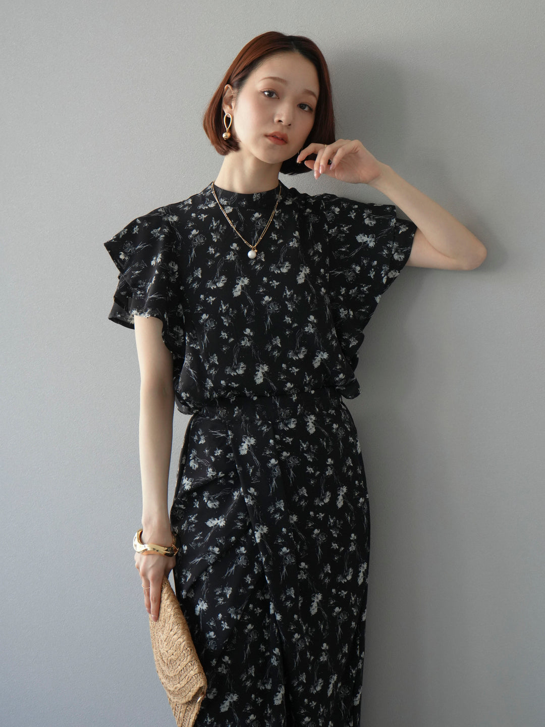 [予約]フラワーモチーフラッフルスリーブブラウス/ブラック