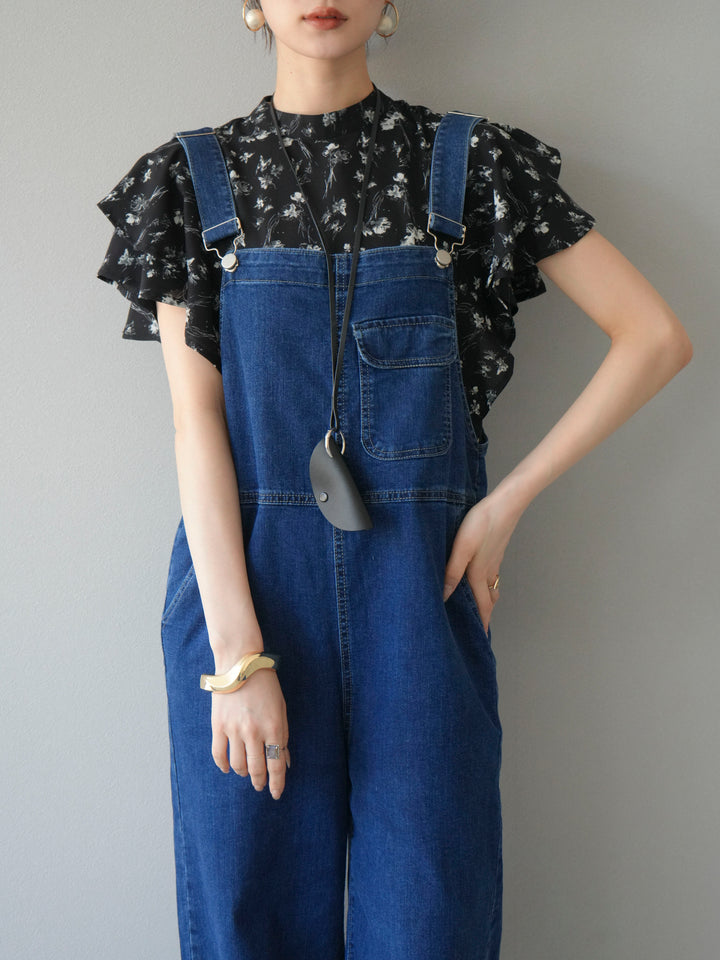 優雅なフラワーモチーフが施された、ラッフルスリーブデザインのブラウス。柔らかな生地感と、ふんわりとしたスリーブが女性らしさを引き立て、華やかな印象を与えます。シンプルなデザインの中に、フラワー柄がさりげなくアクセントとなり、上品さと愛らしさを兼ね備えています。デニムやスカート、ワイドパンツなど、様々なアイテムと合わせやすい一枚です。
