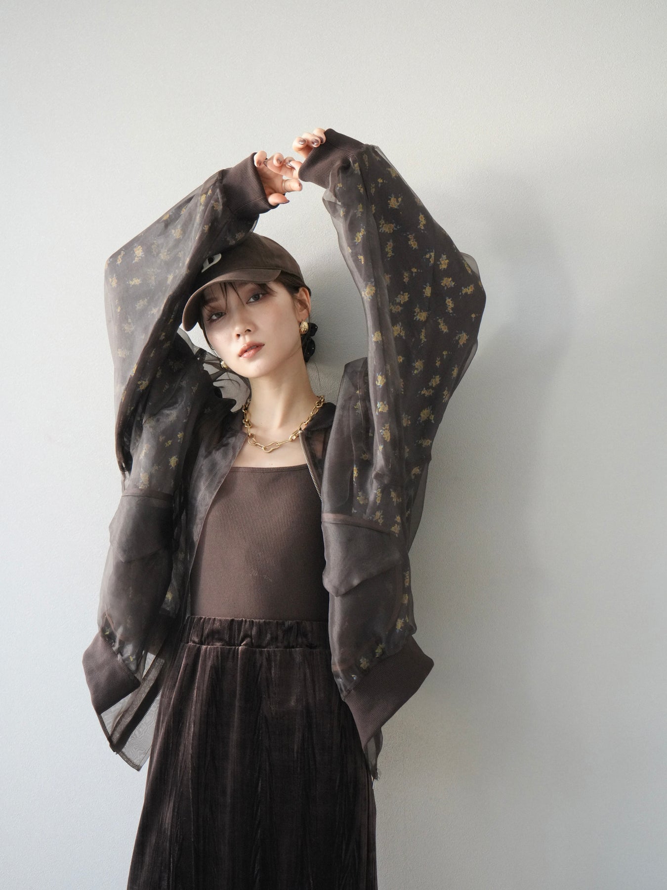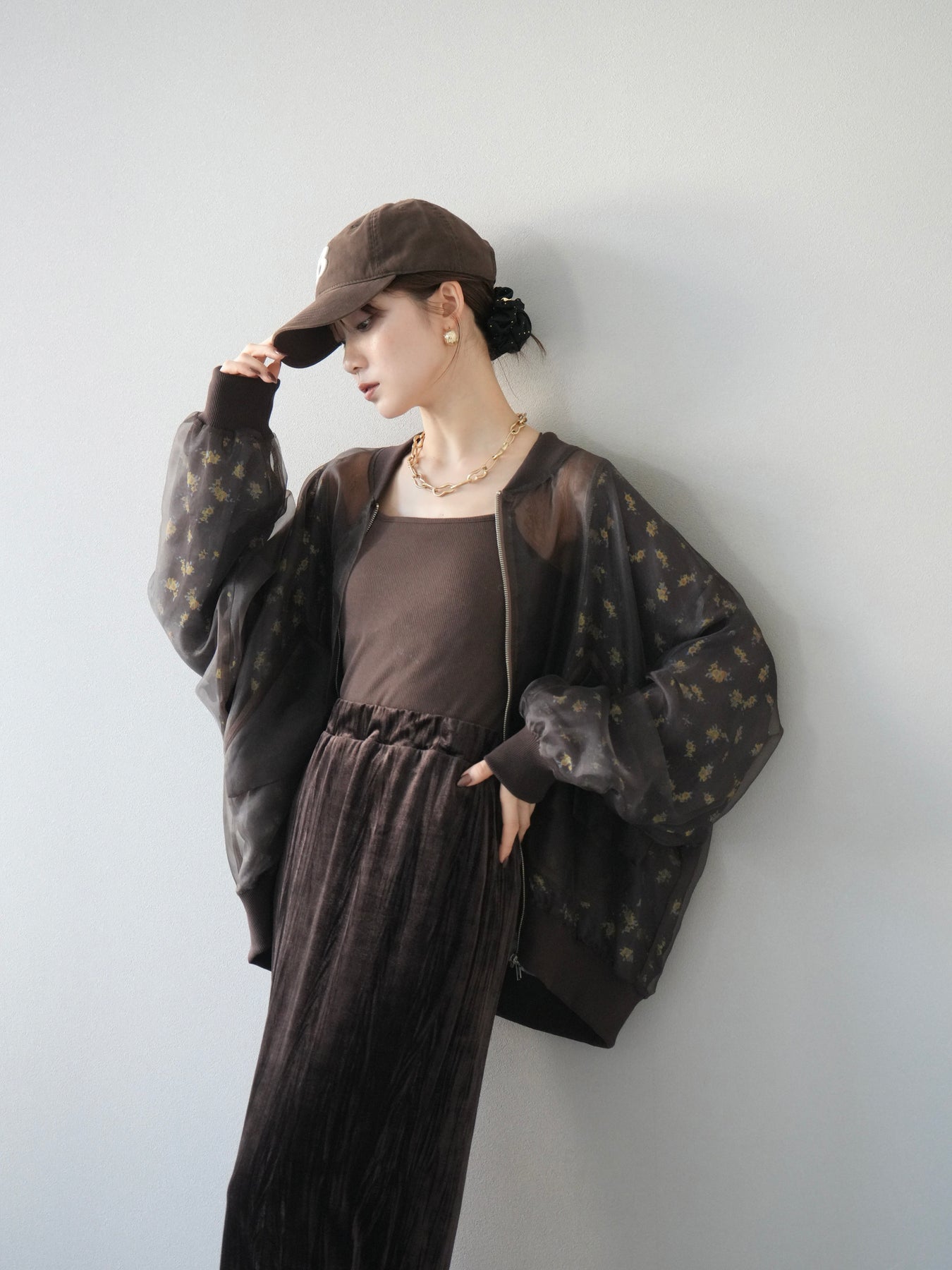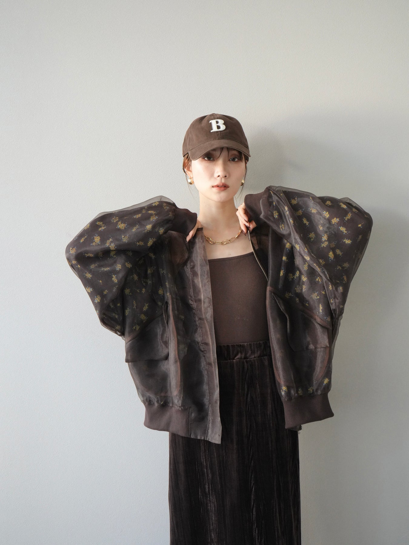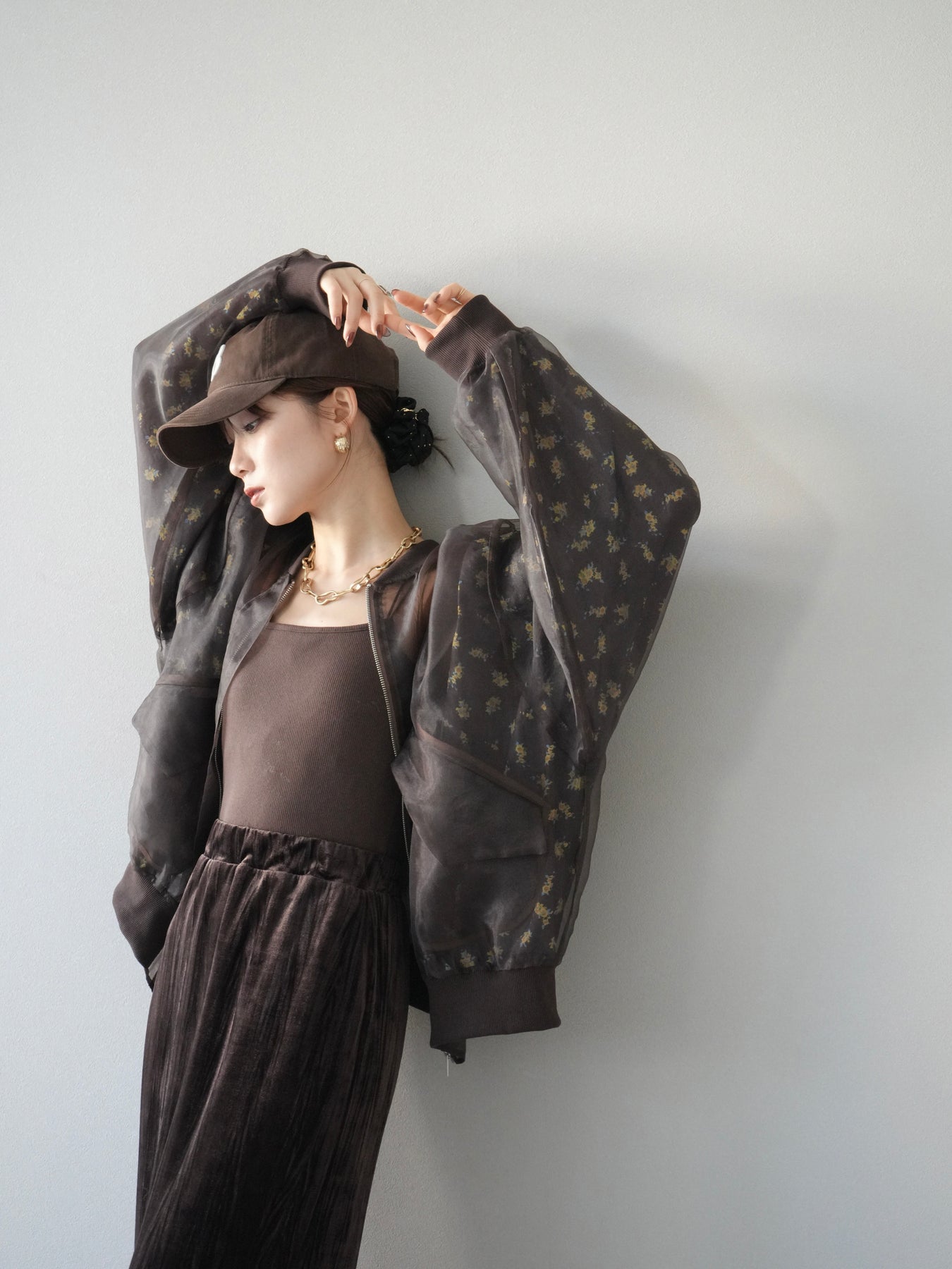 [予約]フラワーチュールドッキングブルゾン/ブラウン
