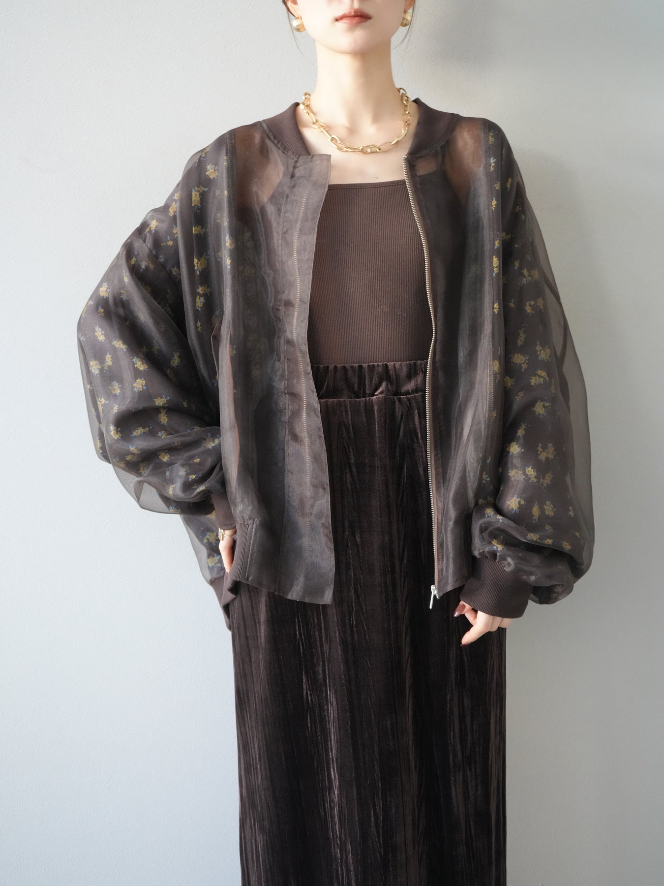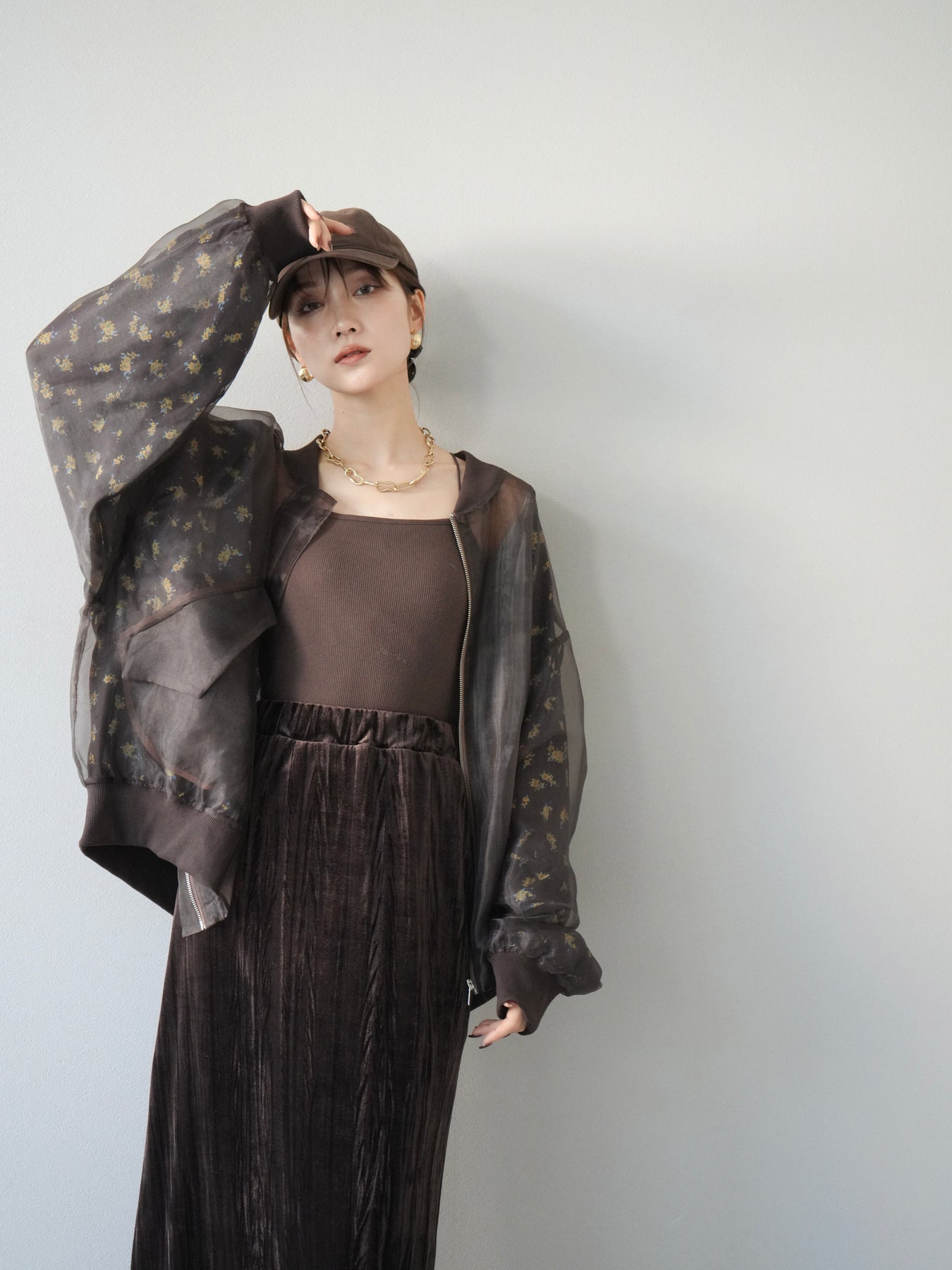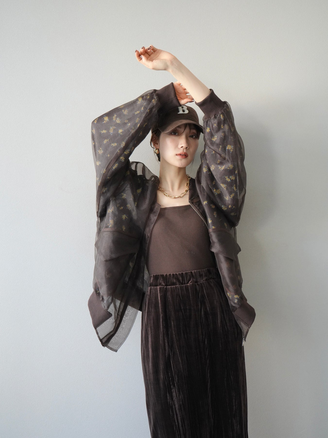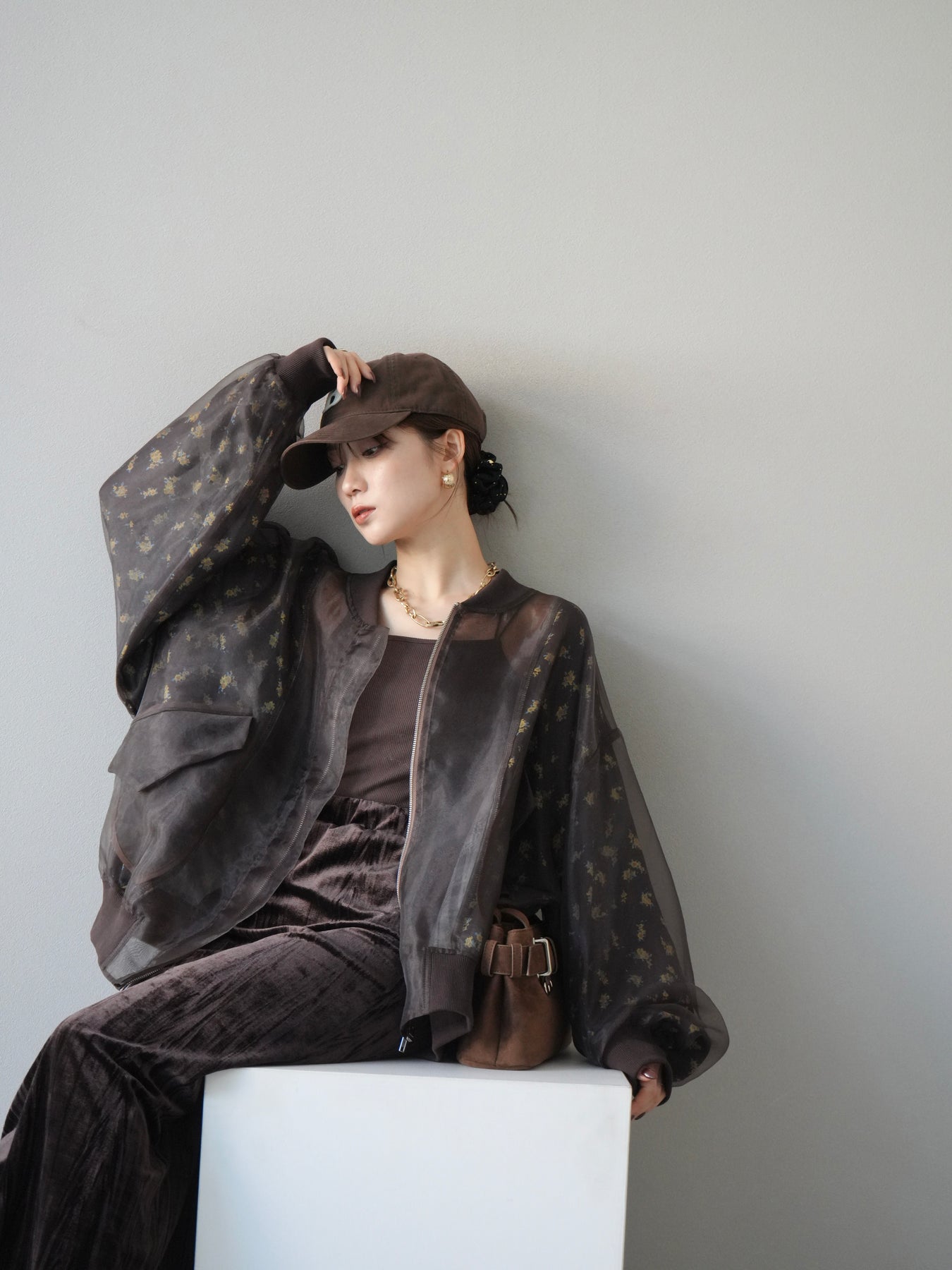 [予約]フラワーチュールドッキングブルゾン/ブラウン