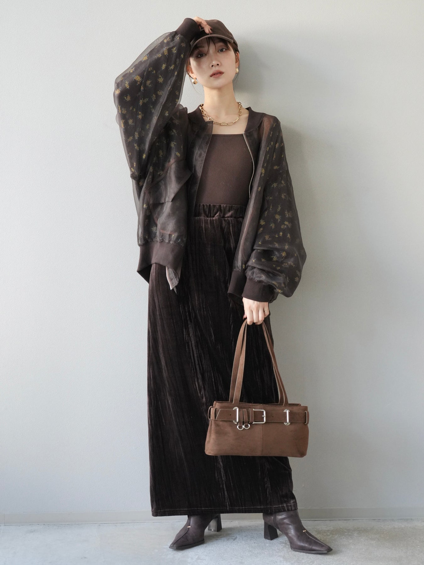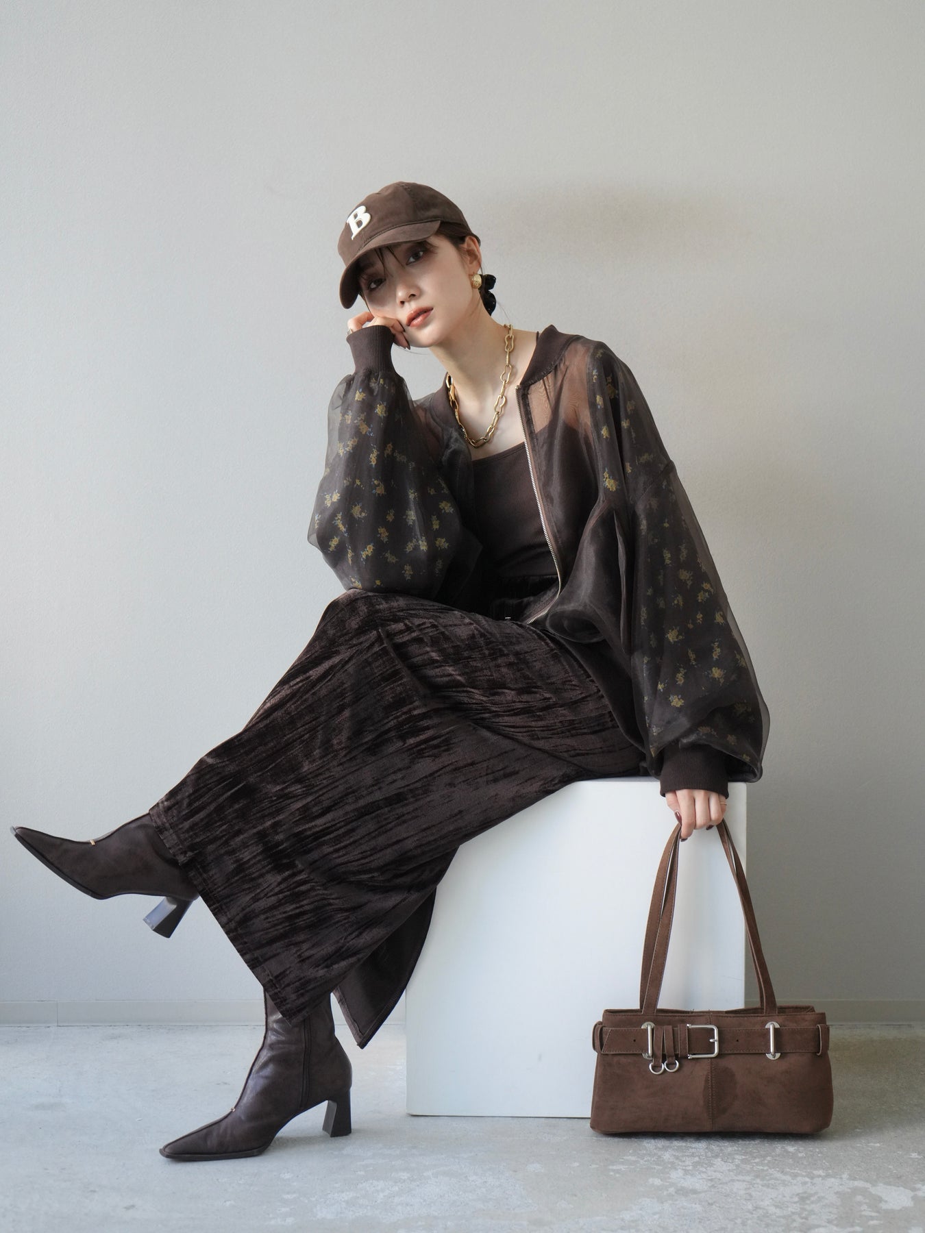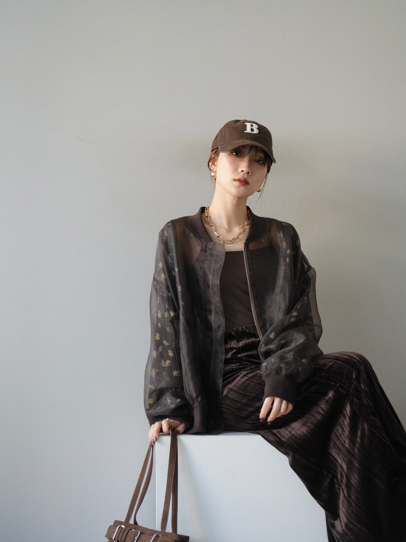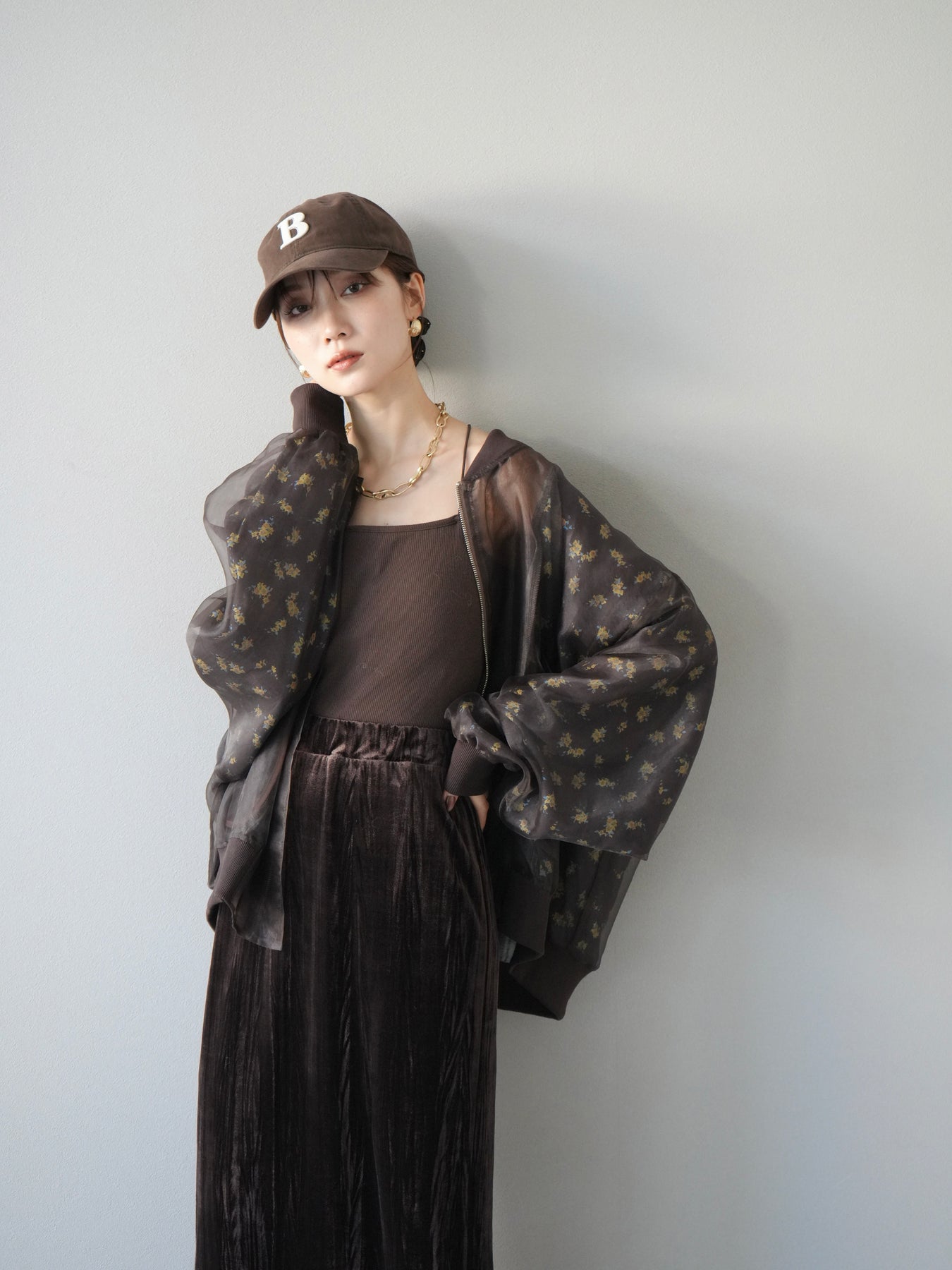 [予約]フラワーチュールドッキングブルゾン/ブラウン