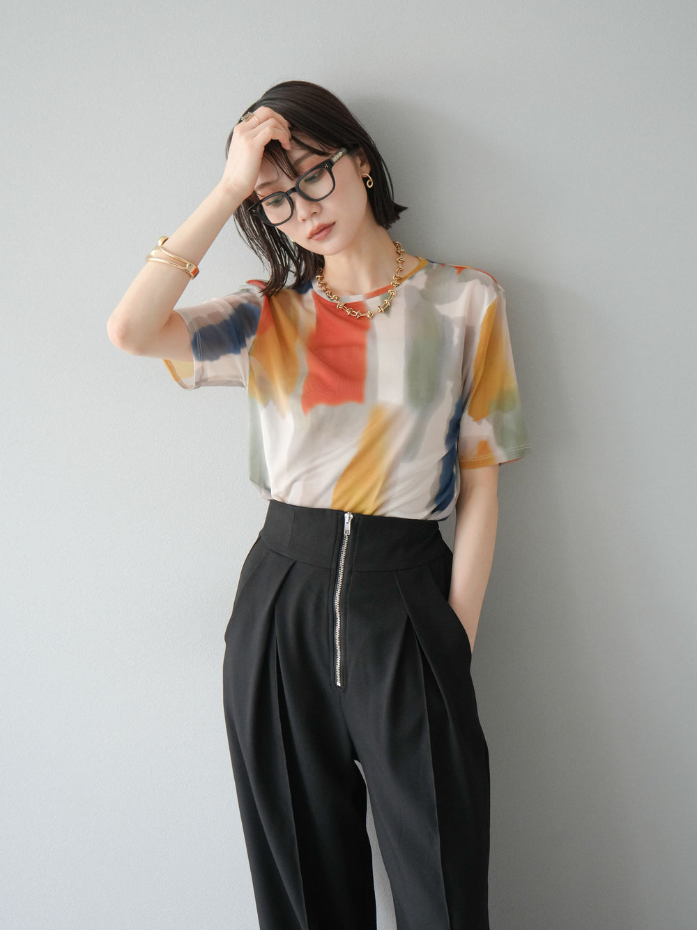 裾に向かって上品なAラインを描くロングスカート。ニュアンス柄が知的な雰囲気をもたらします。フロントサイドにダーツが入っているためお腹まわりがスッキリと見え、やや幅広のウエスト切り替えがトップスインを上品に演出。バックスリットによって足捌きしやすく、センシュアルな雰囲気に。何気ないベーシックなトップスもオシャレに見せてくれる頼れるアイテムです。