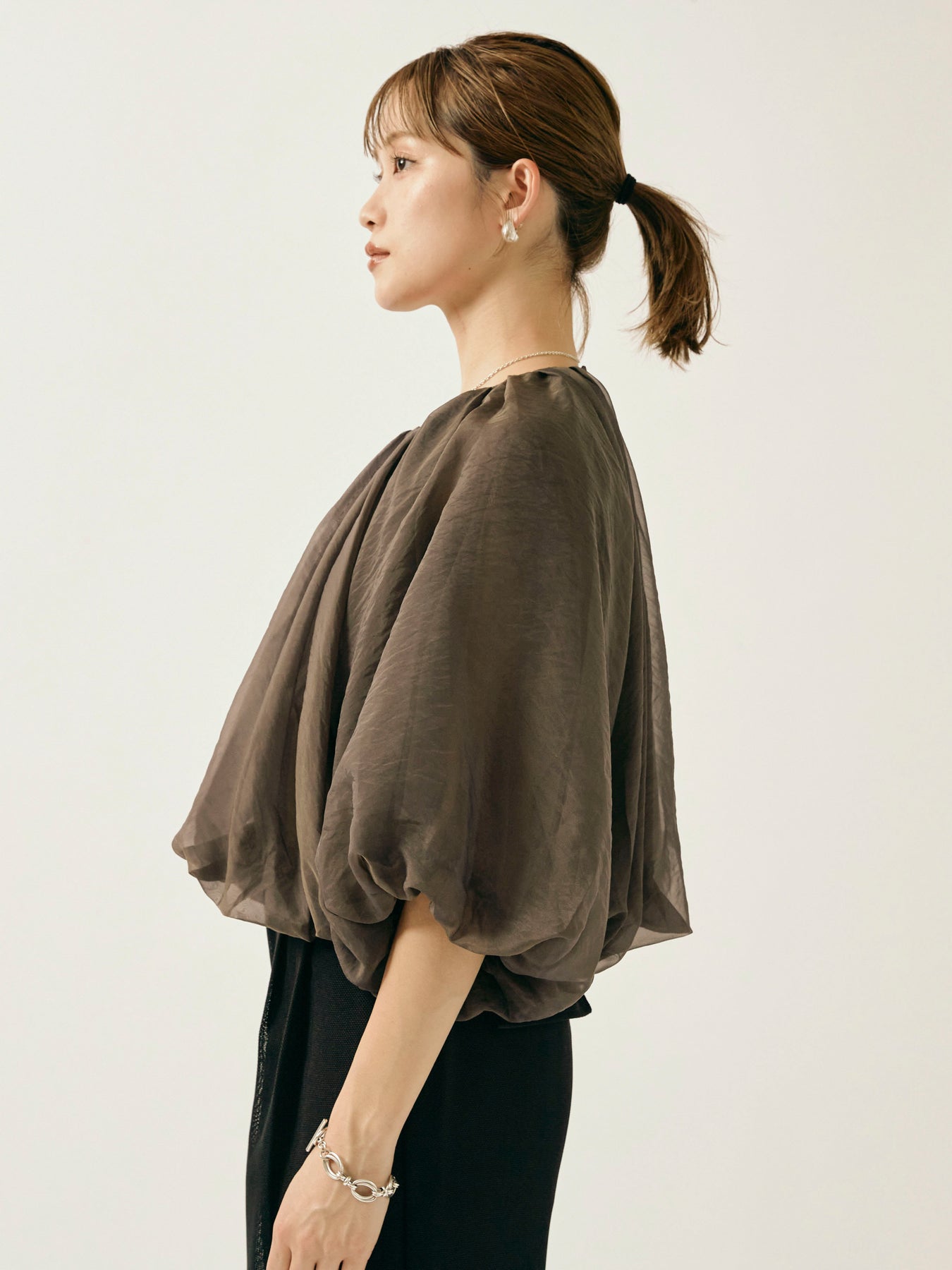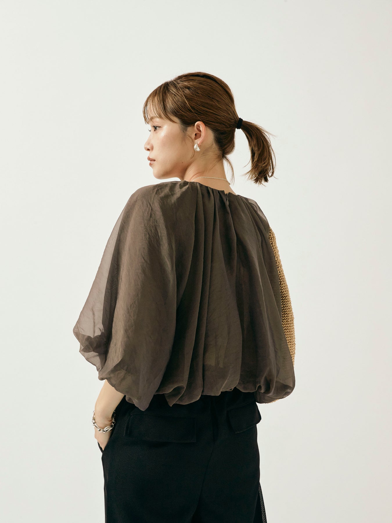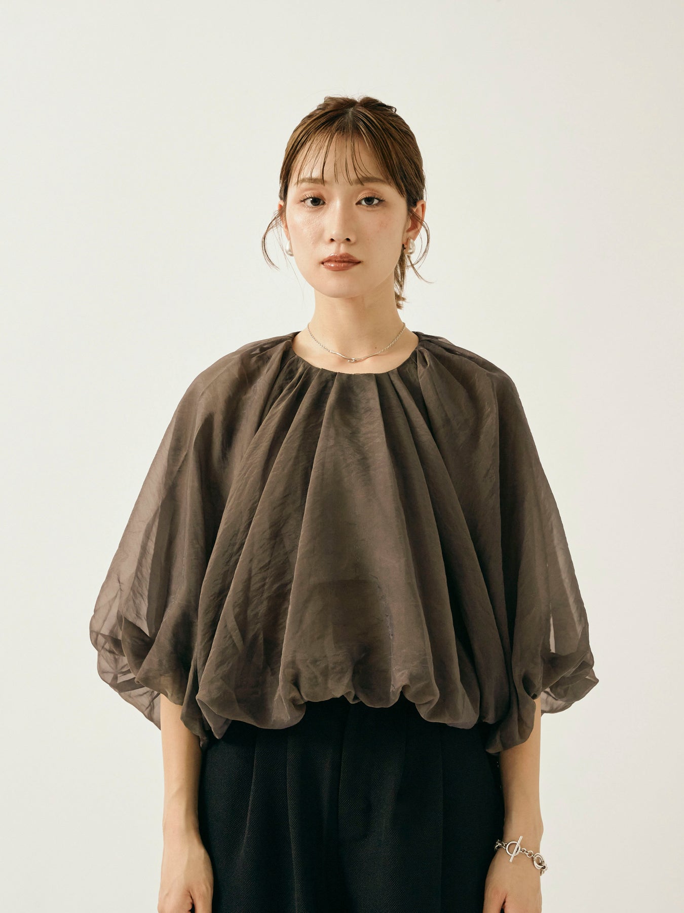 [予約]オーガンジーバルーンショートブラウス/チャコール