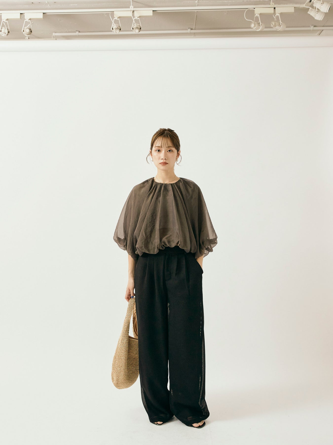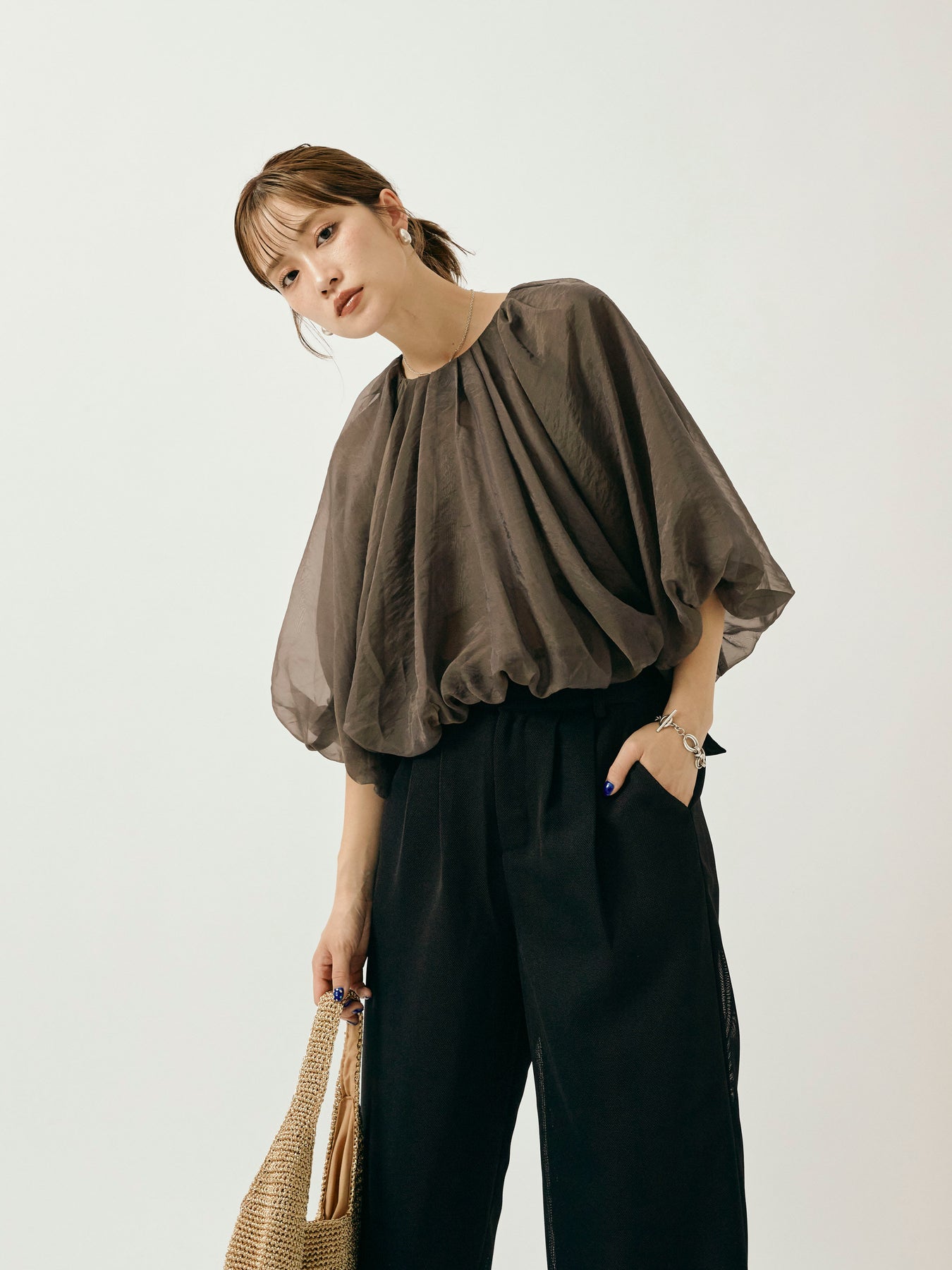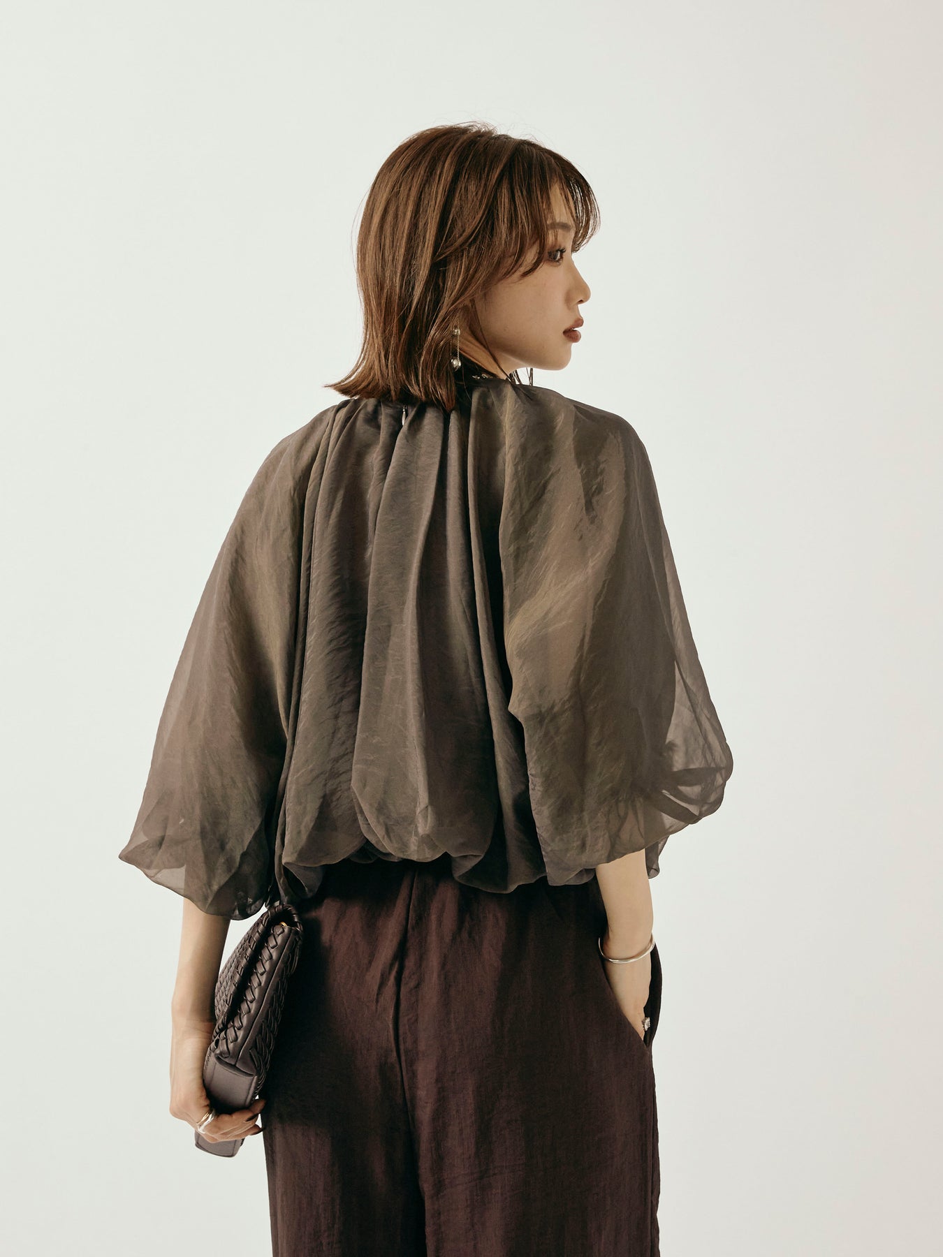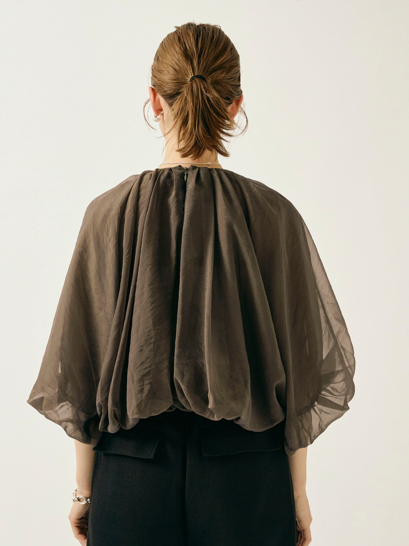 [予約]オーガンジーバルーンショートブラウス/チャコール