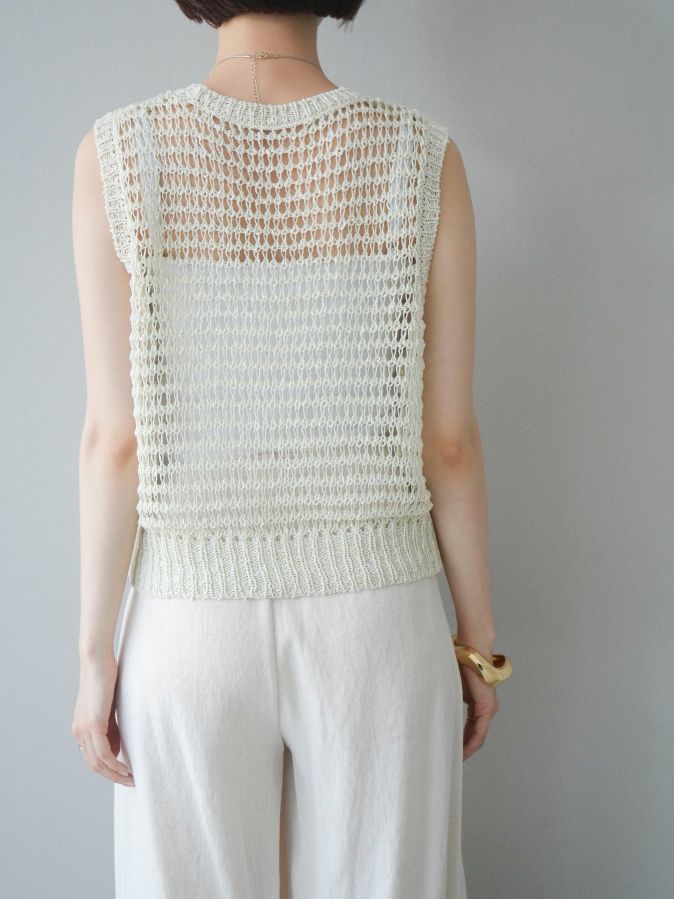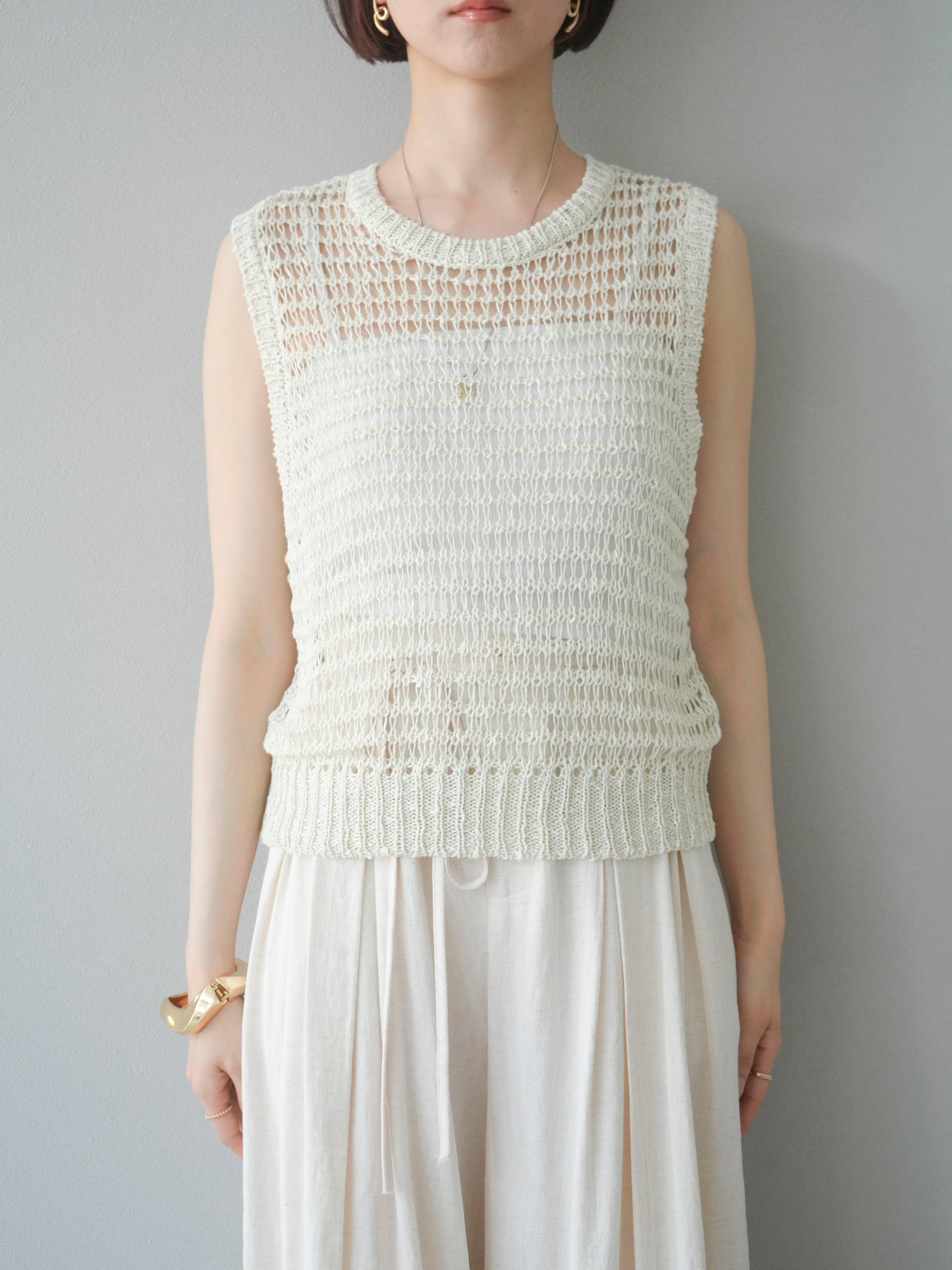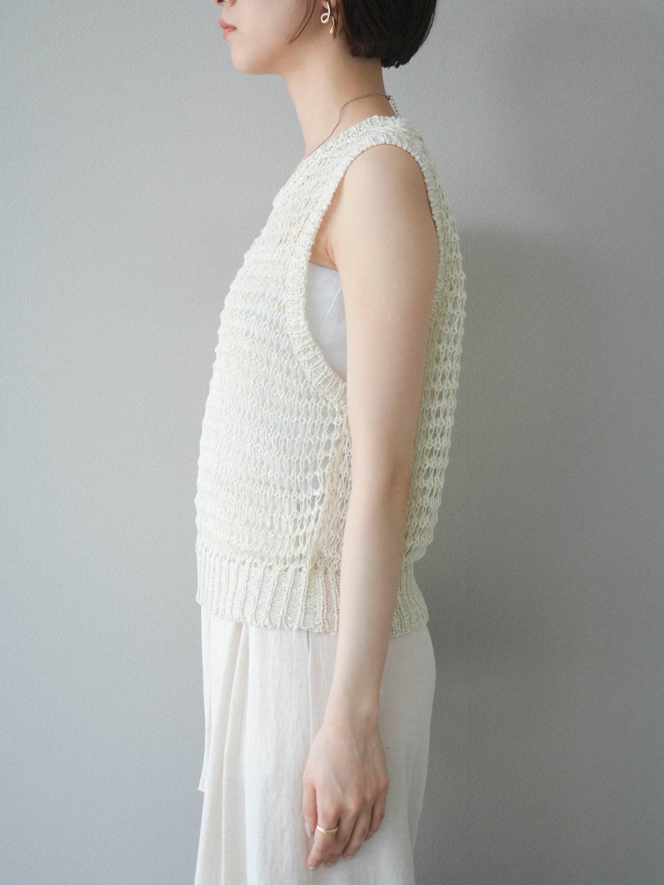 [予約]ミックスヤーン透かし編みニットタンクトップ/アイボリー
