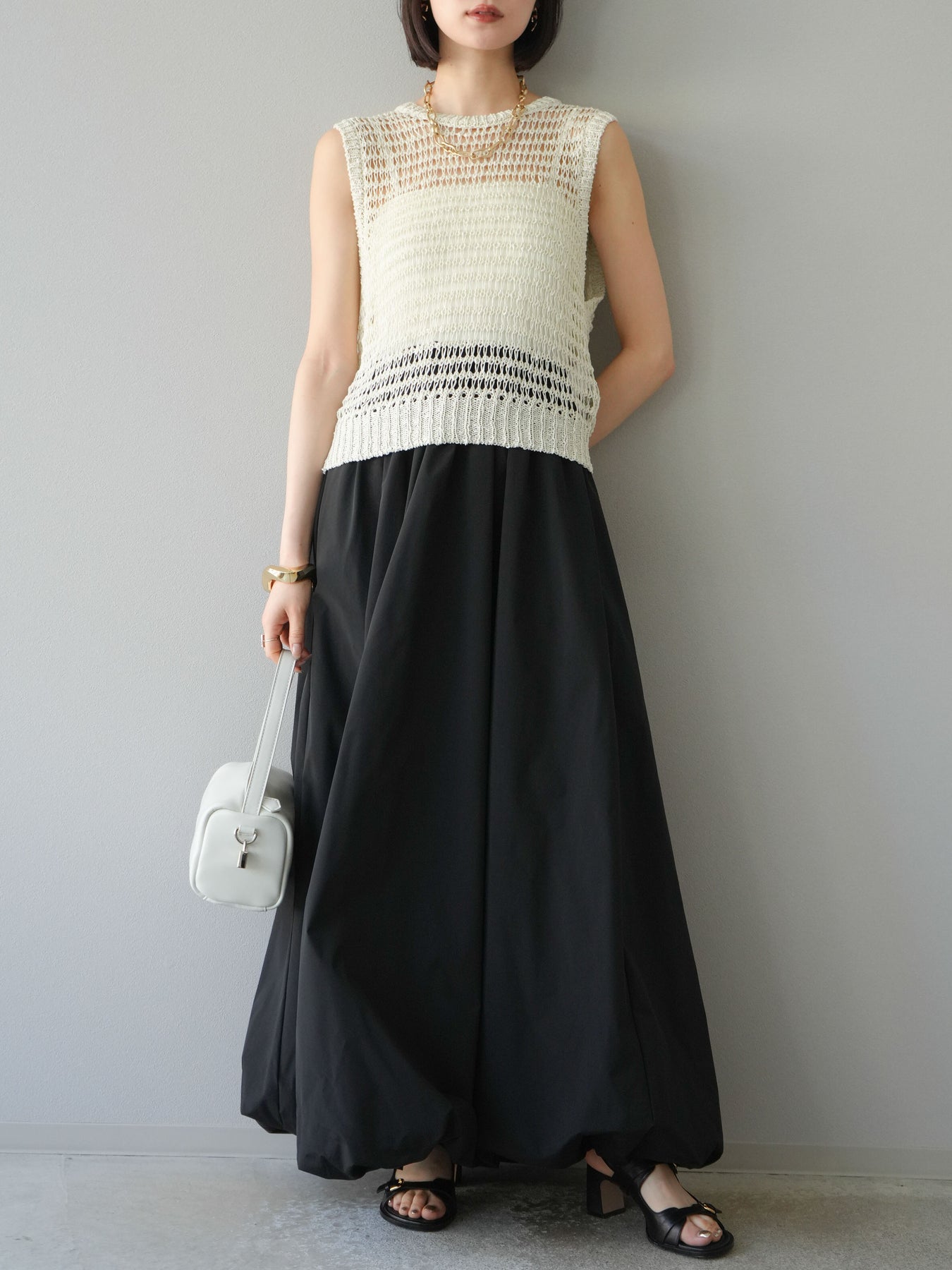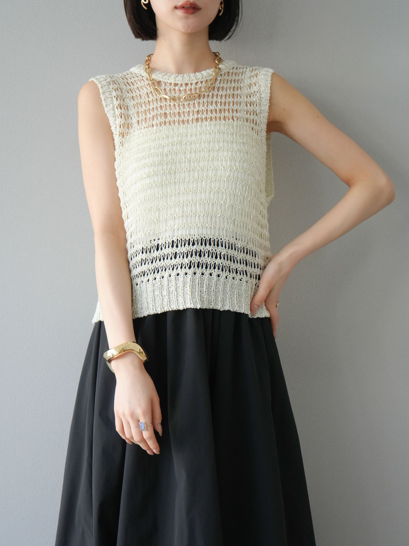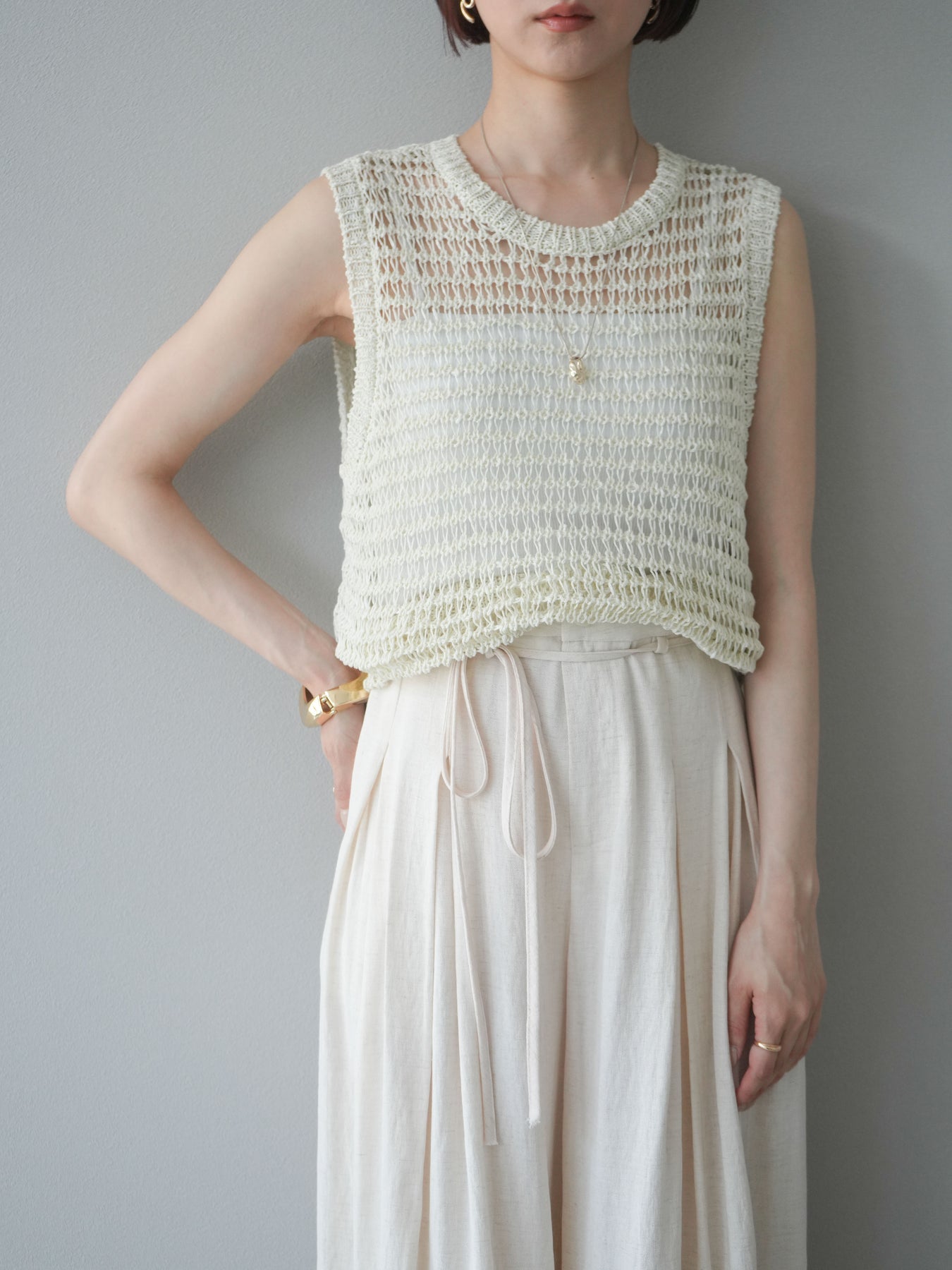 [予約]ミックスヤーン透かし編みニットタンクトップ/アイボリー