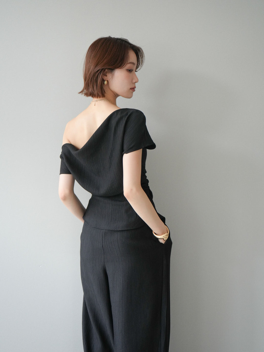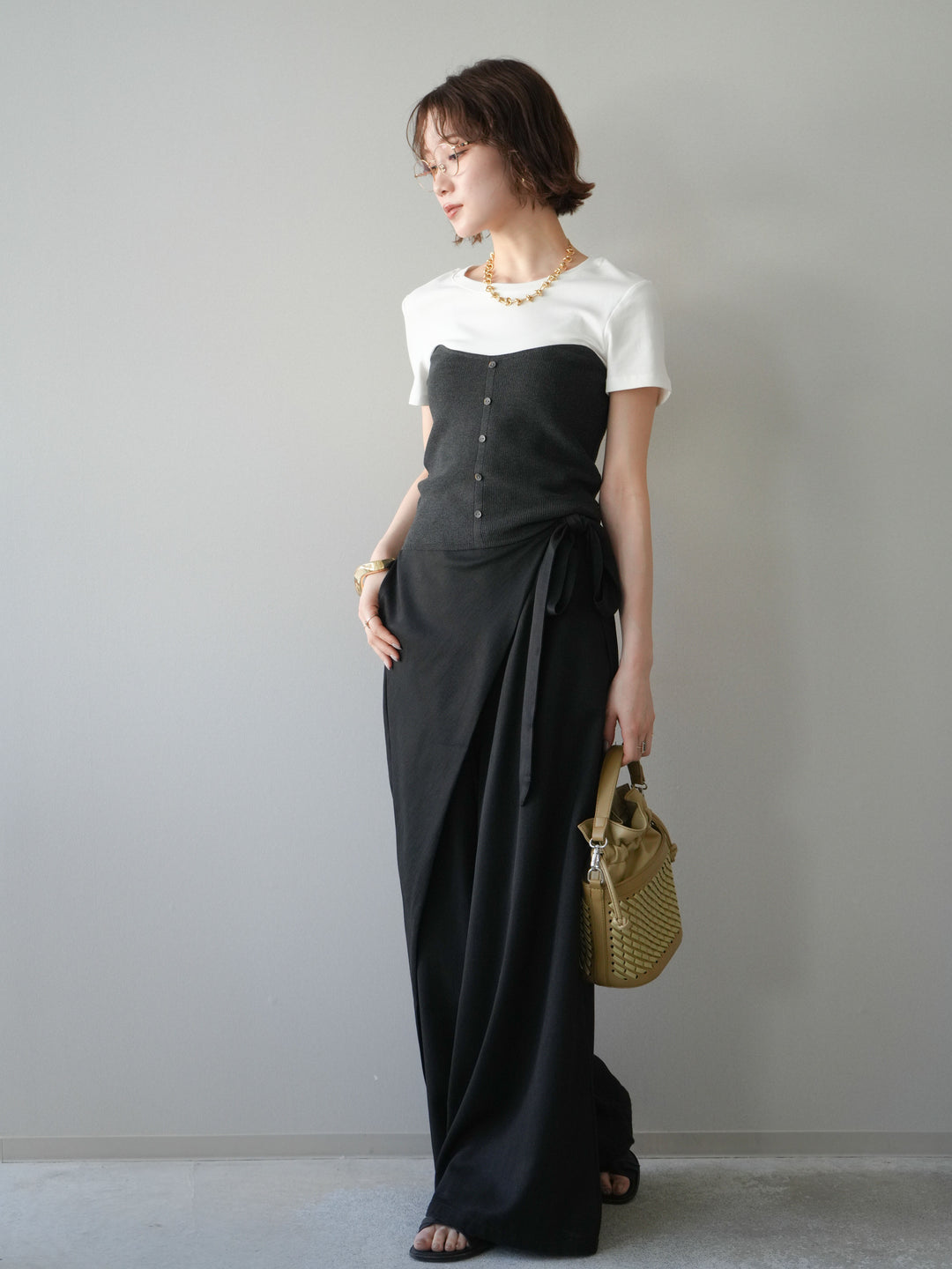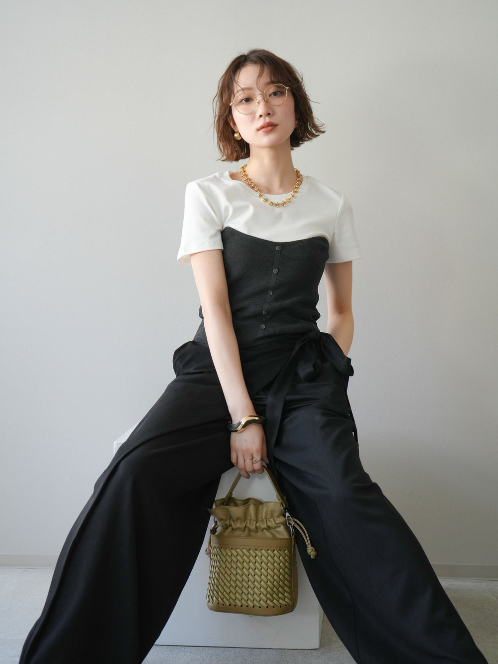 [予約]ブロックレースワイドパンツ/ブラック